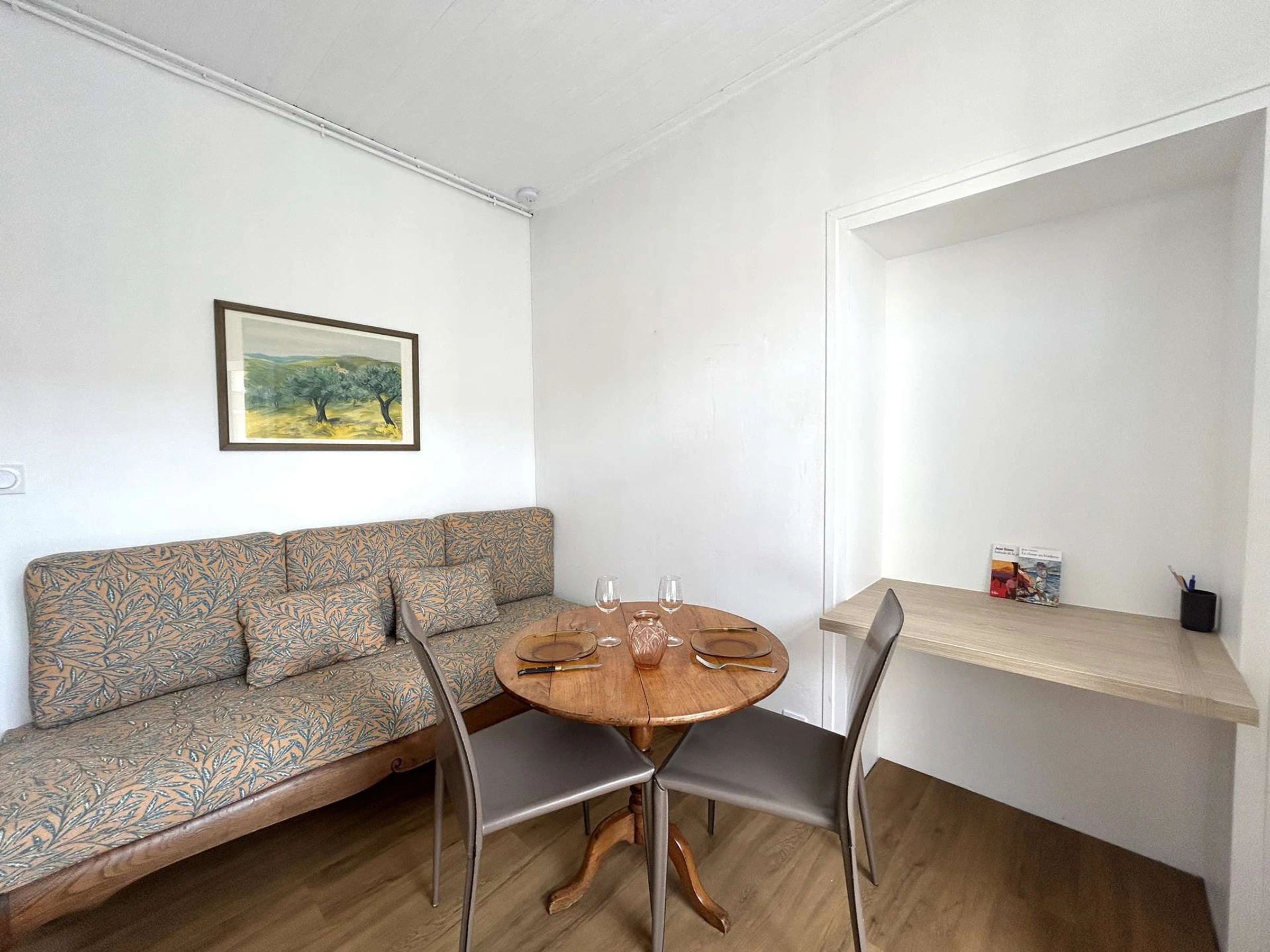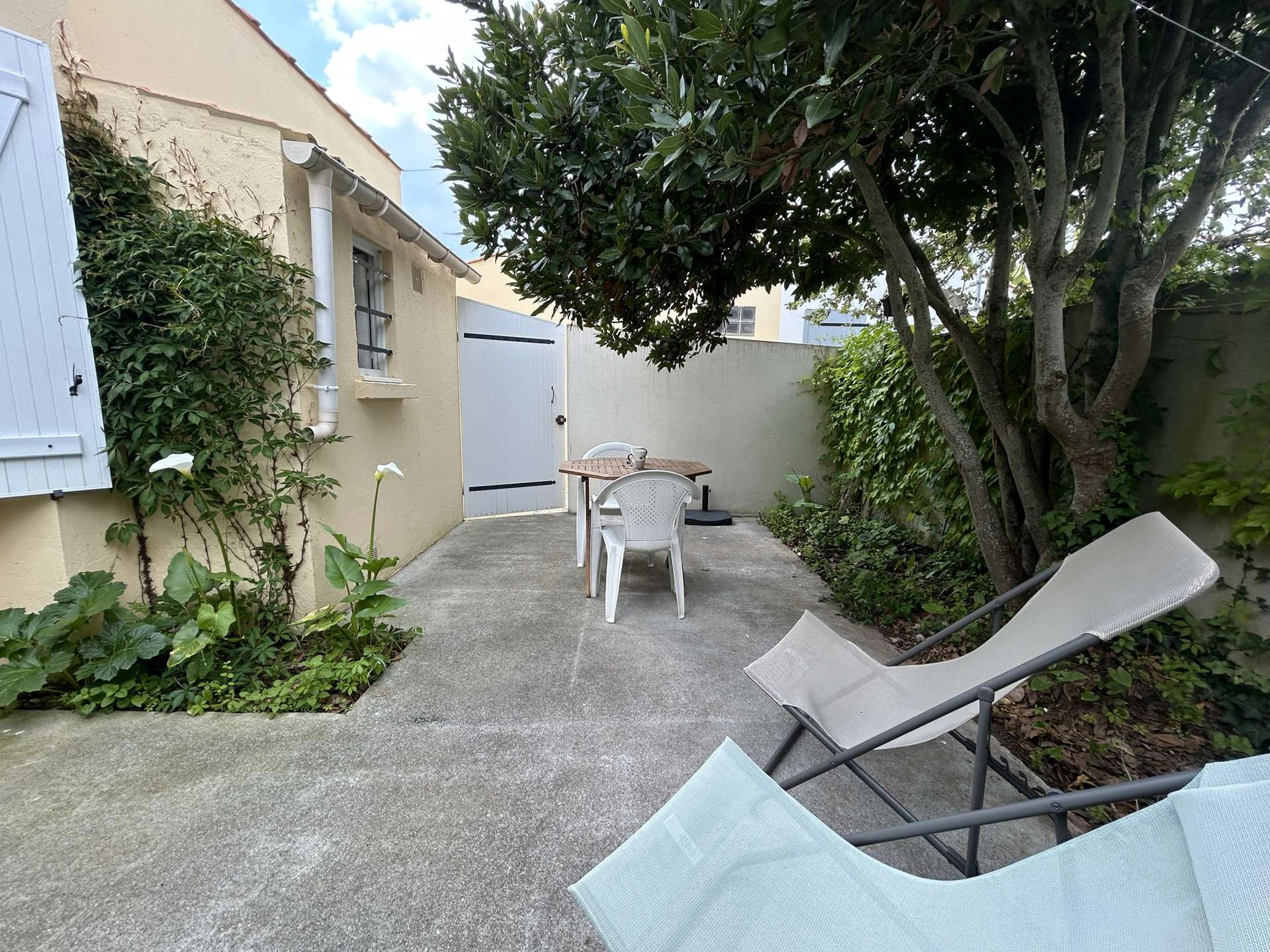 Cette maison de vacances bénéficie d'une localisation idéale à proximité des commerces et du centre de Saint-Gilles-Croix-de-Vie. Située dans une impasse en mitoyenneté, elle se compose d'une cuisine équipée, comprenant un micro-ondes et un réfrigérateur top, ainsi que d'un séjour avec un coin bureau. La chambre dispose d'un lit double et d'une télévision, une salle d'eau avec WC. Vous apprécierez l'environnement calme tout en étant à proximité du centre-ville, ainsi que la présence d'un salon de jardin pour profiter de la cour privative accessible en sortant de la maison. Le ménage de fin de séjour est inclus.