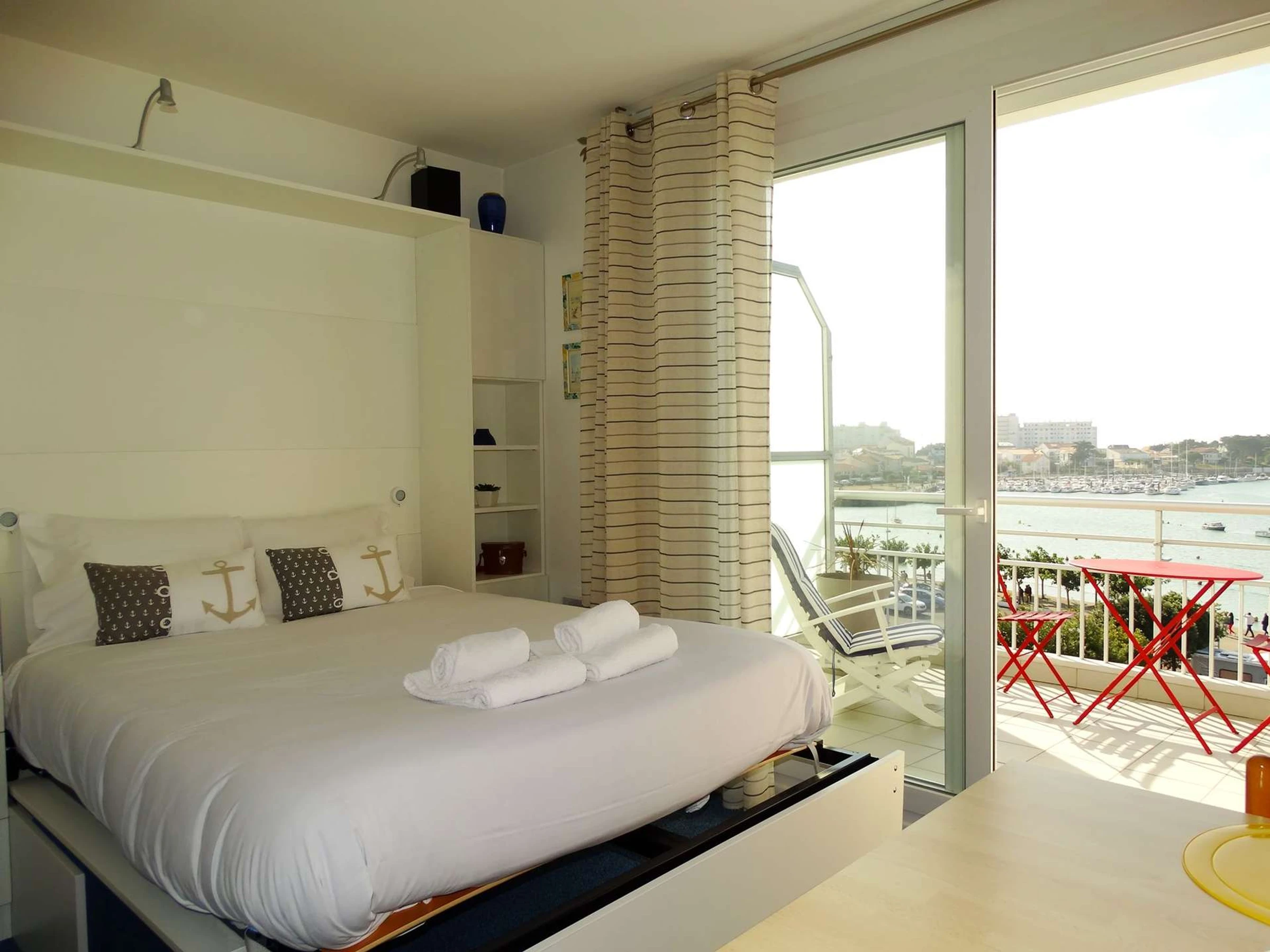 Au dernier étage d’une résidence récente, idéalement située face au port de plaisance, sur les quais de Saint-Gilles, ce studio est parfait pour une escapade seule ou à 2. La pièce à vivre est agréable et lumineuse, avec son lit double escamotable. Le coin cuisine est équipé d'un lave vaisselle et propose un petit espace pour déjeuner. Le tout s'ouvrant sur un balcon avec une vue dégagée sur le port de plaisance et la Vie. Vous apprécierez de tout faire à pied : marchés et commerces à 150 m, et la Grande Plage à moins d’1 km. (Réf Girouette)