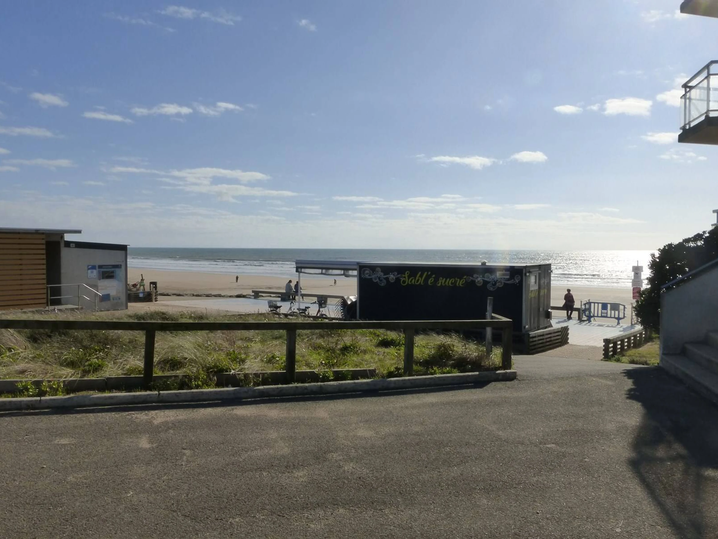 Sur le remblai et à proximité de commerces saisonniers, cet appartement de vacances en bord de mer, au premier étage avec ascenseur se compose d'un coin-cuisine équipé avec micro-ondes, plaques de cuisson et four élEctrique, lave-vaisselle, réfrigérateur-congélateur, un séjour avec un canapé convertible (neuf) pour deux personnes et une télévision, une chambre avec un lit double (literie neuve), une salle d'eau avec lave-linge, un wc.