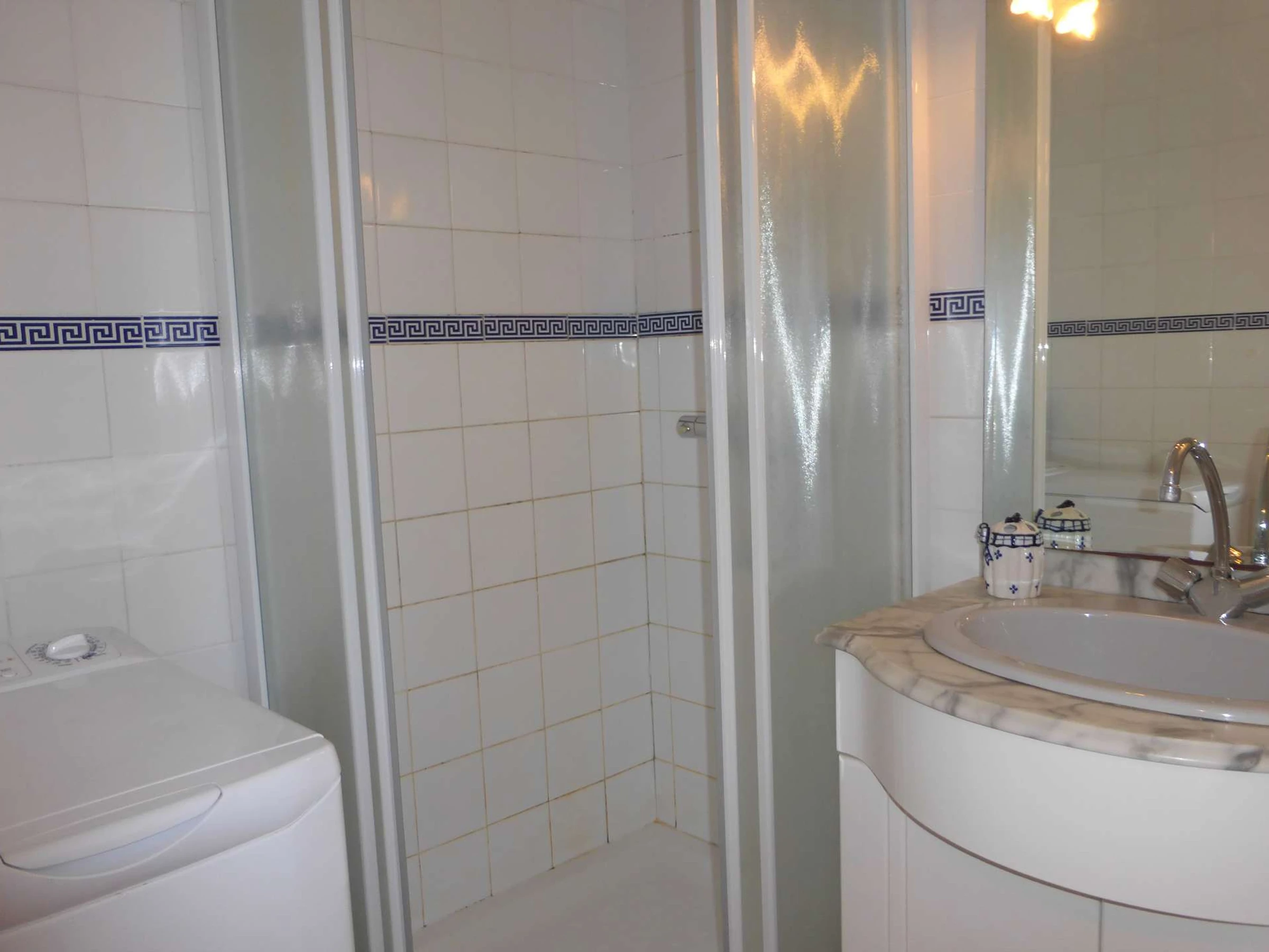 This holiday rental, comprised of terraced houses with direct beach access, features a fully equipped kitchenette (microwave, dishwasher), a living room with a sofa bed for two and a television, and a toilet on the ground floor. Upstairs, there are two bedrooms with one double bed and two single beds, and a shower room with a washing machine.