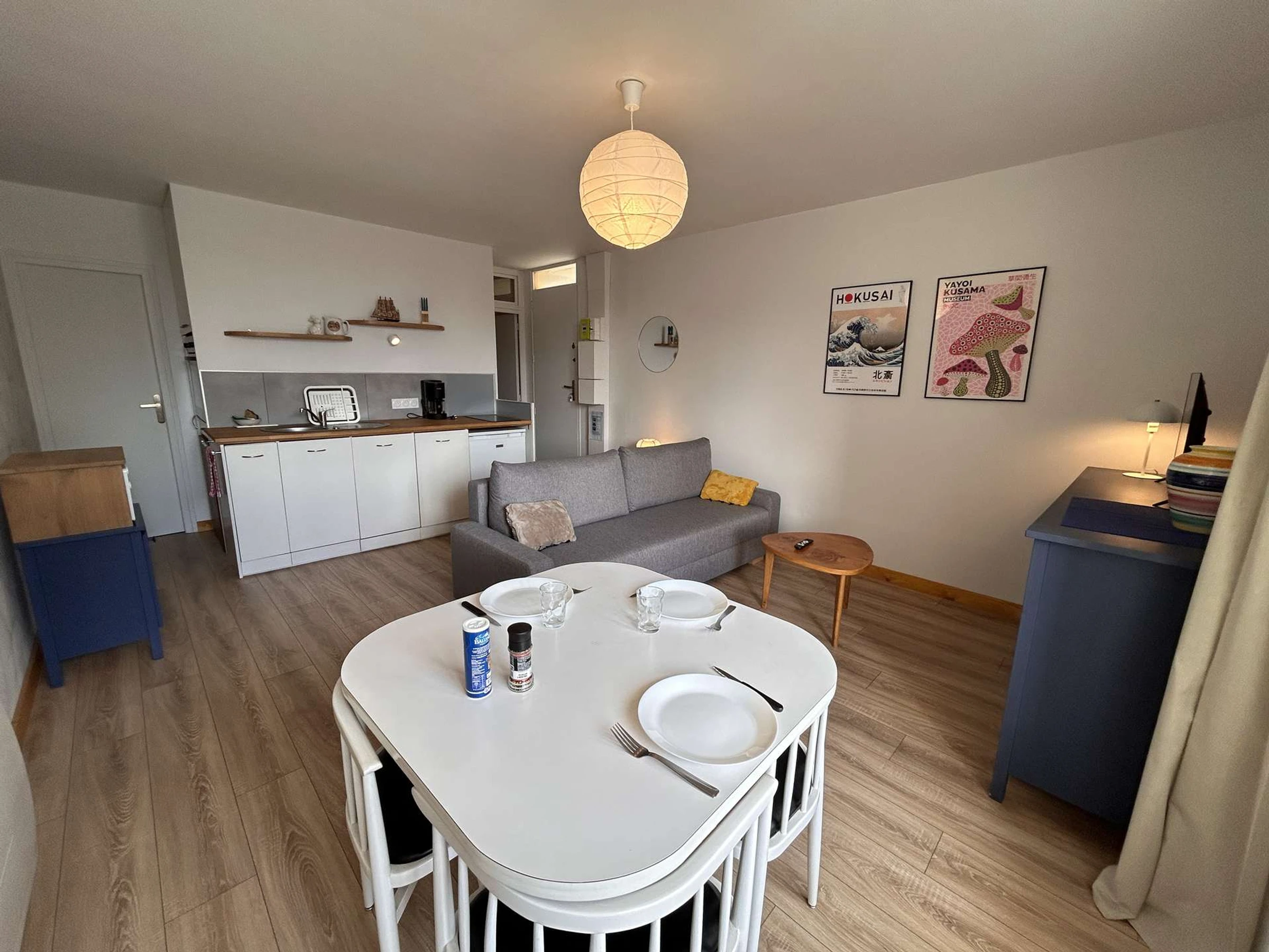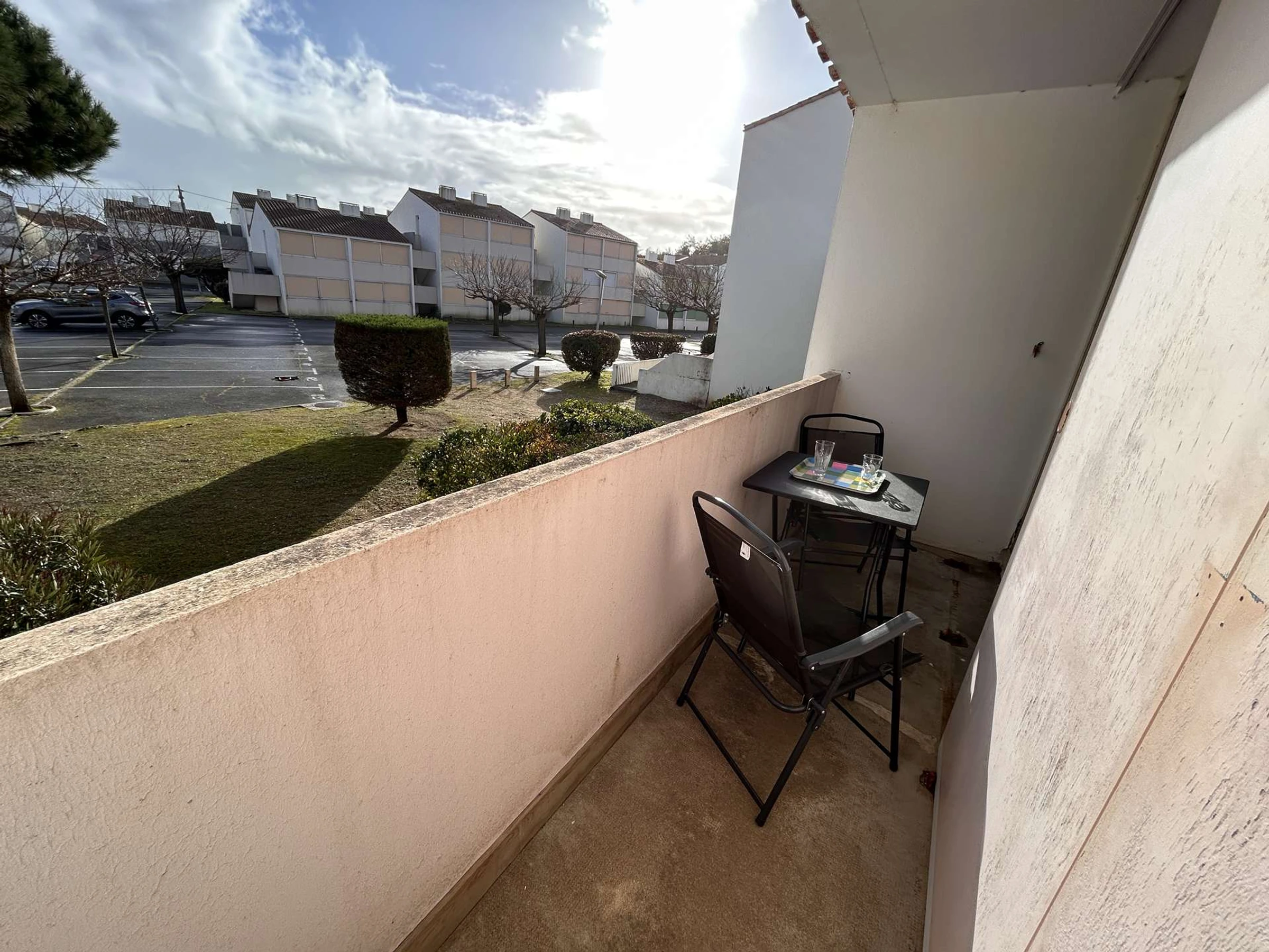 This pleasant holiday apartment, located on the first floor and featuring a balcony, includes a bright living room with a double sofa bed and television, a fully equipped kitchenette (induction hob, microwave, oven, refrigerator), a sleeping alcove with bunk beds (80 cm), as well as a shower room and a separate toilet.