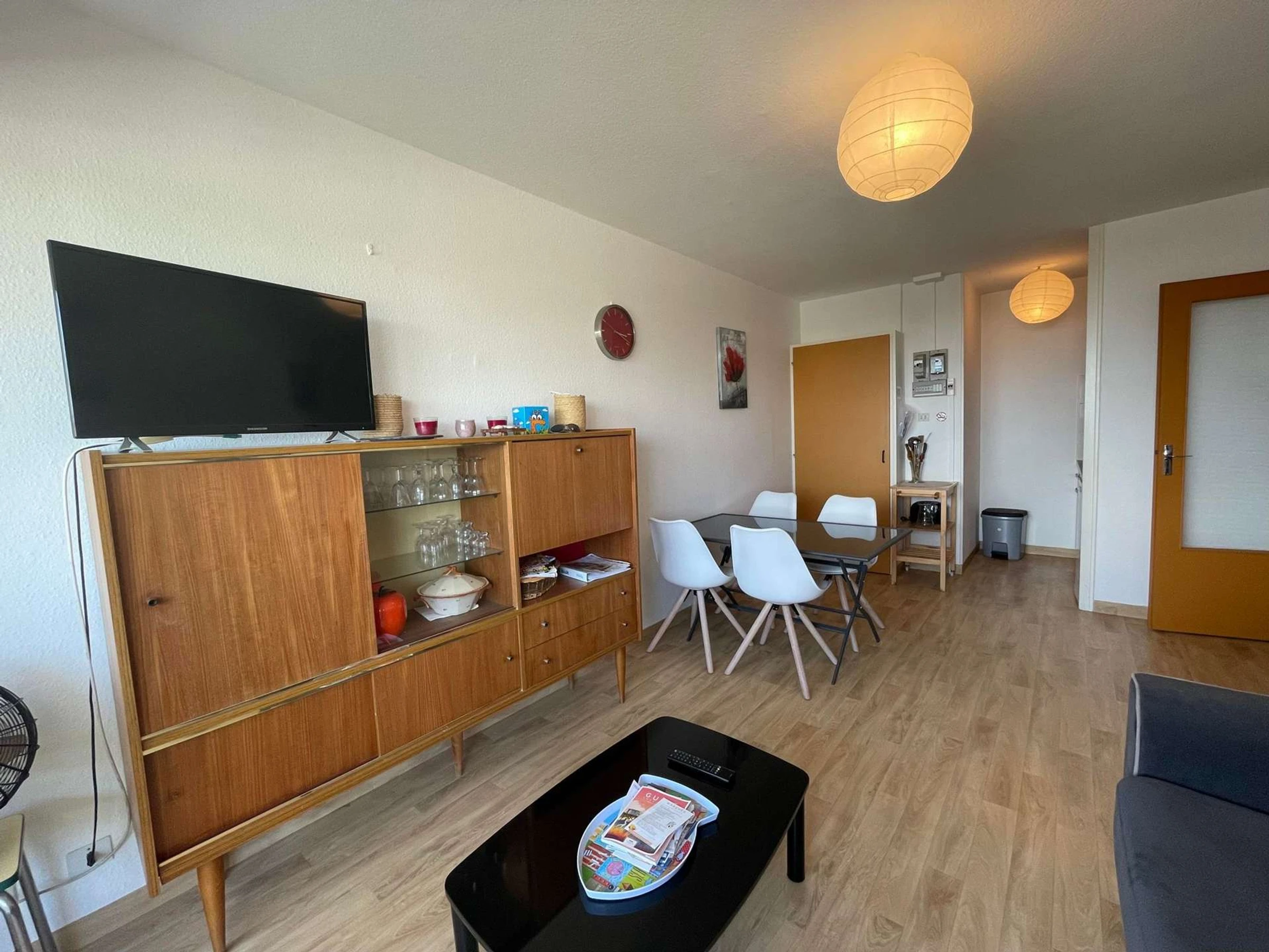 This very spacious rental located by the sea, is located on the 2nd floor and consists of a living room with loggia balcony with side view of the sea, a sofa bed for two people, a television. An equipped kitchenette (electric oven and microwave), a bedroom with a double bed, a bathroom with shower and washing machine, separate wc.