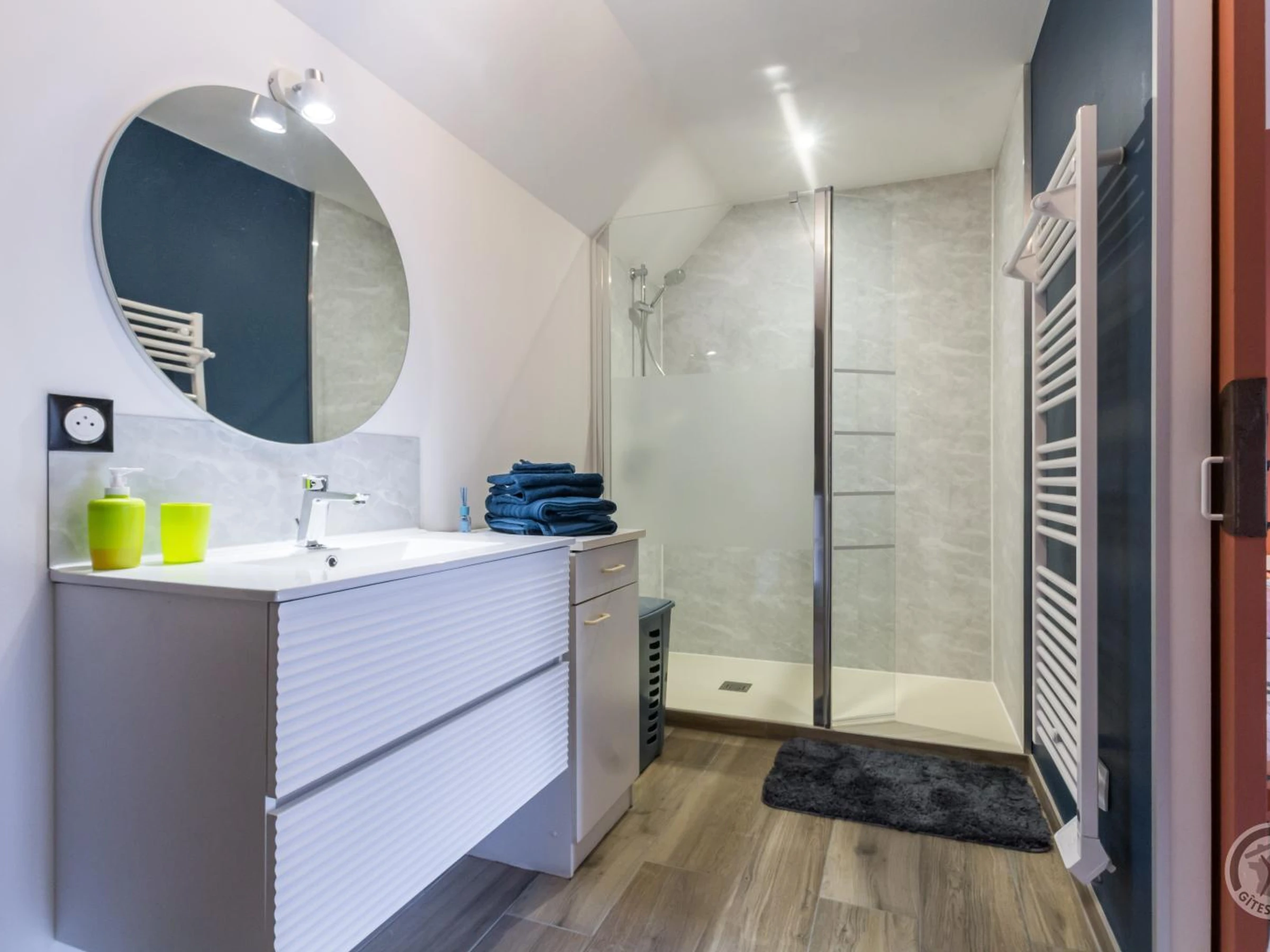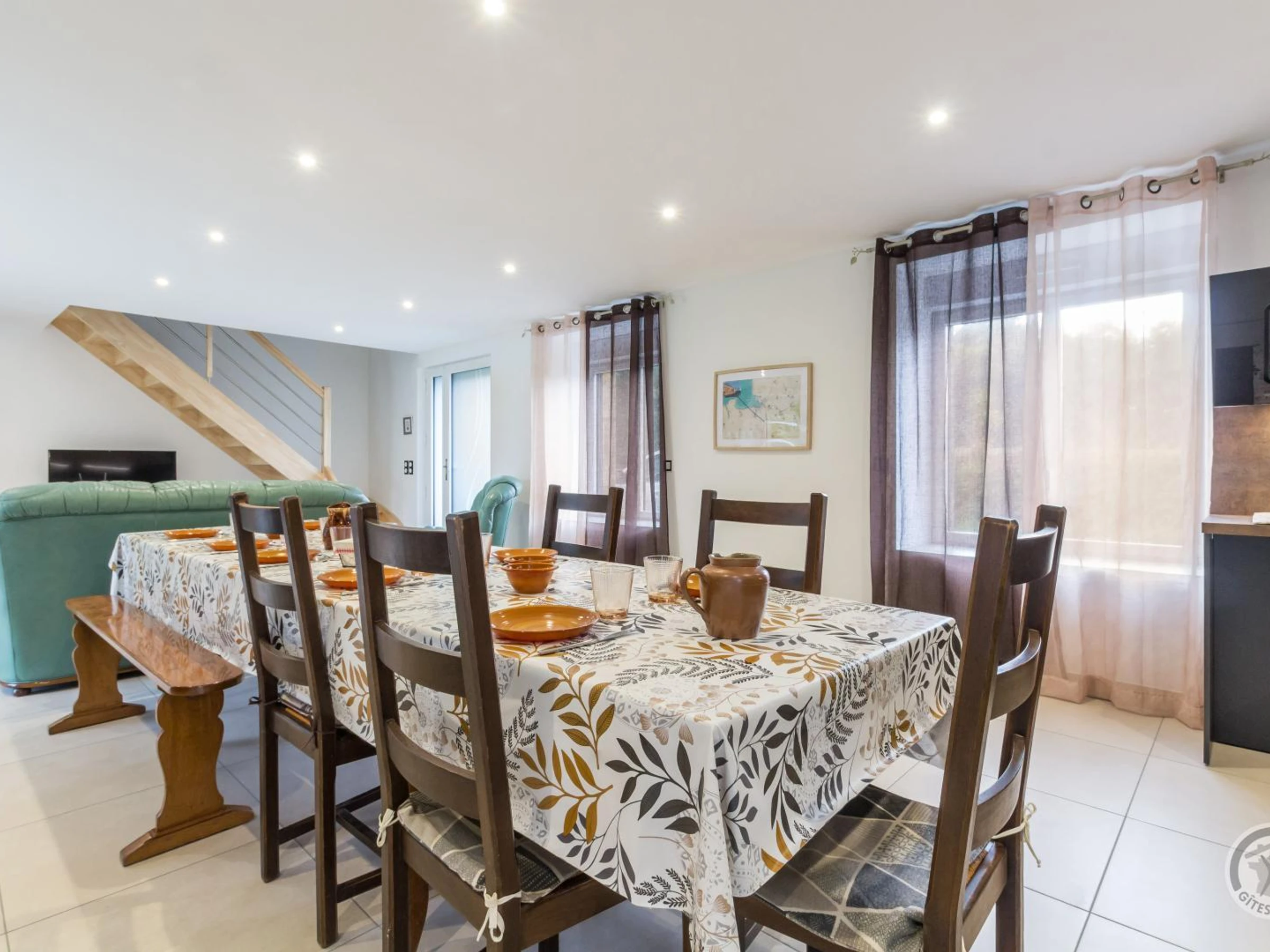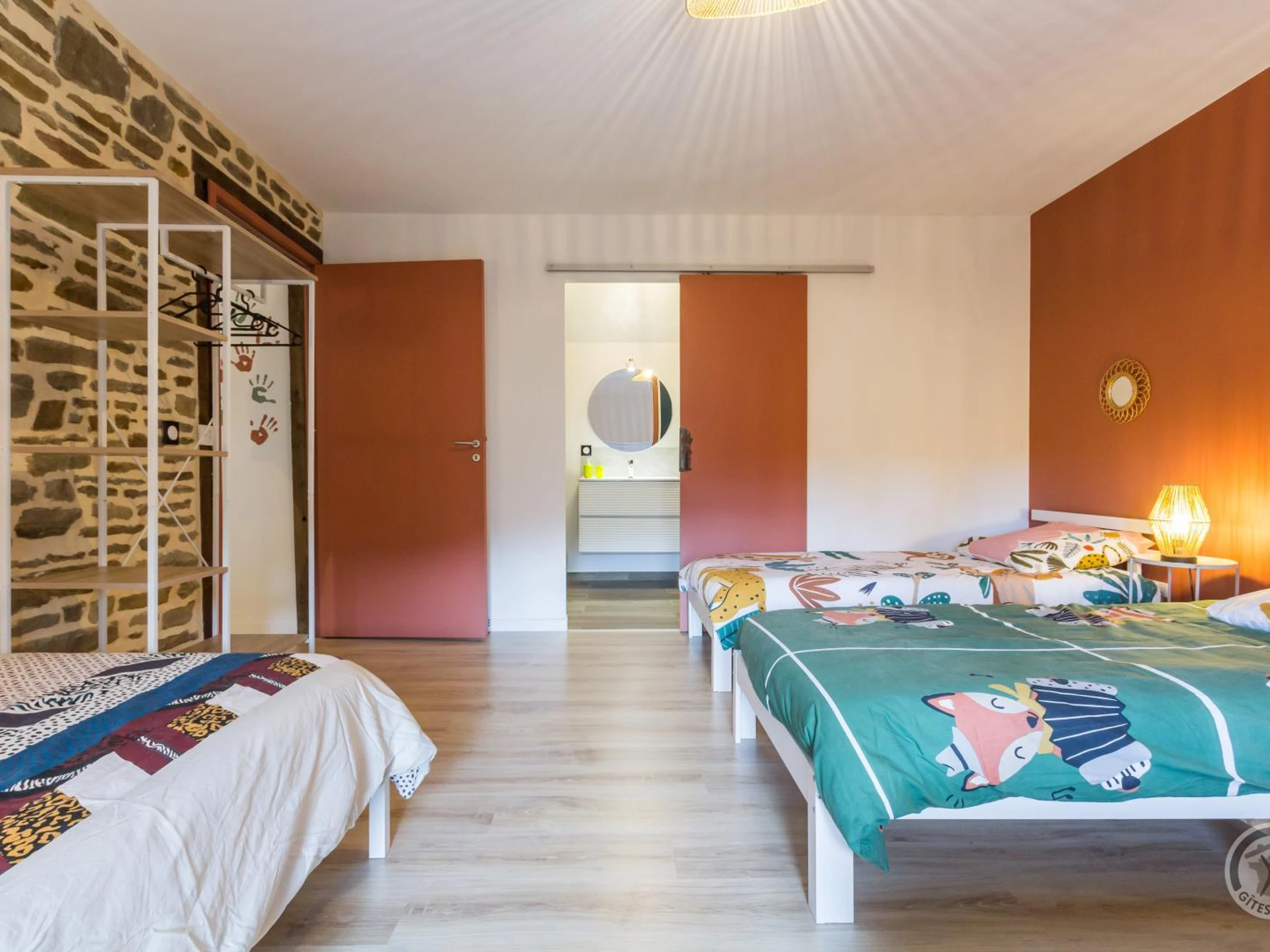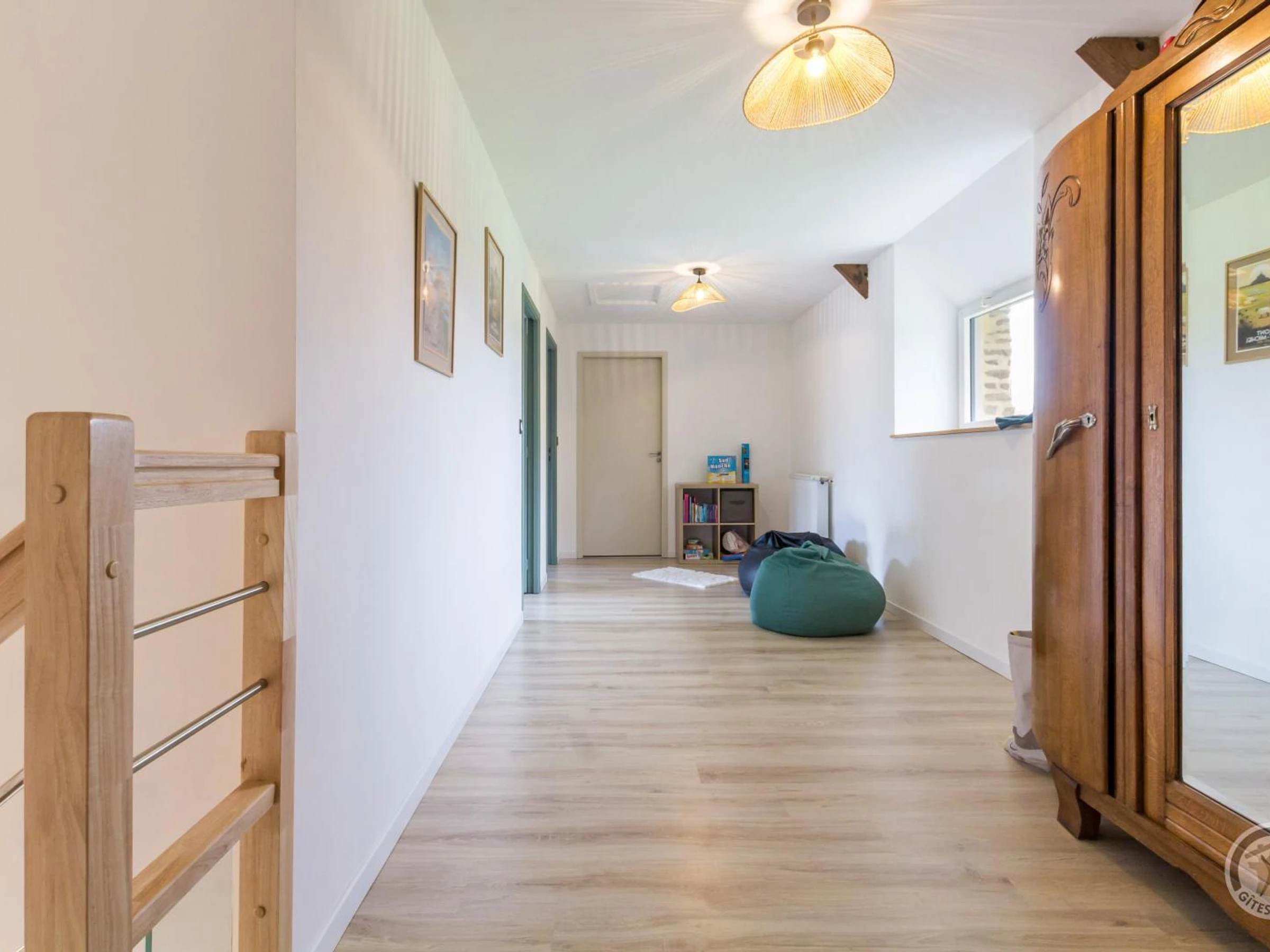 Detached house. Ground floor: Large living room with a lounge area (TV) and an open-plan fitted kitchen (induction hob, extractor hood, oven, microwave, dishwasher, freezer compartment). Bedroom 1 (two 90x190cm beds). Shower room with WC adapted for people with reduced mobility (washbasin, shower with seat and grab bars, heated towel rail). Upstairs: Bedroom 2 (one 140x190cm bed). Shower room with WC (washbasin and shower). Bedroom 3 (two 90x190cm beds). Bedroom 4 (four 90x190cm beds) and its own shower room with WC. Children's games and board games. Outside: Enclosed garden. Terrace. Parking. Covered shelter. Garden furniture. Barbecue. Underfloor heating via air source heat pump on the ground floor and thermostatic radiators upstairs included. Bed linen and towels are available at an extra cost. Cleaning is optional. Baby equipment available. Located in Carnet, a charming village in southern Manche near Saint-James, this comfortable cottage welcomes you for a peaceful stay in the countryside. Certified as accessible for people with disabilities (Tourisme & Handicap label), it is perfectly suited to all holidaymakers, offering functional living spaces and facilities adapted for people with reduced mobility. The fully renovated house combines old-world charm with modern comforts for a truly relaxing stay.