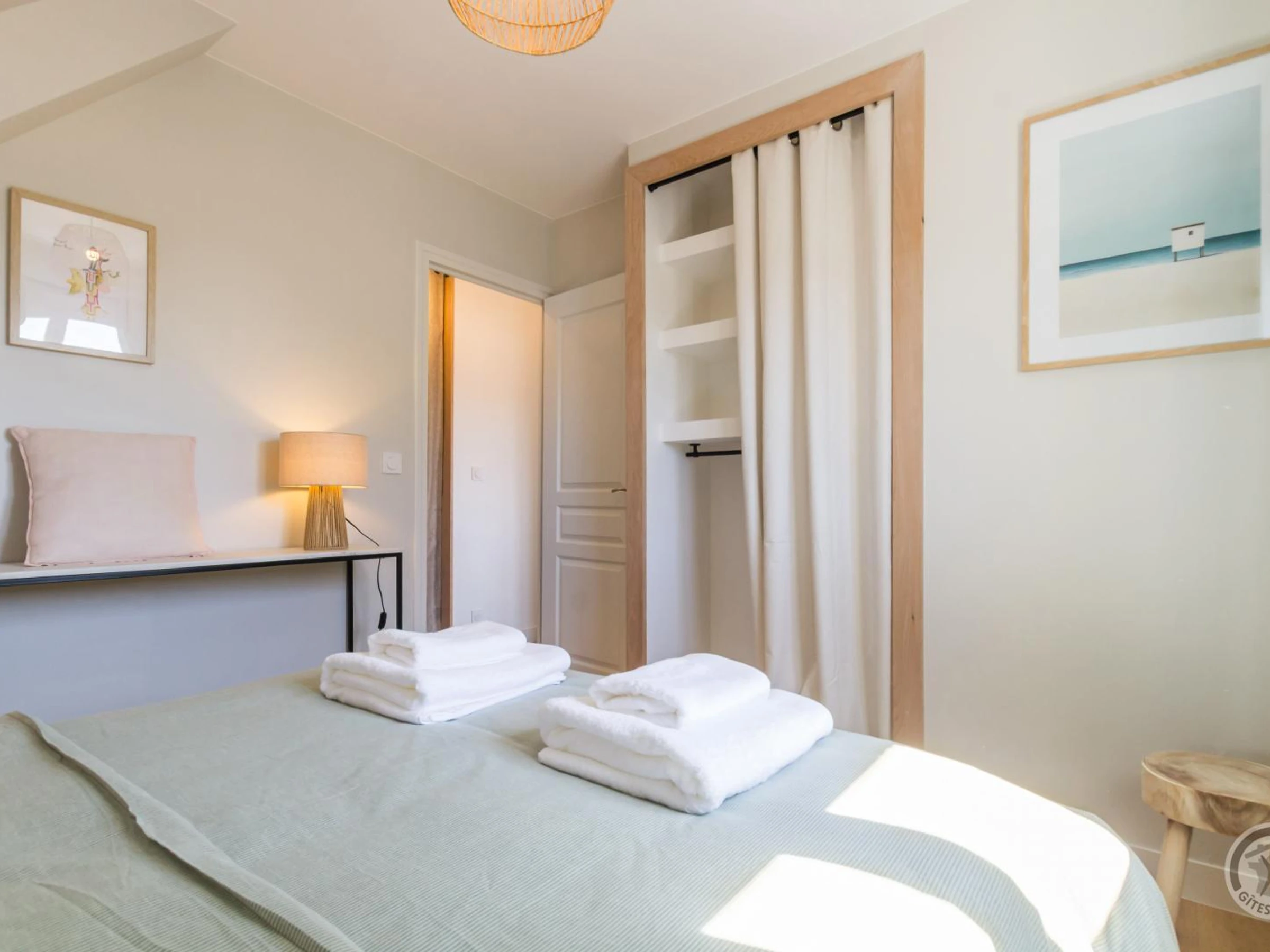House adjoining another rental. Living room (TV, fiber optic internet). Equipped kitchen open to the living room (induction hob, oven, dishwasher, microwave, refrigerator with freezer). Shower room (washing machine). Separate toilet. Upstairs, separate toilet, shower room, bedroom 1 (140x190 bed), bedroom 2 (160x200 bed) and bedroom 3 (2 single beds 90X190). Baby equipment on request. Sheets provided and beds made upon arrival. Towels for hire. Electric heating included. All charges included. End-of-stay cleaning service at an additional cost. Private enclosed garden. Terrace. Garden furniture. Deckchairs. Barbecue. Parking. Annex room available on request. Less than 100m from the large sandy beach, this pleasant house is perfectly located in the heart of the peaceful seaside resort, close to the golf course, a tennis court and the equestrian center. Beautifully renovated, the living room is warm with its blend of linen, natural fibers, and light wood. The petrol-blue kitchen is functional with its large breakfast bar. The house has a bathroom on each level, and you'll enjoy choosing one of the three charming bedrooms, each equipped with wall-mounted storage. The hedged garden and terrace perfectly complement this location, ideal for seaside vacations and pleasures. You can take the time to explore Barneville-Carteret from its iconic cape, its natural haven with its charming harbor, and its large sandy beach. Jersey is just across the street and can be a wonderful excursion!