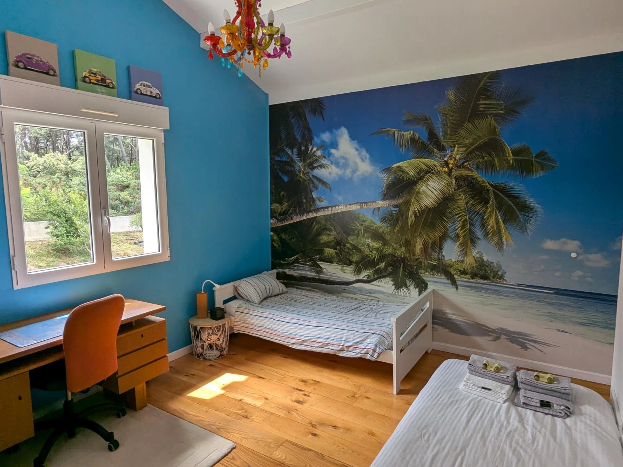 Discover this magnificent contemporary villa, a true haven of peace that can accommodate up to 12 people. It features six spacious bedrooms, five with double beds and one with two single beds (90x190cm), as well as a large, light-filled living room opening onto a fully equipped modern kitchen, ideal for sharing convivial moments.