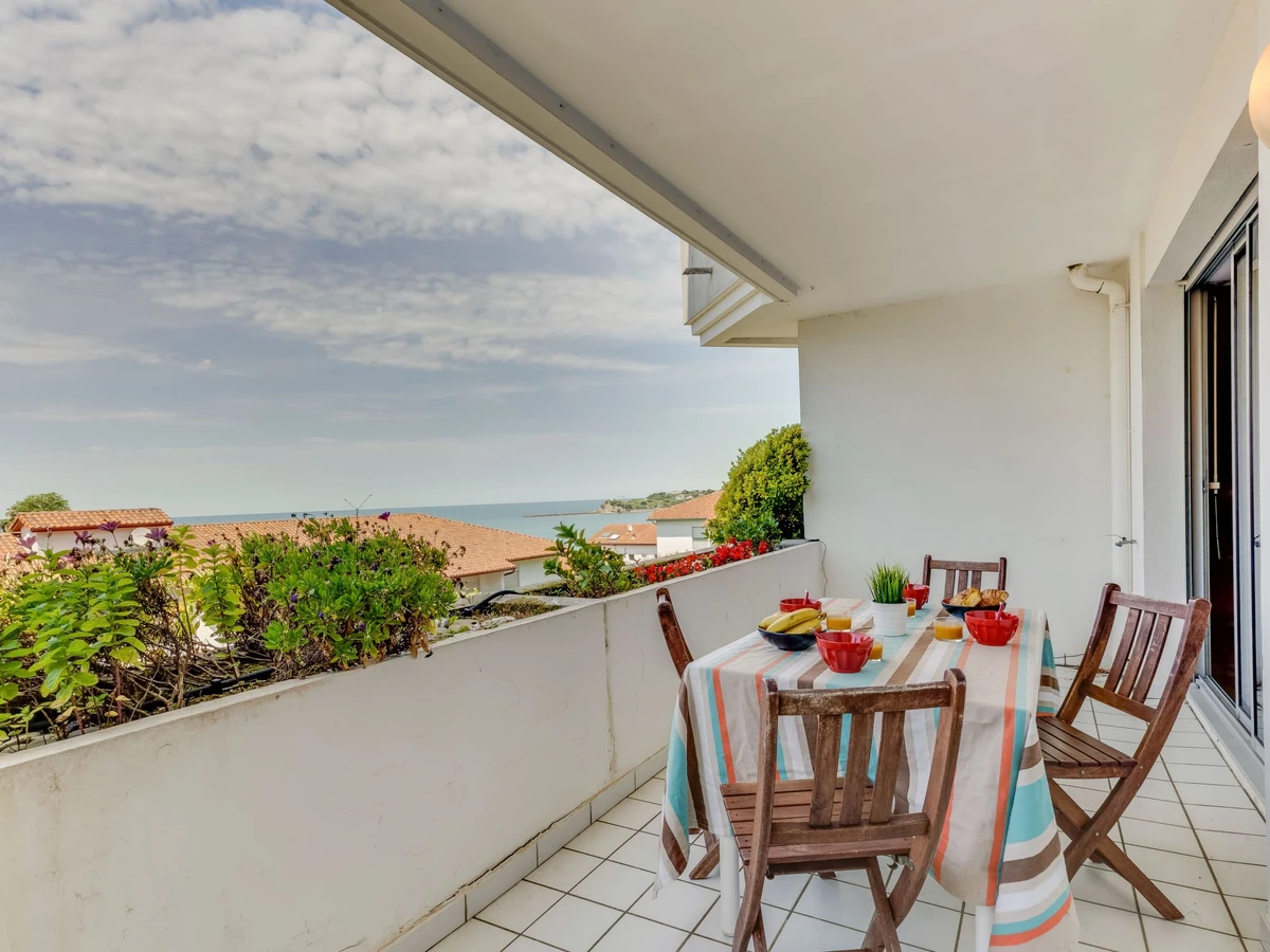 "Euskara", 2-room apartment 30 m2 on 1st floor. Beautiful furnishings: living/dining room with panoramic window with 1 double sofabed (140 cm, length 190 cm), TV (flat screen). Exit to the terrace. 1 room, 2 bunk beds (90 cm, length 190 cm). Open kitchen (dishwasher, 2 induction hot plates, toaster, kettle, microwave, electric coffee machine, Capsules for coffee machine (Nescafé Gusto)). Bathroom, sep. WC. Electric heating. Large terrace 10 m2. Terrace furniture. View of the sea. Facilities: washing machine, dryer, iron, hair dryer. Internet (WiFi, free). Reserved parking space n 84. Please note: smoke alarm. Offer by a private individual according to  Art. 155, IV of CGI. [hidden]