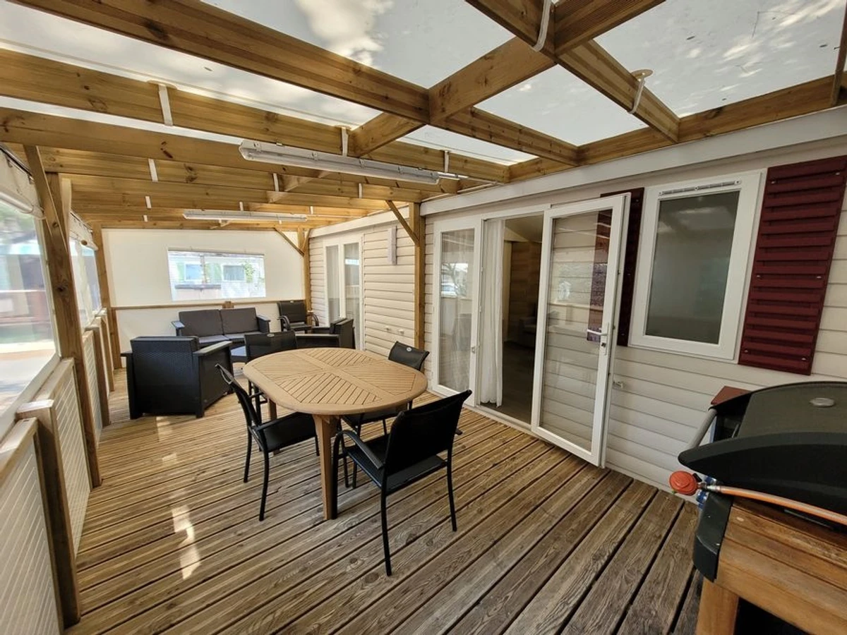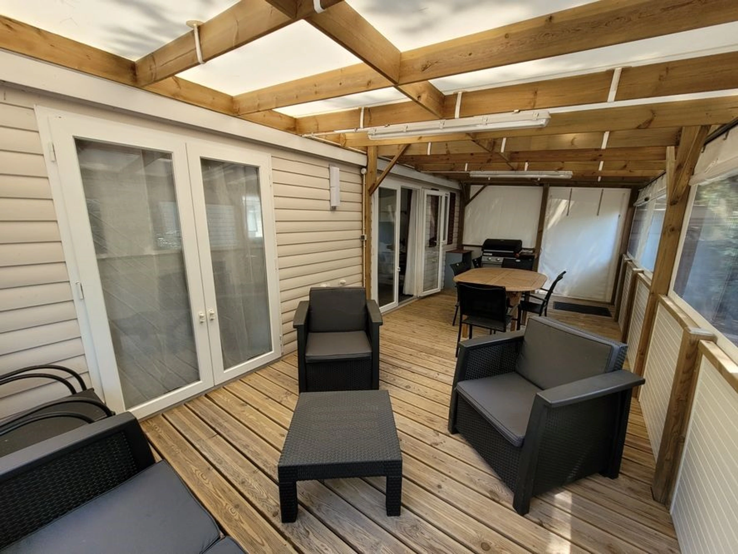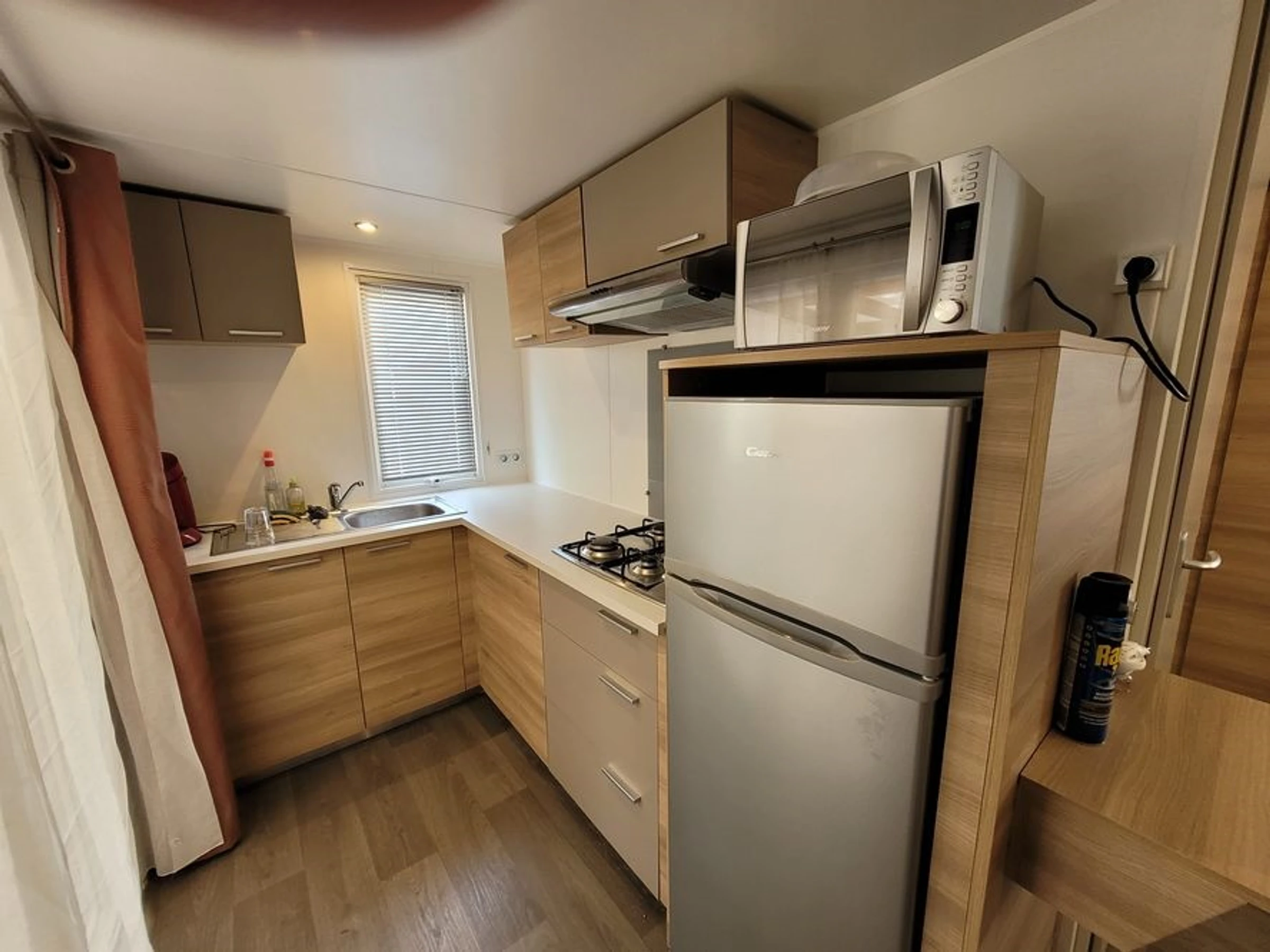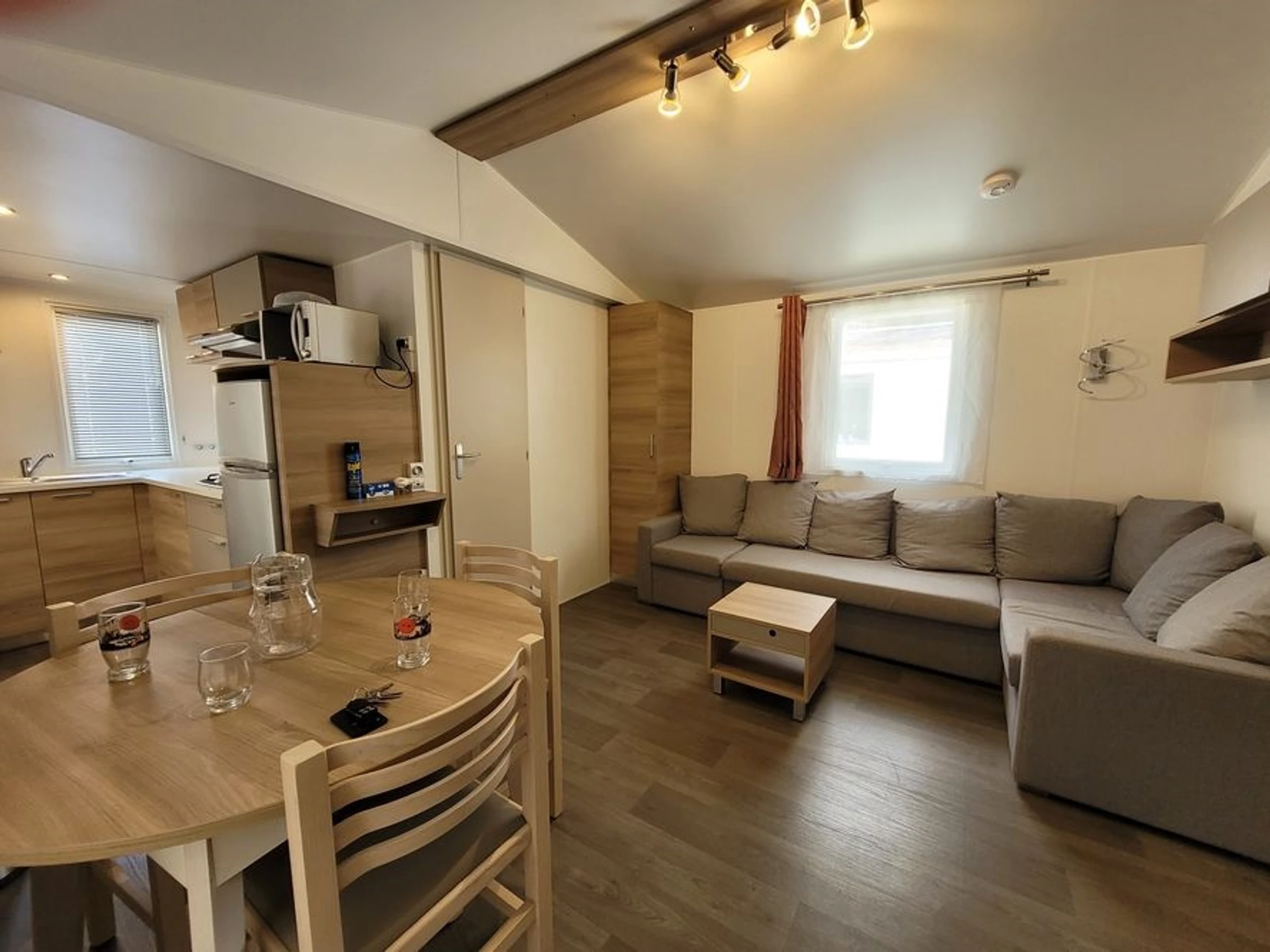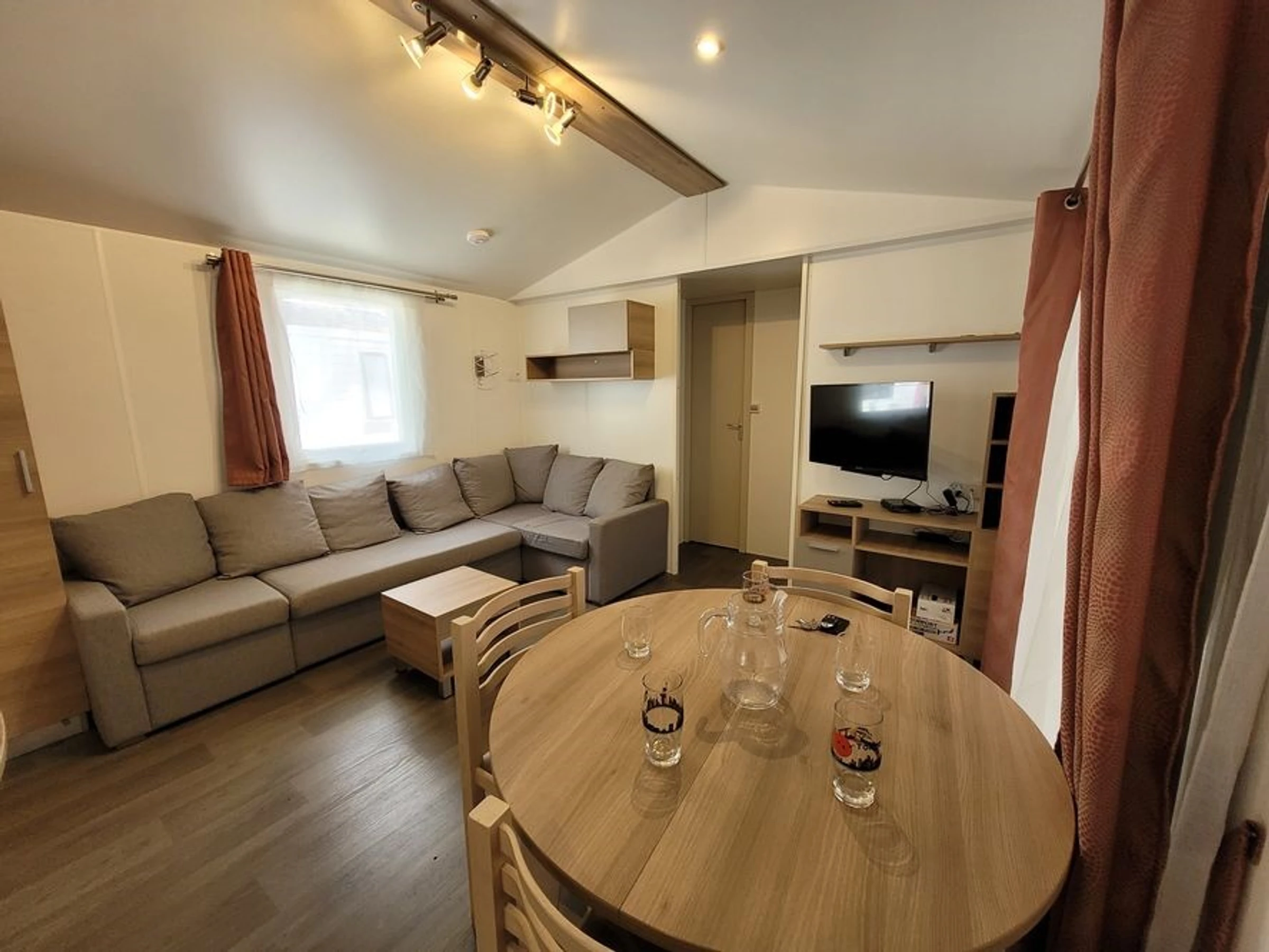 In a 4-star campsite located 1800m from the beach and in the immediate vicinity of the forest and cycle paths - A 2015 mobile home for 4 to 6 people with a surface area of 35m² - The campsite offers food, restaurant, bar on site , takeaway meals, fitness room, heated outdoor swimming pool July/August, heated indoor swimming pool, jacuzzi - In addition: internet, bicycle rental, sauna, hammam, washing machine -- PILLOWS NOT PROVIDED