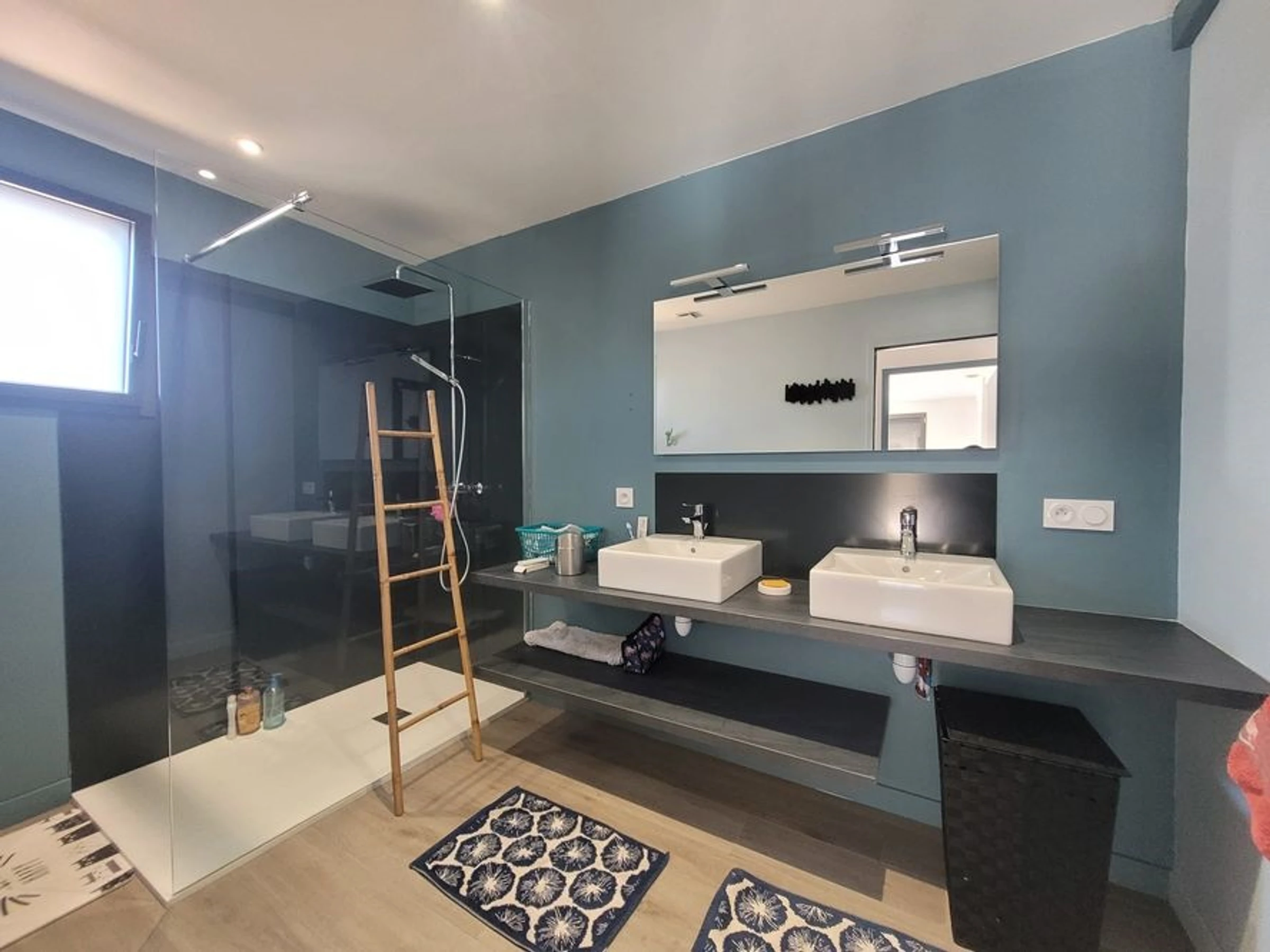 - BEDROOM 2: 2 bunk beds for 2 people 140cms - wardrobe - bedside table - lamp -- - SEPARATE WC - washbasin -- - SHOWER ROOM: 2 sinks - Italian shower -- - UPSTAIRS (access by a miller's ladder - 2 removable barriers are provided):