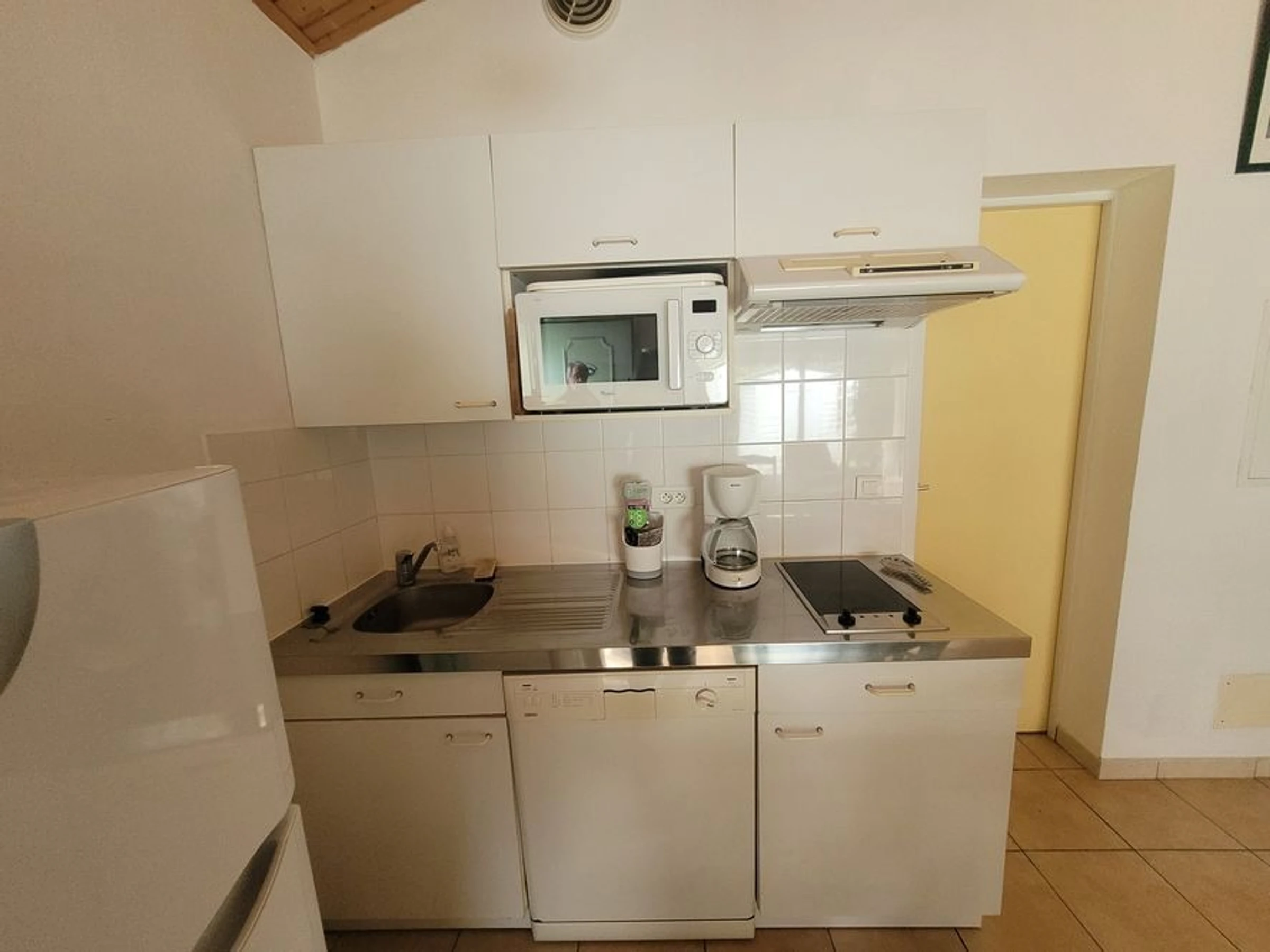- KITCHEN AREA equipped and furnished - sink - refrigerator/freezer - 2 electric hobs - extractor hood - microwave - cupboards - dishwasher - kettle - coffee maker - toaster -- - BEDROOM 1: 140cm double bed with 2 built-in bedside tables - 2 wall lights - linen closet