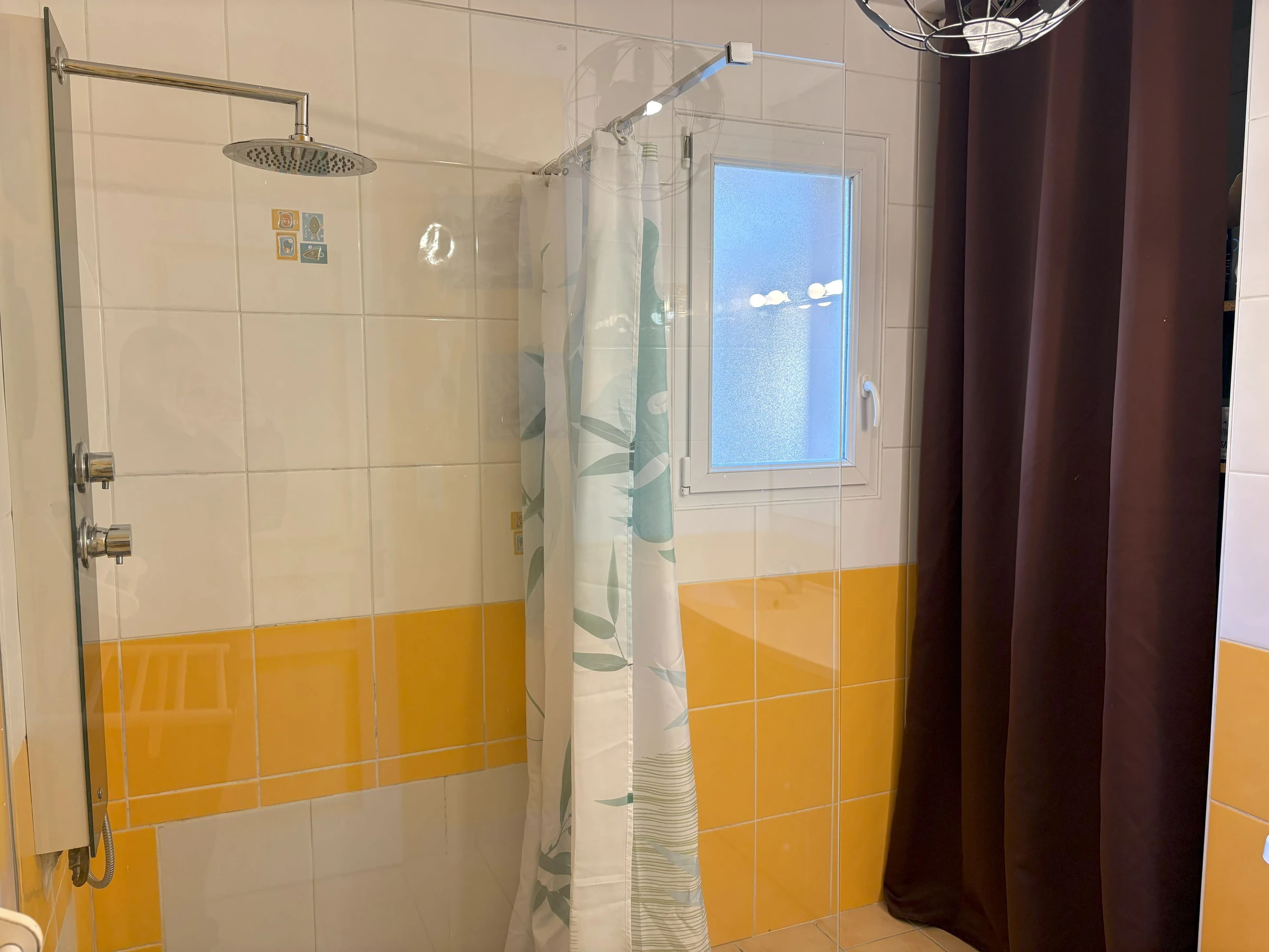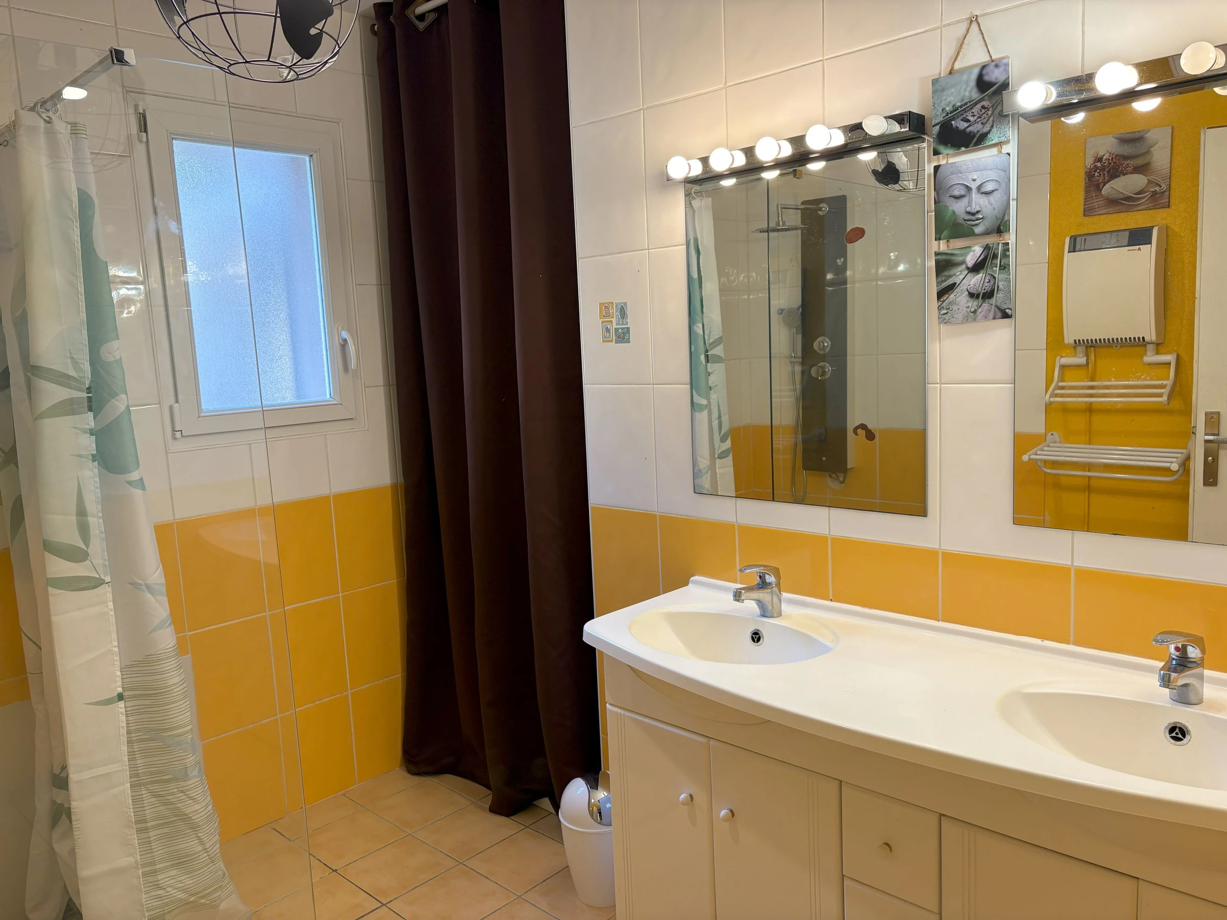 Bathroom: Italian shower, tilt and turn window, 2 sinks, towel dryer