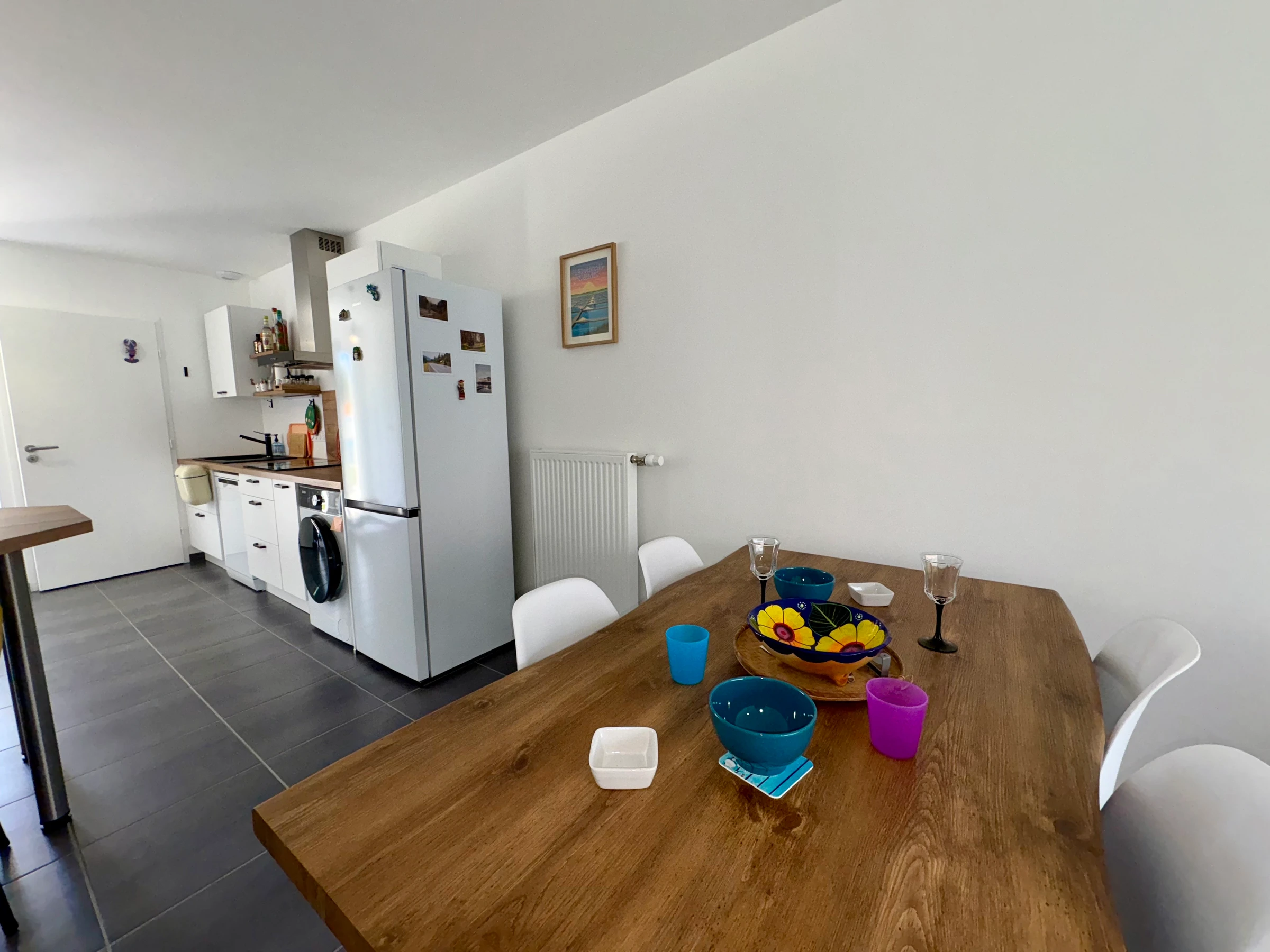 You'll love preparing delicious meals in this beautifully equipped kitchen: induction hob, mini electric airfryer oven, refrigerator/freezer combination, dishwasher, washing machine, and a bar island with 4 stools