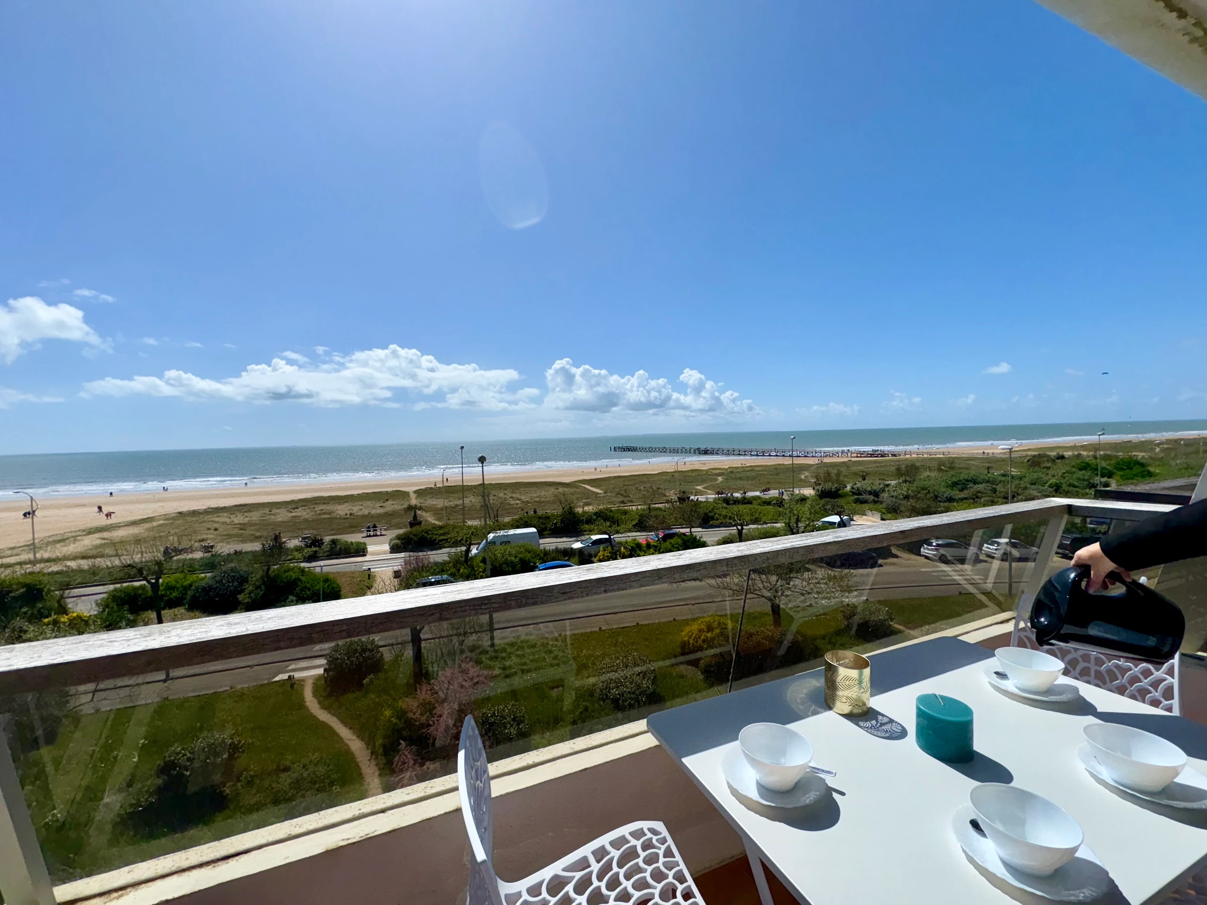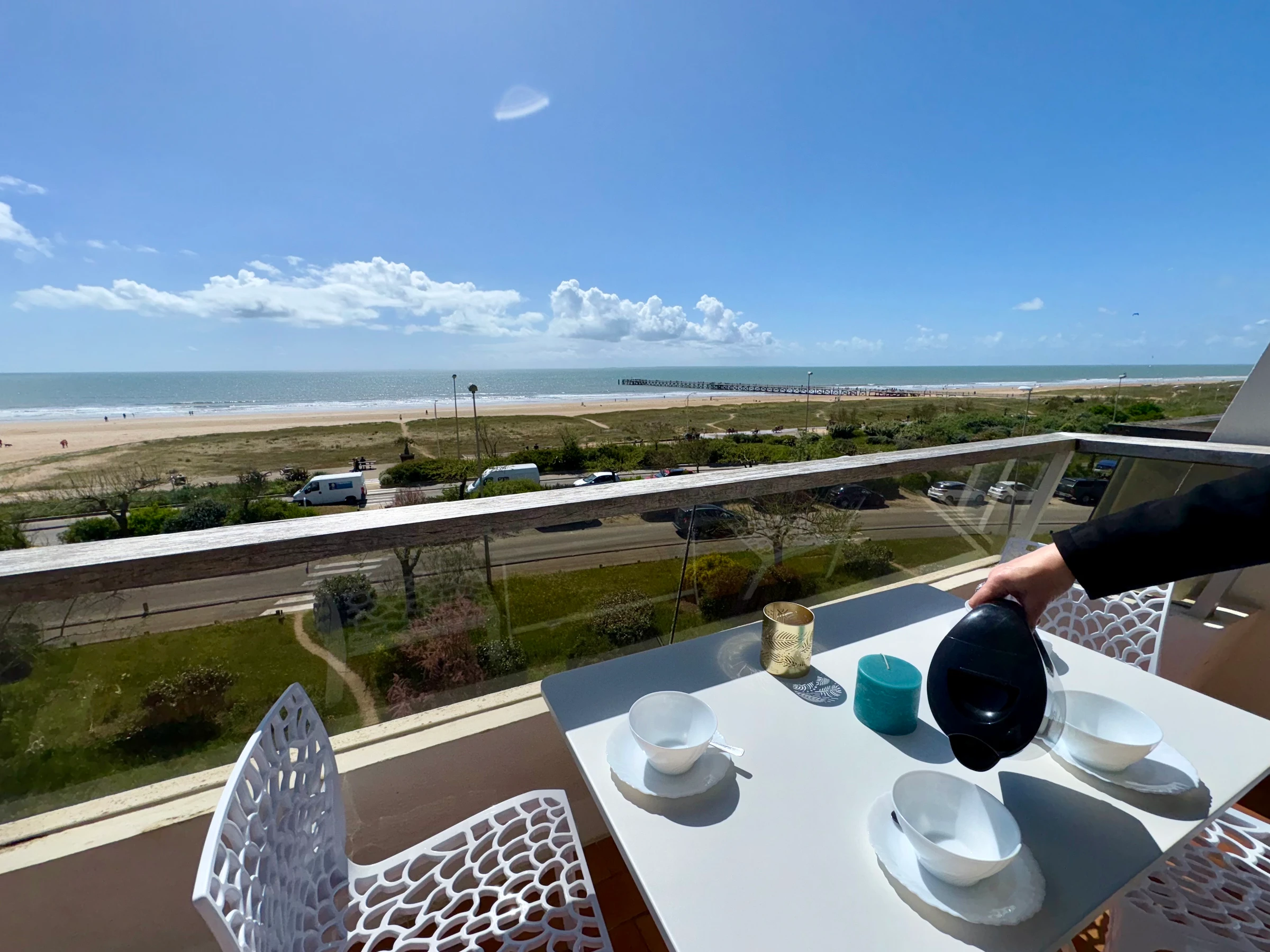 Accommodation for 4 people, 3rd floor without lift with a balcony facing the sea to enjoy the sunrise and sunset over the pier and the island of Yeu!
