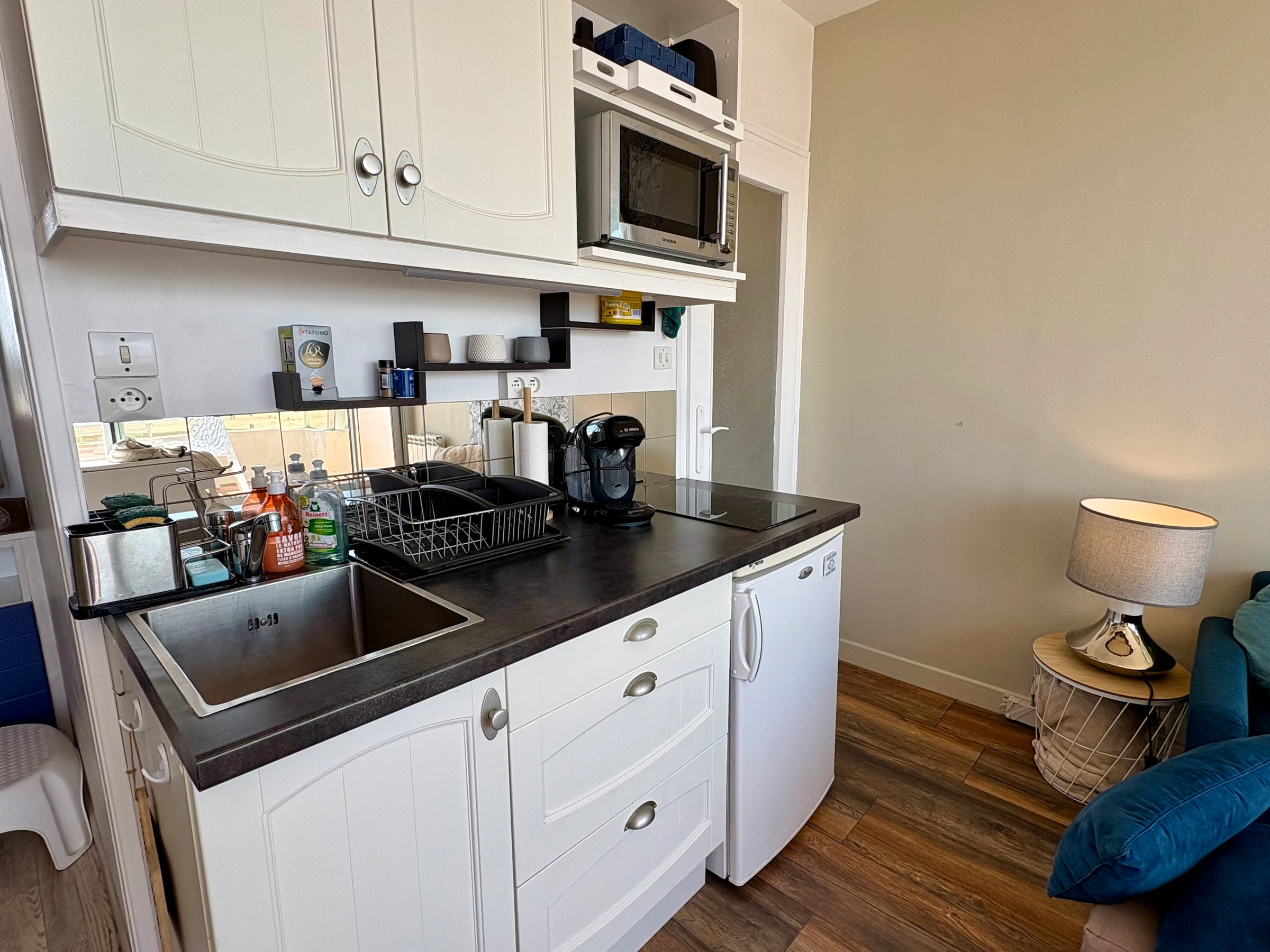 This studio is very functional and well equipped, with direct access to the beach (sailing school and beach club for children at the foot of the building) and is close to the golf course, thalassotherapy centre and amenities.