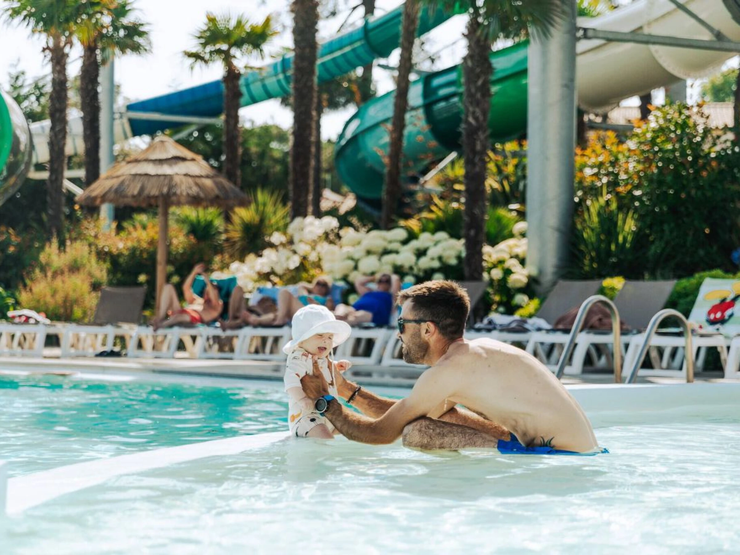 - 130 m² water park open from mid-April to mid-September. Opening hours: Low season: 10:00 am - 6:00 pm High season: 10:00 am - 8:00 pm,