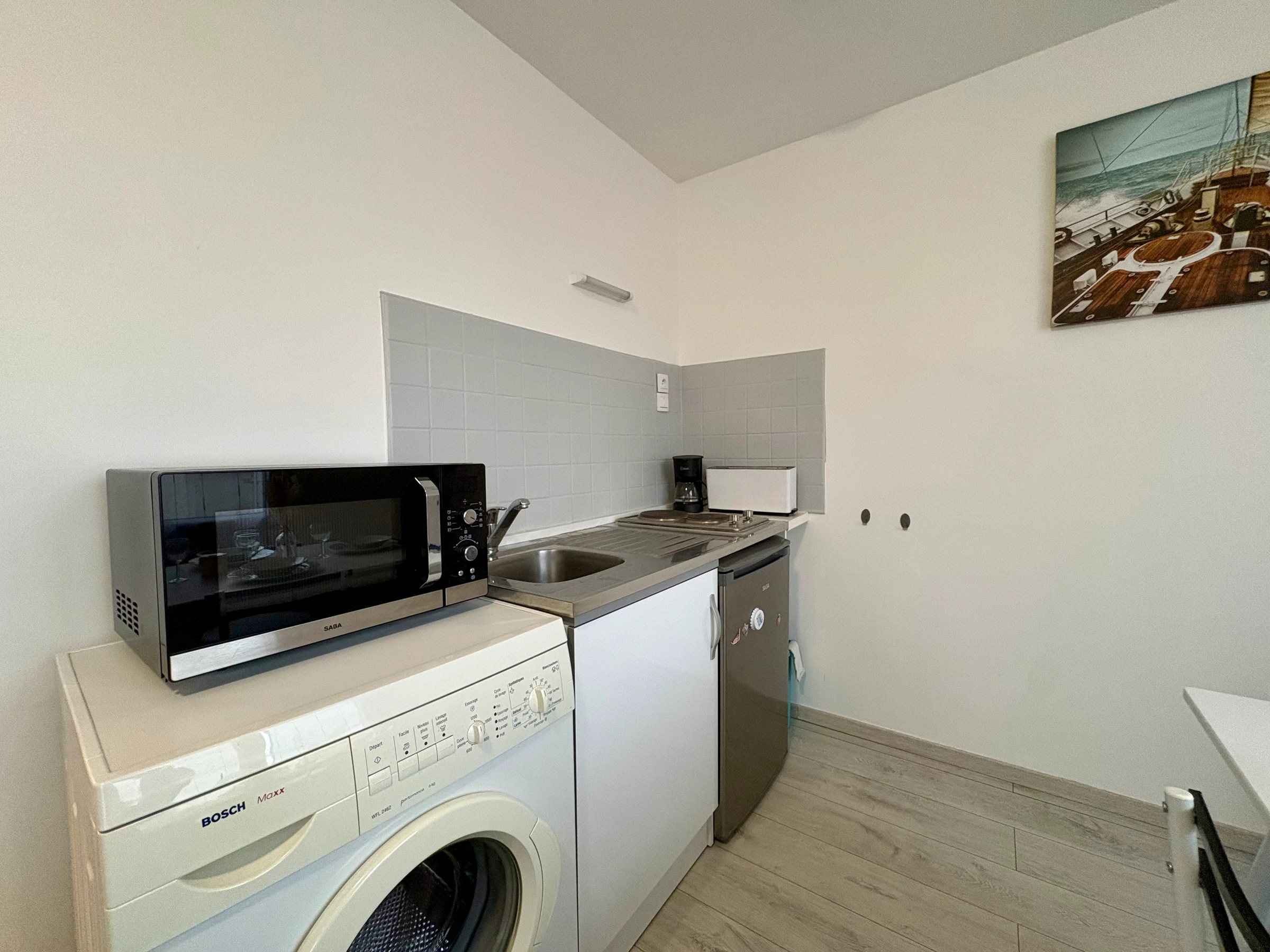For your holidays, come and enjoy this beautiful apartment, 1 bedroom, on the 1st floor of a house without elevator. Located at the foot of the Petit Marché and 200 m from the ocean, you will only have to cross the street to go to the beach.