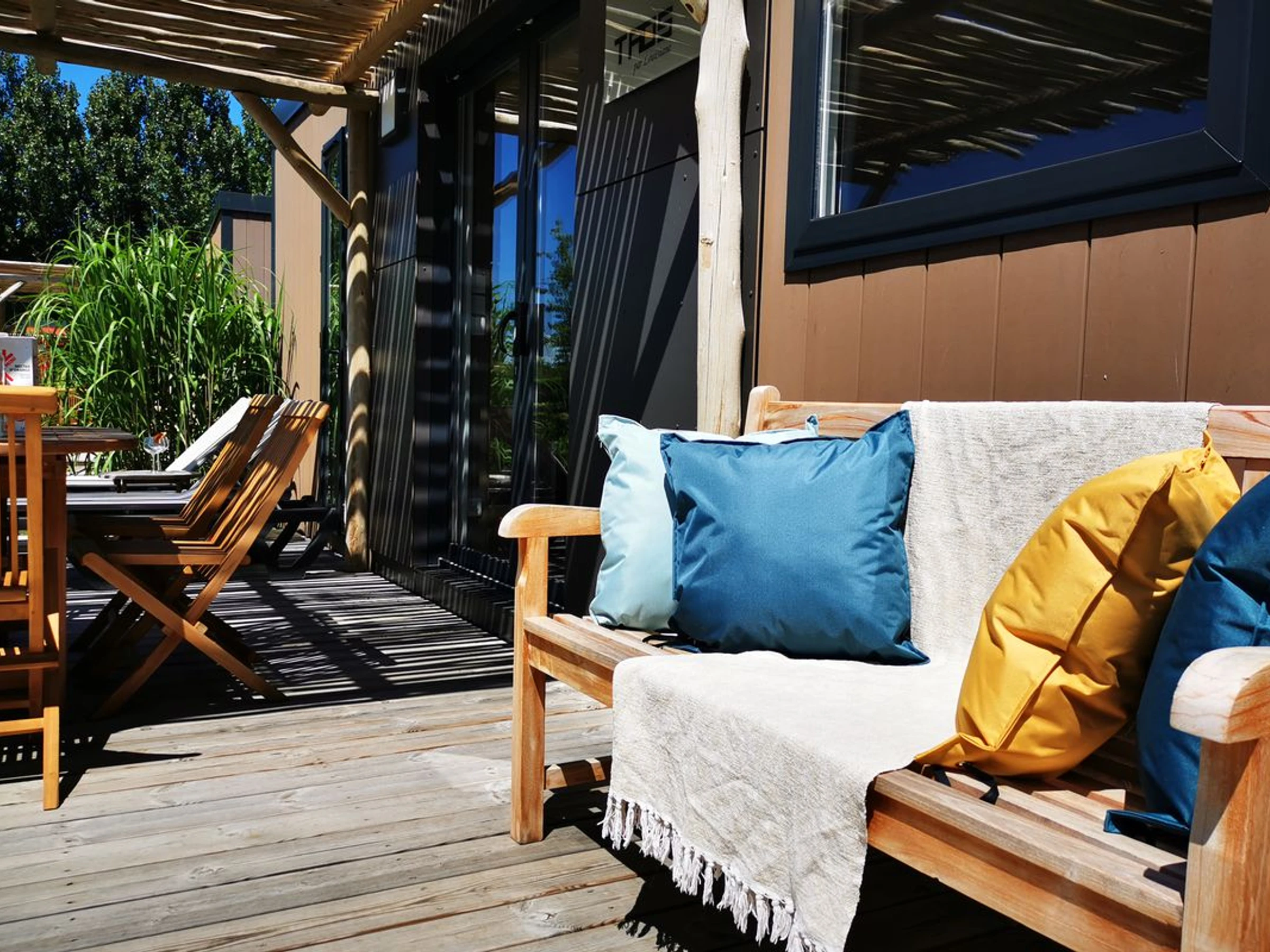 The 5-star Camping Places Dorées campsite is located in Saint-Jean-de-Monts in the Pays de la Loire region. Situated less than 10 km from the sea, Camping Places Dorées offers a pleasant holiday with quality amenities: restaurant, entertainment, kids' club, swimming pool, etc. An ideal starting point for exploring the Pays de la Loire region, you will be charmed by the beautiful landscapes and rich heritage. For your camping holiday, book your comfortable mobile home at Camping Places Dorées and enjoy guaranteed fun!