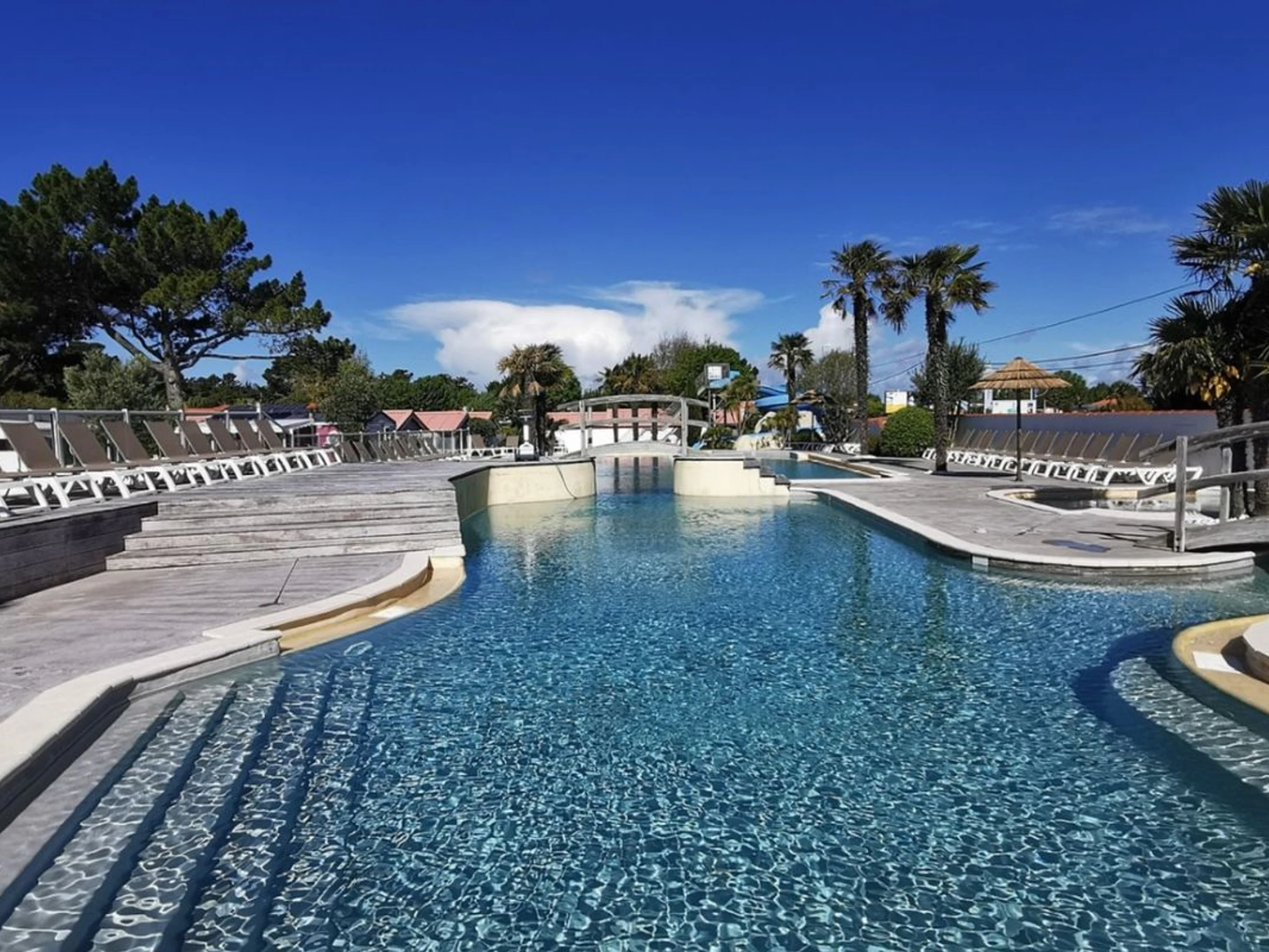 The 4-star L'Abri Des Pins campsite is located in Saint-Jean-de-Monts in the Pays de la Loire region. Situated less than 10 km from the sea, L'Abri Des Pins campsite offers a pleasant holiday with quality amenities: restaurant, entertainment, kids' club, water park, swimming pool, etc. An ideal starting point for exploring the Pays de la Loire region, you will be charmed by the beautiful landscapes and rich heritage. For your camping holiday, book your comfortable mobile home at L'Abri Des Pins campsite and enjoy guaranteed fun!