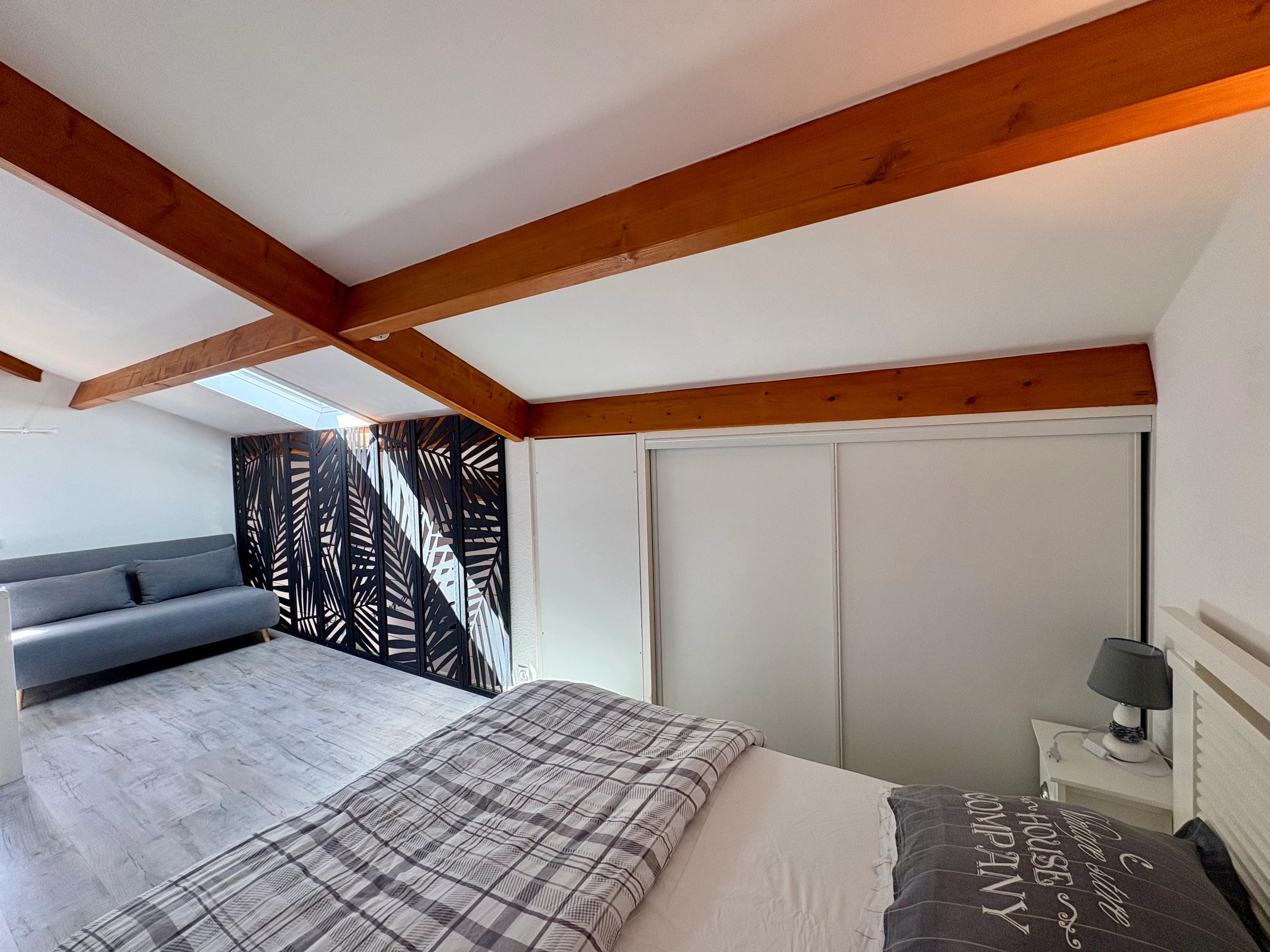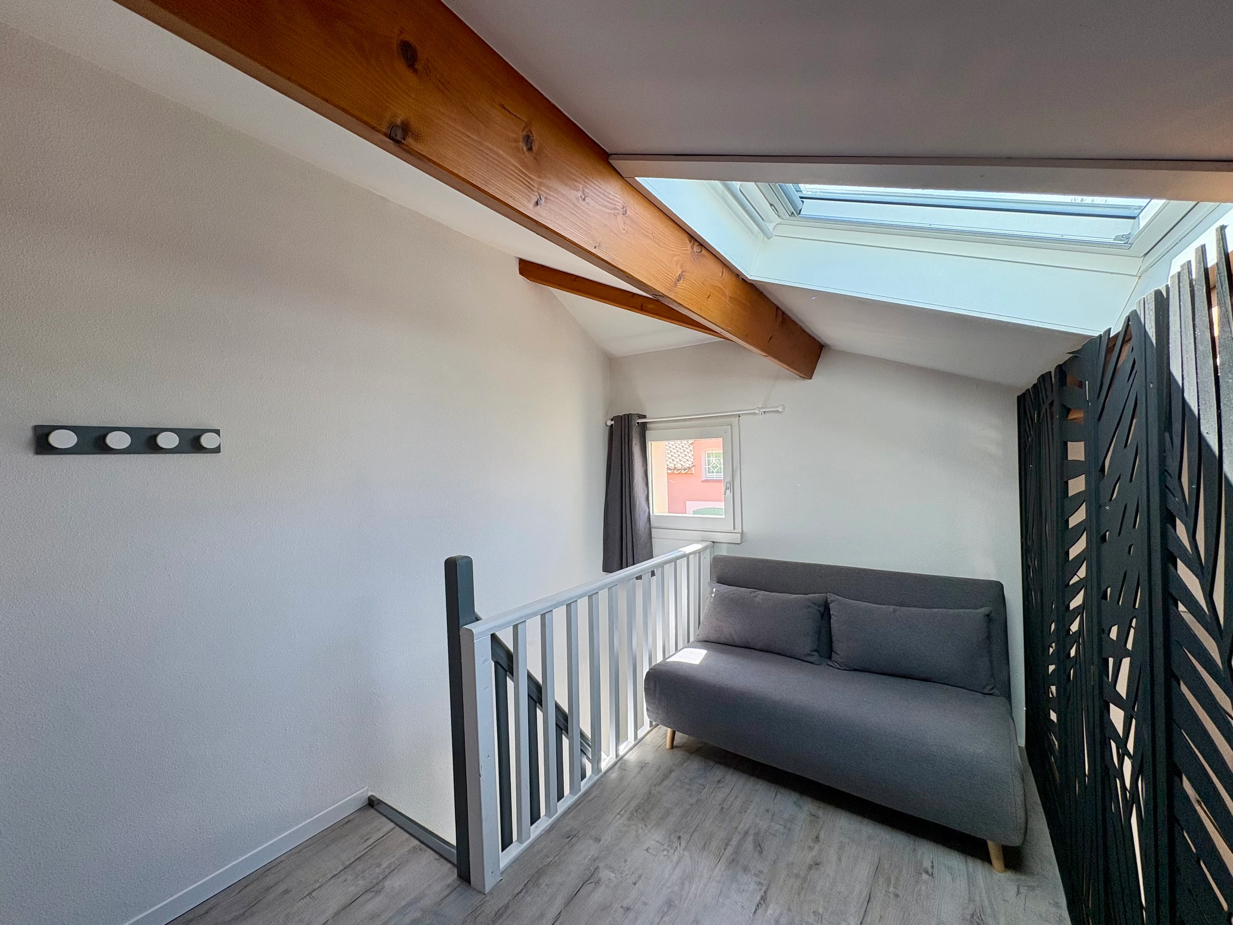 A mezzanine sleeping area for 2 people (double bed 140 cm)