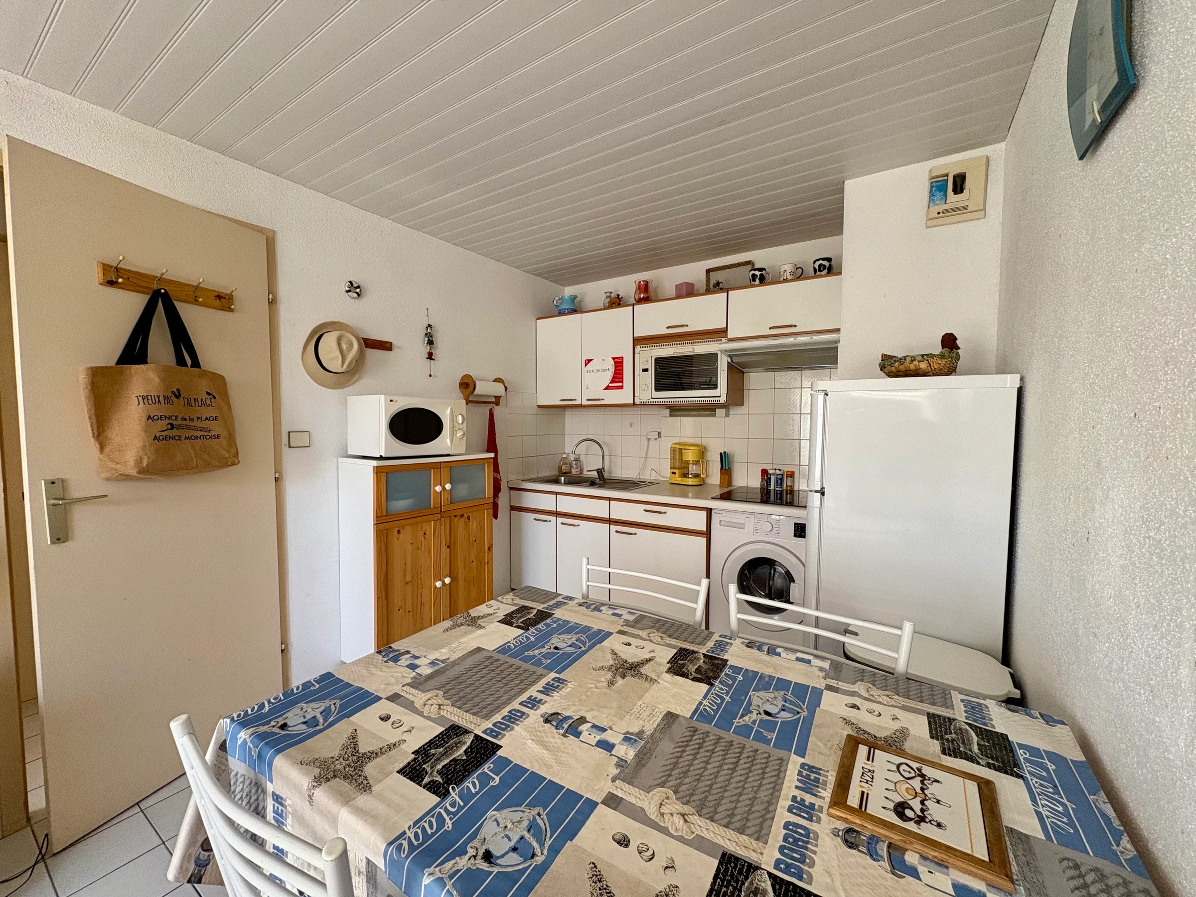 KITCHENETTE in living room: 4 electric hobs, mini-oven, MICROWAVE, refrigerator with freezer compartment, sink, extractor hood - WASHING MACHINE