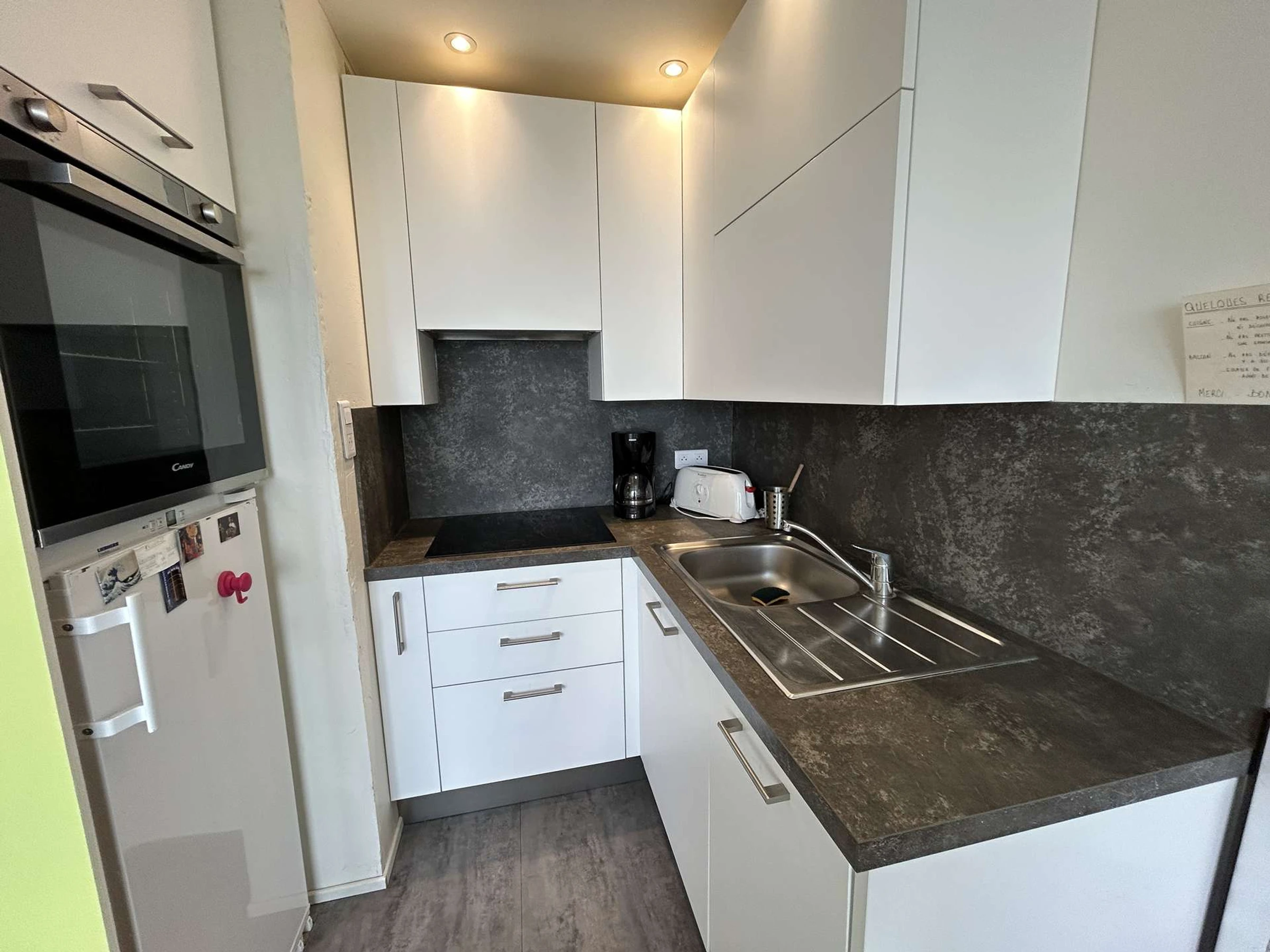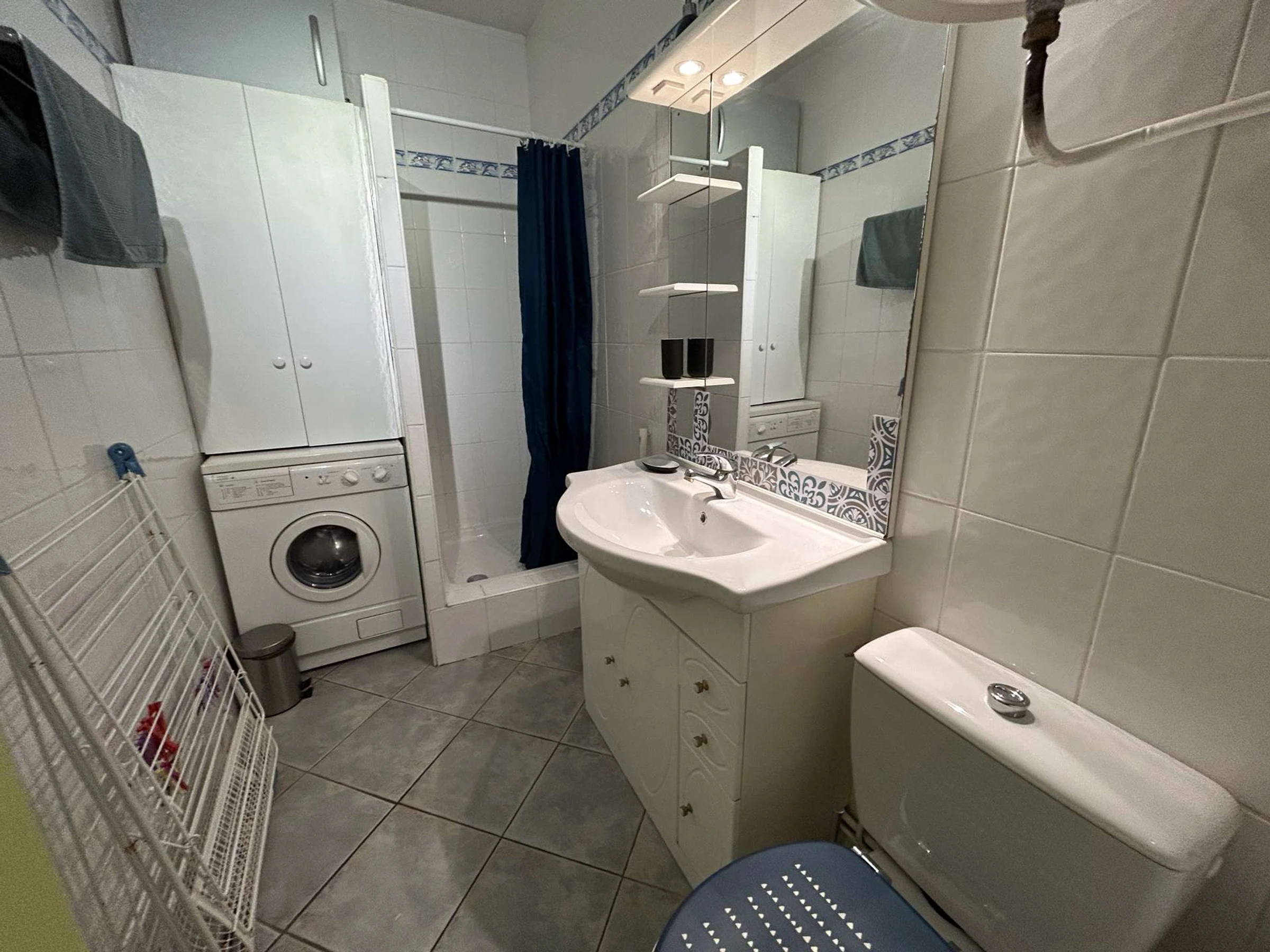 This studio rental facing the sea for holidays is located on the 2nd floor of a small residence and includes: a living room with a convertible sofa for 2 people (140) and balcony overlooking the sea, television, an equipped kitchen area (electric oven, 3 vitro burners and dishwasher), a bathroom with toilet, washing machine.