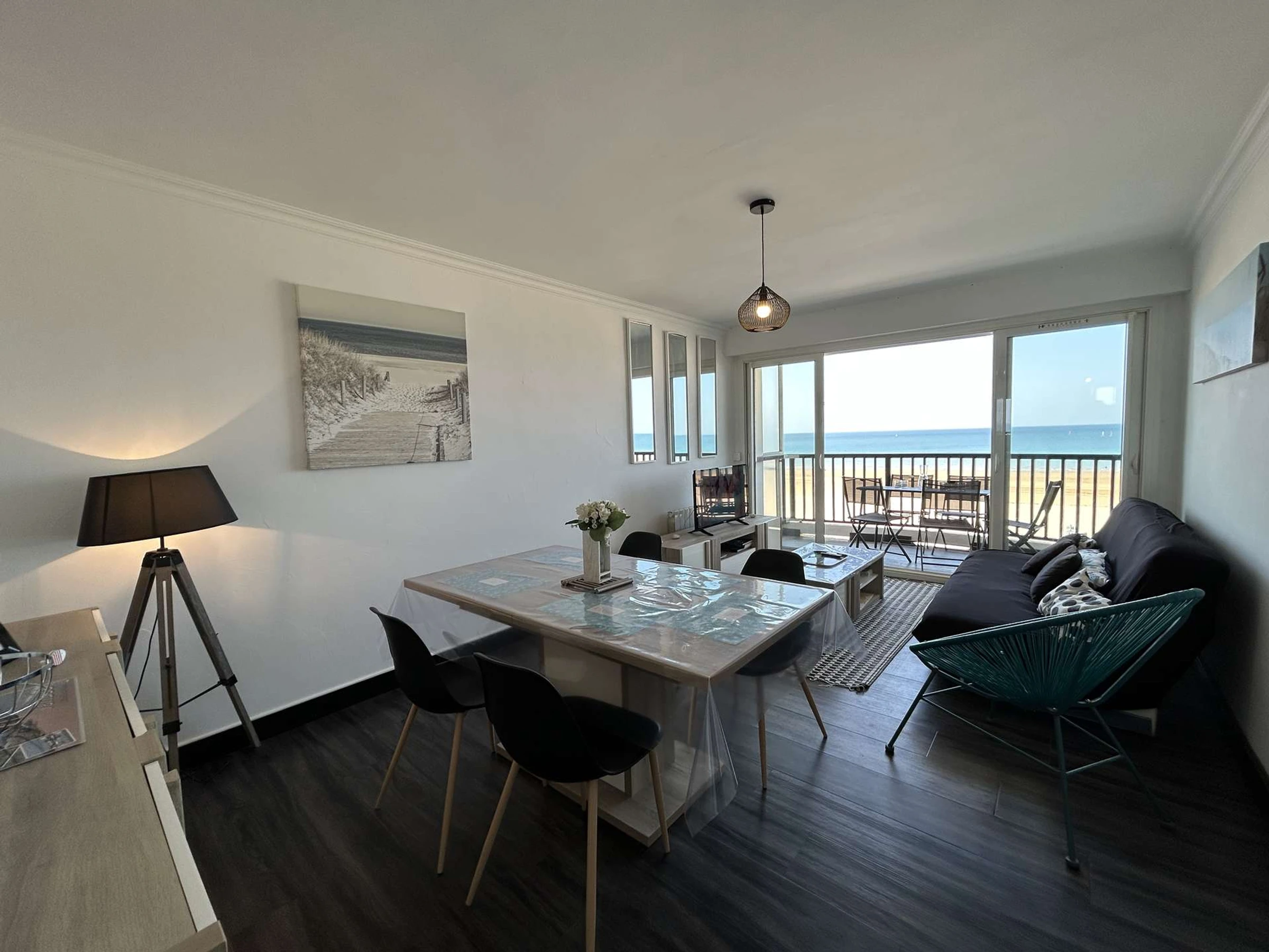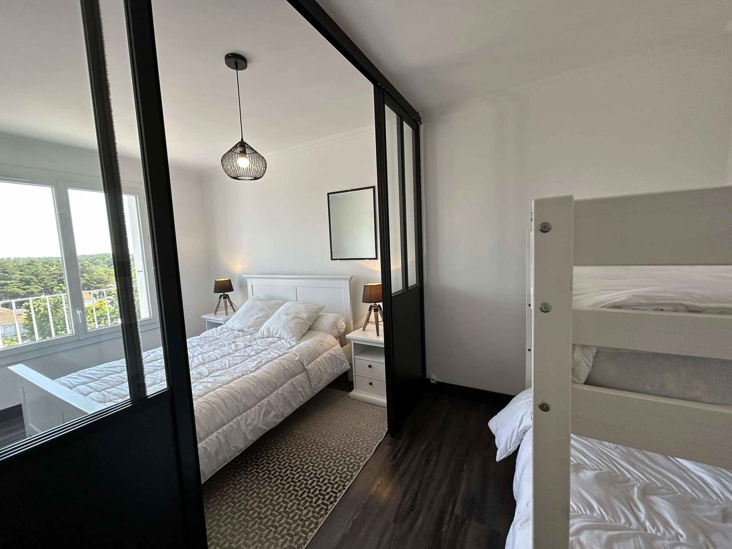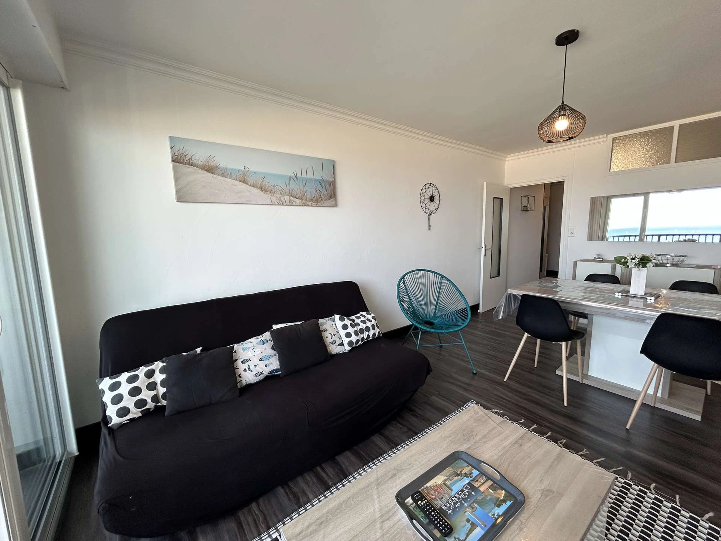 Cet hébergement à la mer refait avec goût offre une pièce de vie avec un canapé et télévision, une cuisine toute équipée (lave-linge, lave-vaisselle, four, micro-ondes, réfrigérateur-congélateur, 3 feux induction), un coin cabine avec 2 lits superposés une place (90 cm), une spacieuse chambre avec lit double (140 cm), une salle d'eau avec sèche-serviette, un wc indépendant.