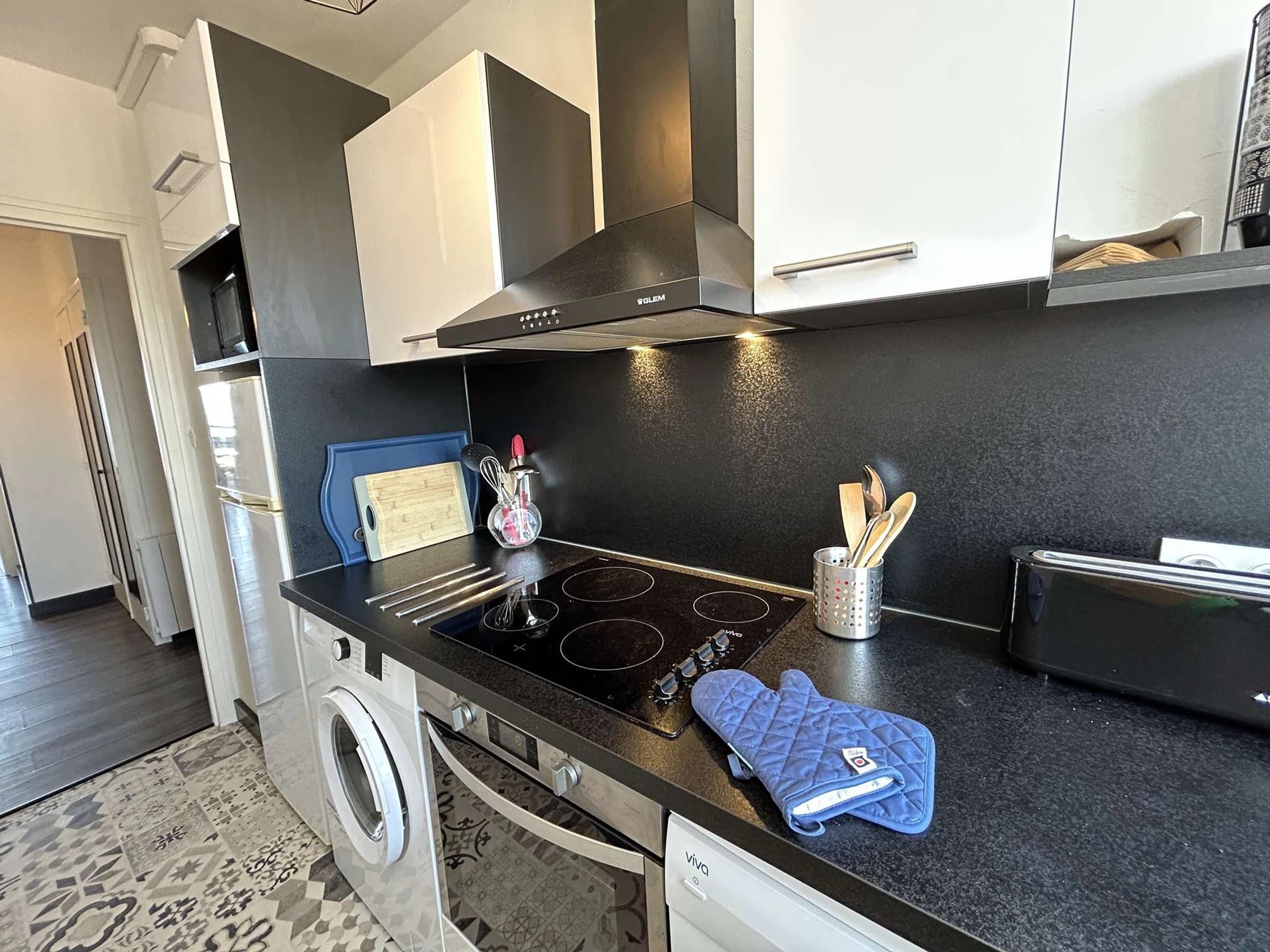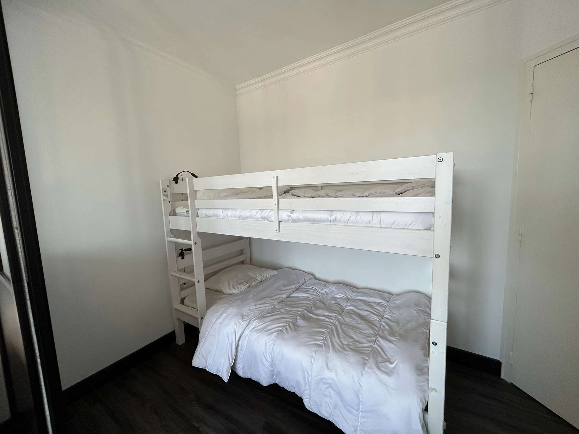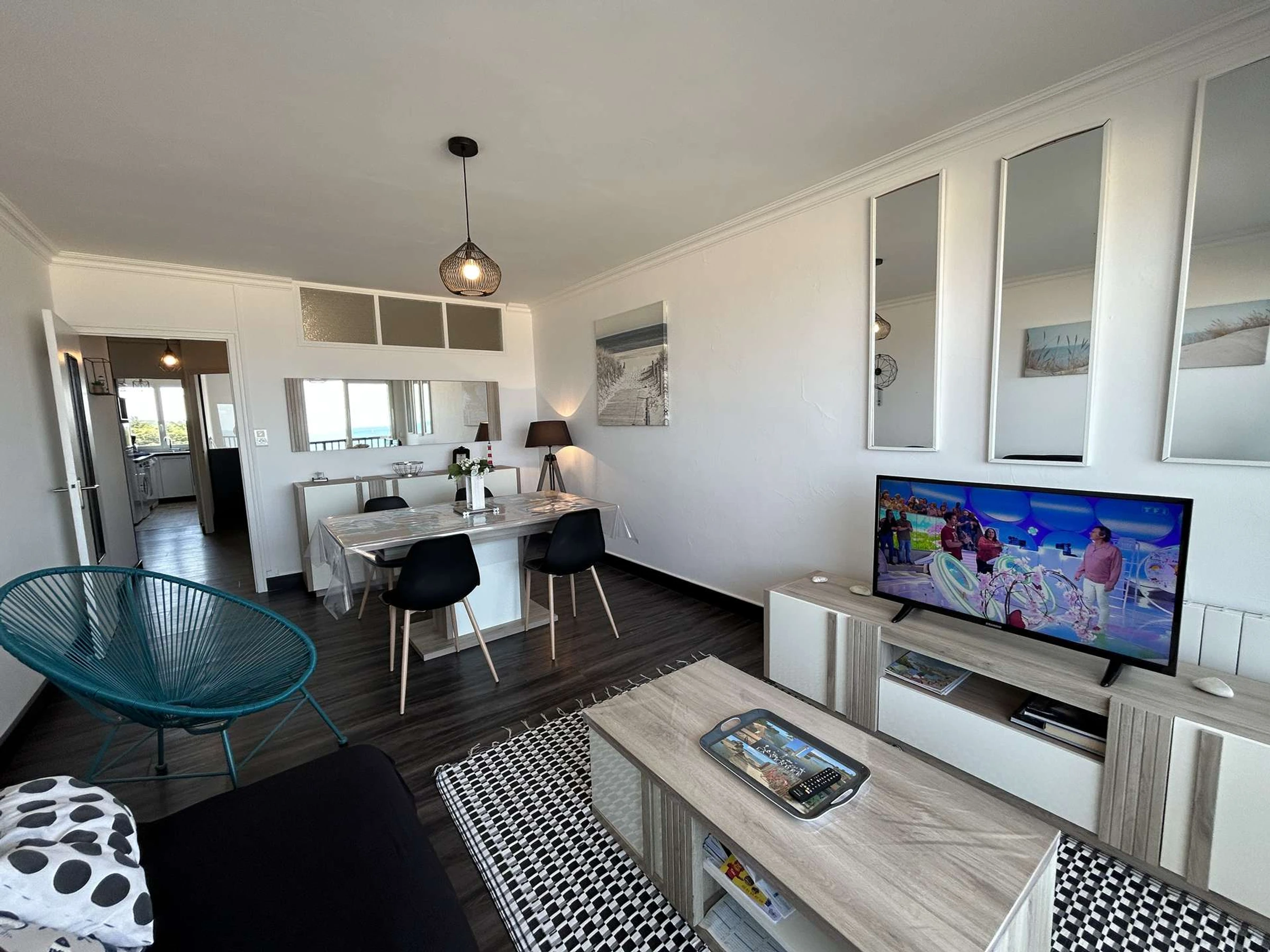 Cet hébergement à la mer refait avec goût offre une pièce de vie avec un canapé et télévision, une cuisine toute équipée (lave-linge, lave-vaisselle, four, micro-ondes, réfrigérateur-congélateur, 3 feux induction), un coin cabine avec 2 lits superposés une place (90 cm), une spacieuse chambre avec lit double (140 cm), une salle d'eau avec sèche-serviette, un wc indépendant.