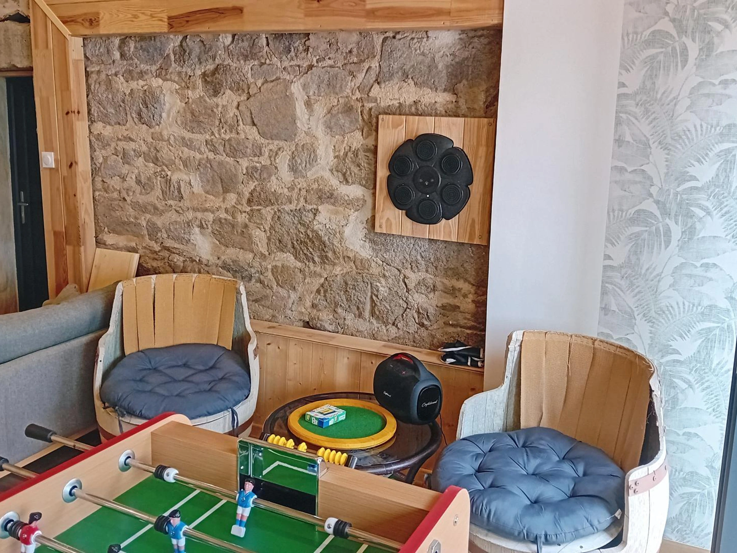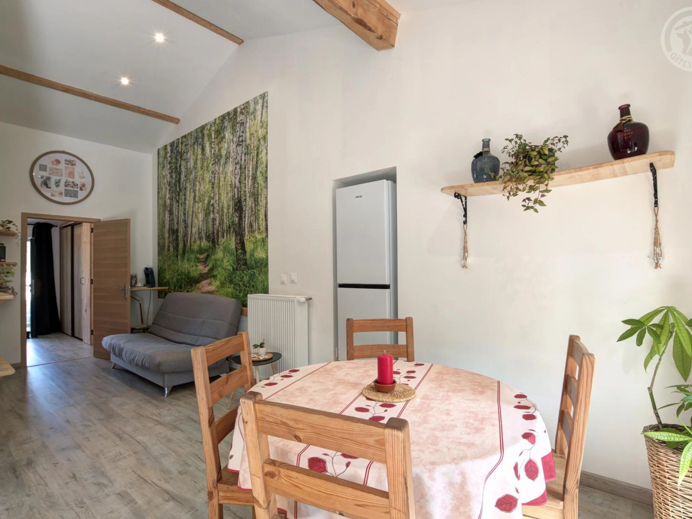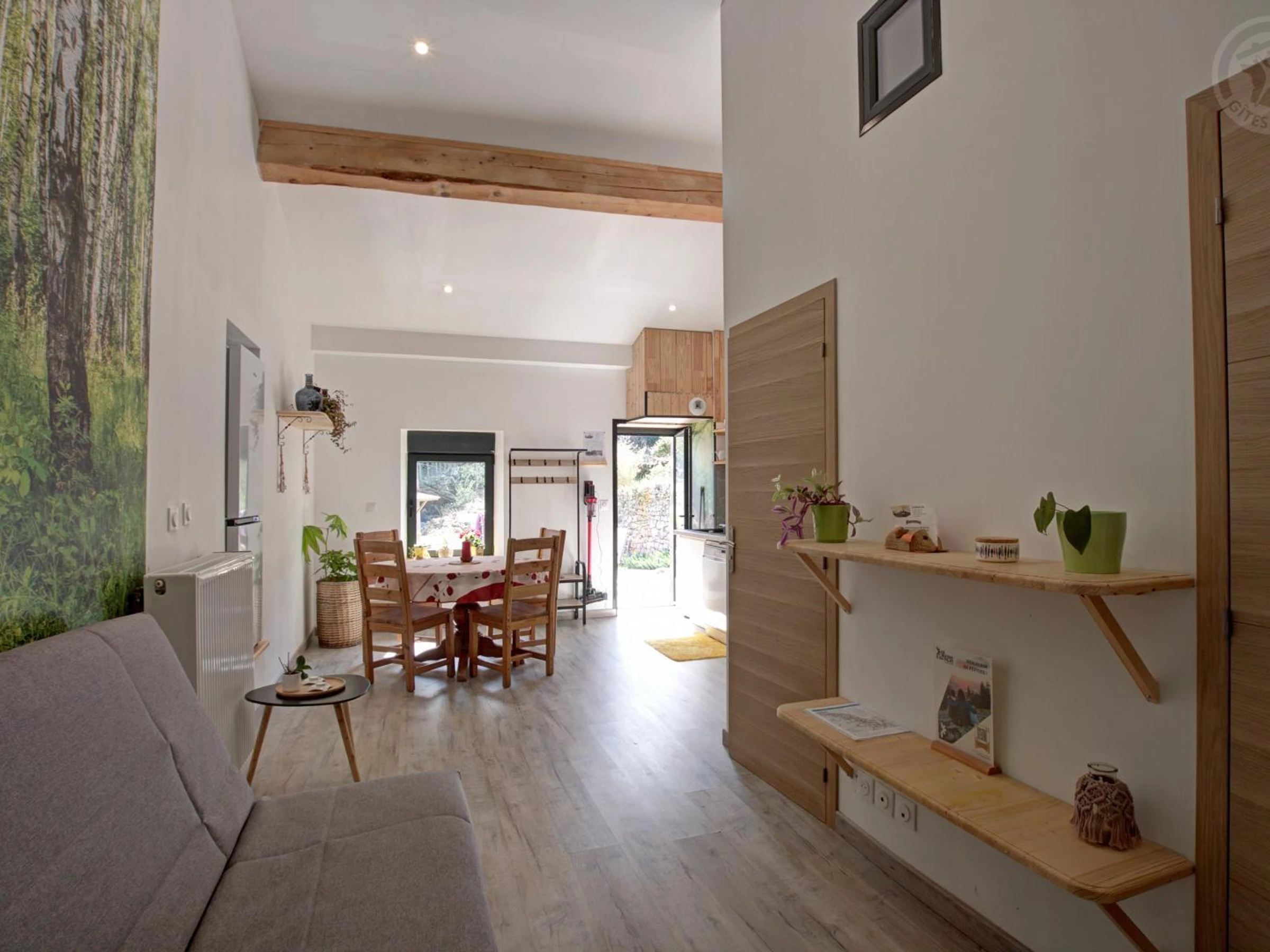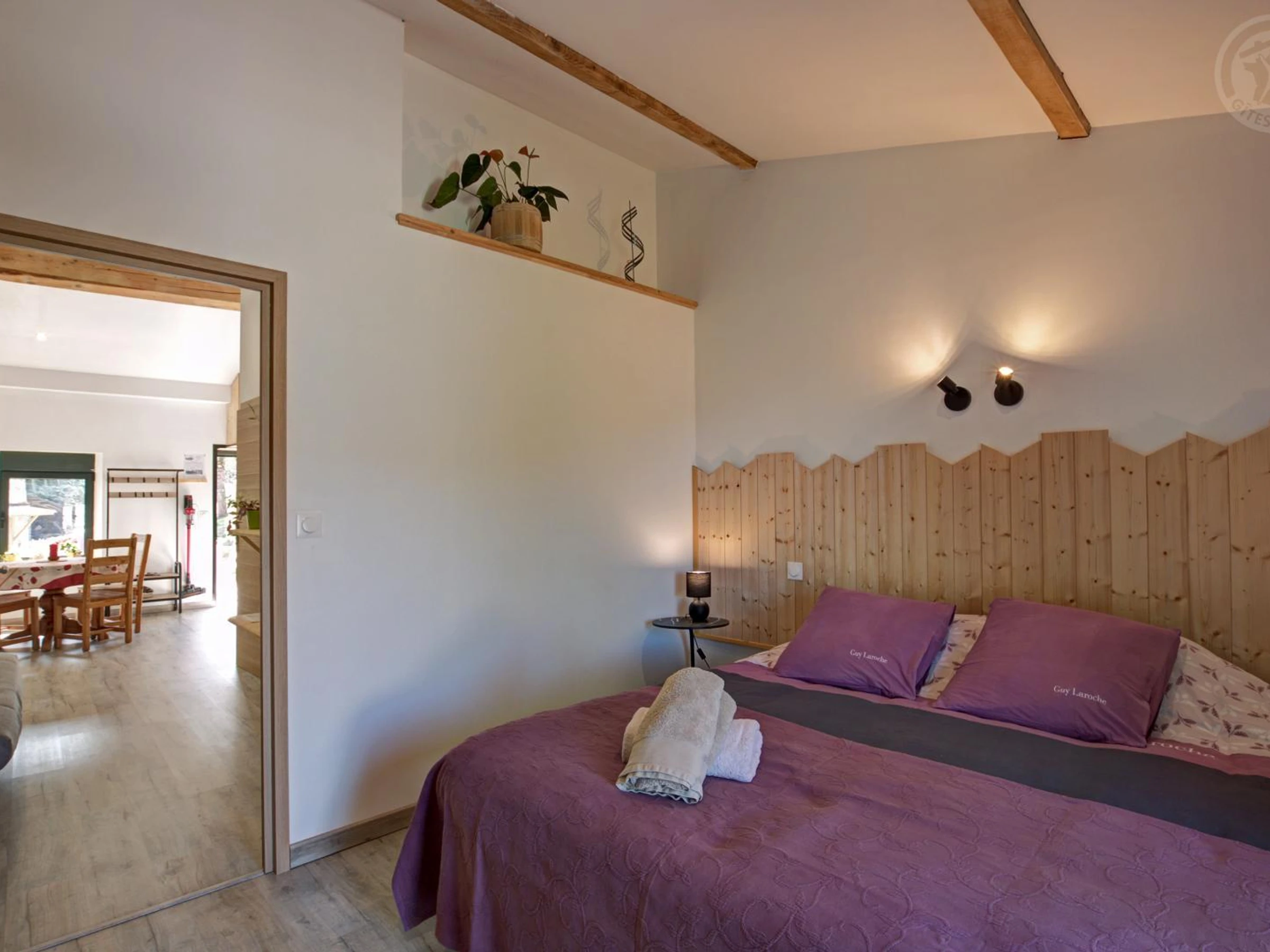 The 40m² "Coron" cottage features a living room with a kitchen open to the dining area and lounge with a sofa bed, a bedroom with two 90cm beds that can be combined into a 180cm bed, a bathroom, and a separate toilet. Between the Loire and Ardèche, in the heart of a peaceful country hamlet, you will be charmed by the calm of the surrounding nature. Discover this charming and authentic 18th-century stone farmhouse, steeped in history and carefully restored and decorated by the owners. "Le chant de l'eau" is the grouping of two adjoining cottages to offer you a cozy stay in a small group. You will find charm and a gentle atmosphere to relax in these places. The accommodation is located opposite the owners' house and overlooks the valley, offering a pleasant view from the terraces and the shared courtyard of the property. To make your stay even more enjoyable, utilities and heating are included, beds are made upon arrival, towels are provided, and the cleaning fee is included!