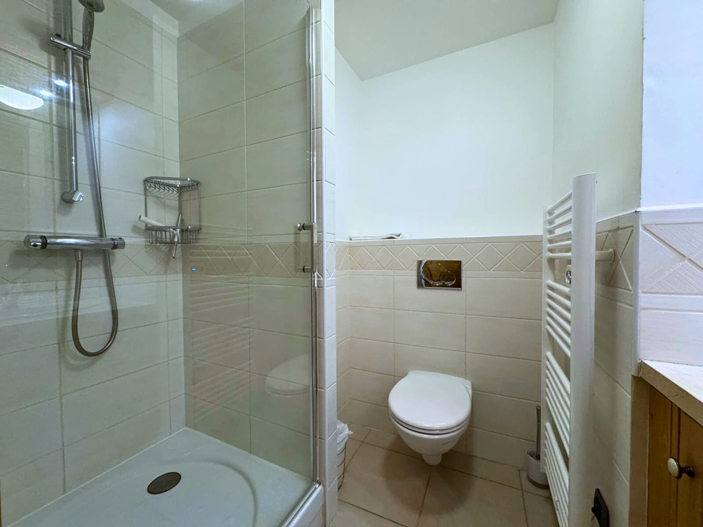 Bathroom 2: sink, shower, toilet, towel warmer