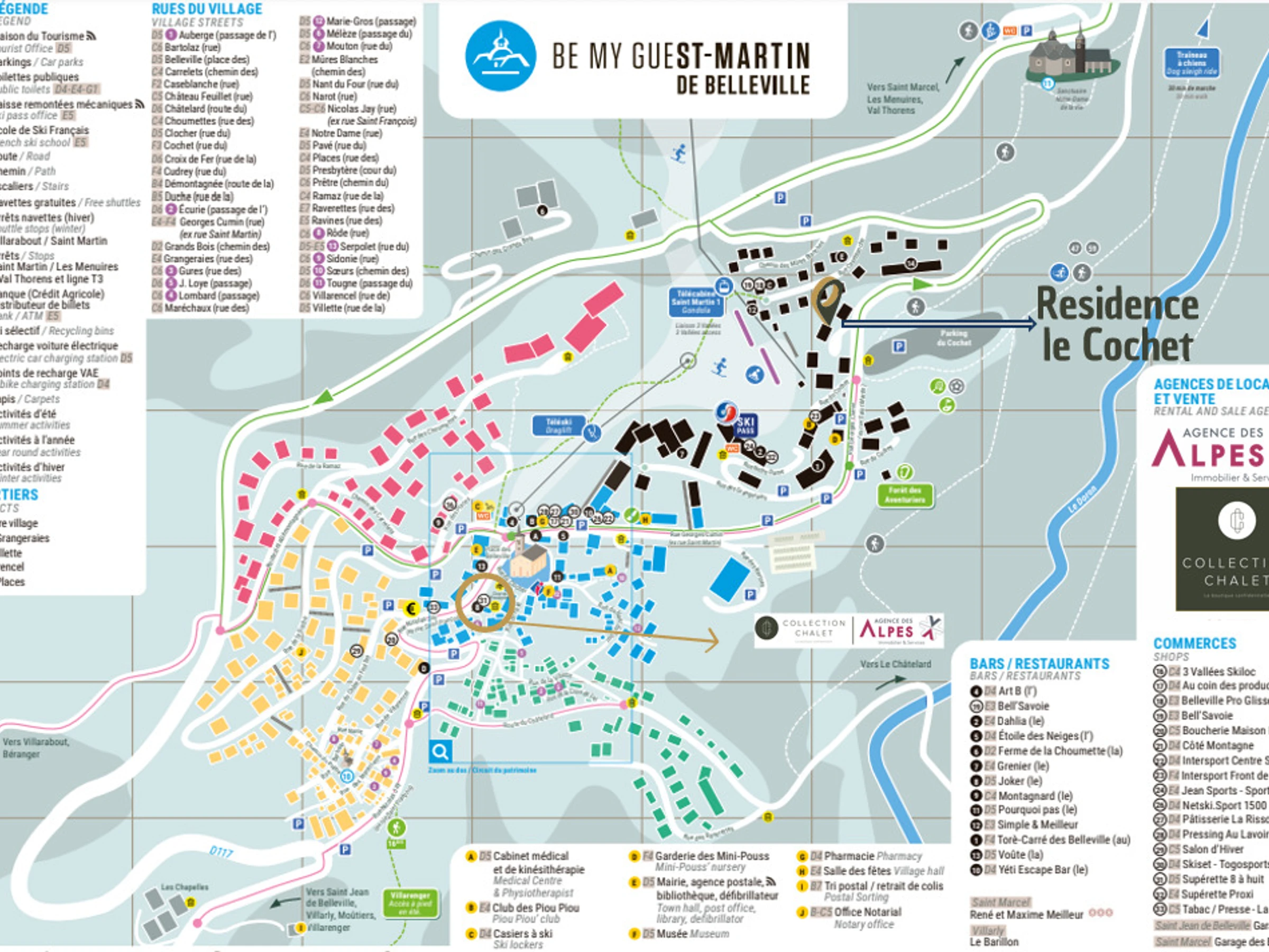 The Cochet residence is located in the Grangeraies district in the village resort of Saint Martin de Belleville. It is approximately 20 meters from the slopes where the "Saint Martin 1" gondola lift is located, taking you to the heart of the 3 Valleys ski area.