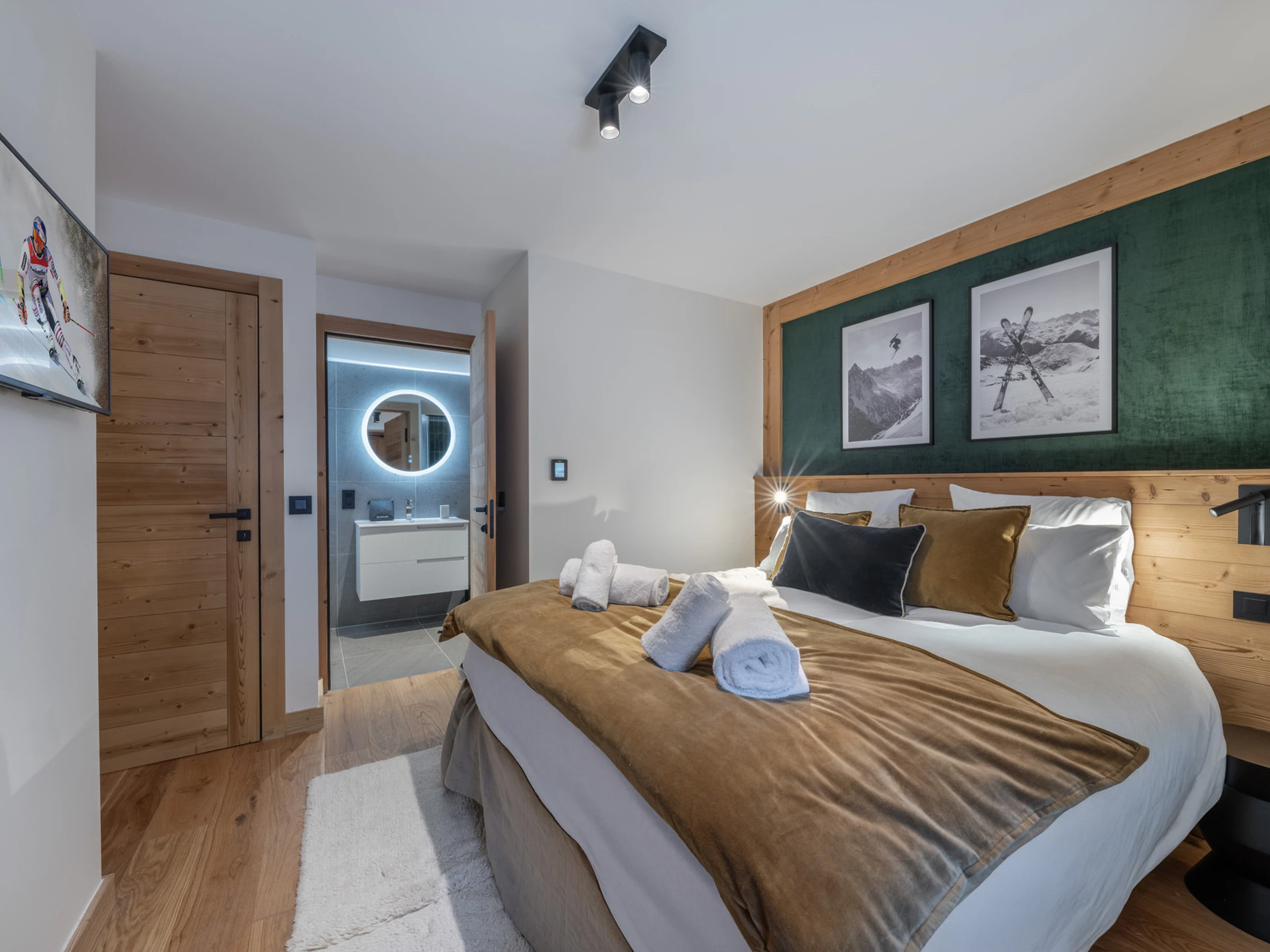 - 1 double bedroom (180x200) en suite with shower room, single hand basin, haidryer, towel dryer, toilet, wardrobe and TV