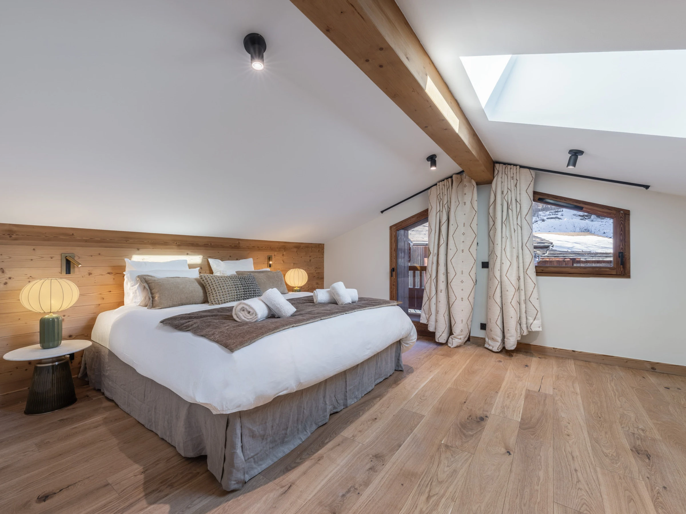 New triplex apartment, ideally located at the foot of the slopes. With a capacity of 9 people, it offers 4 bedrooms and is laid out as follows: