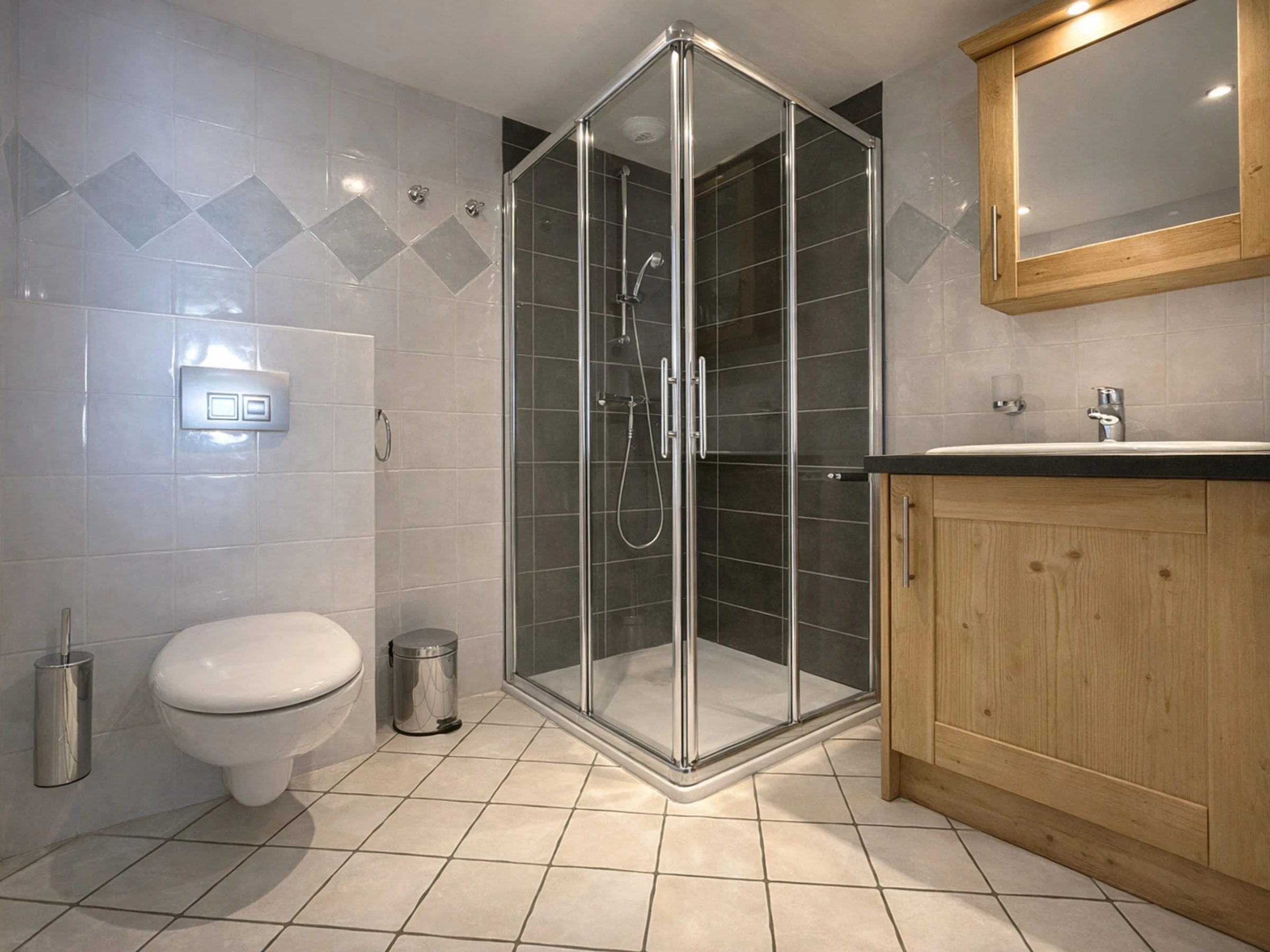 Bedroom 3: double bed (180x200cm), adjoining bathroom (sink, shower, heated towel rail, toilet)