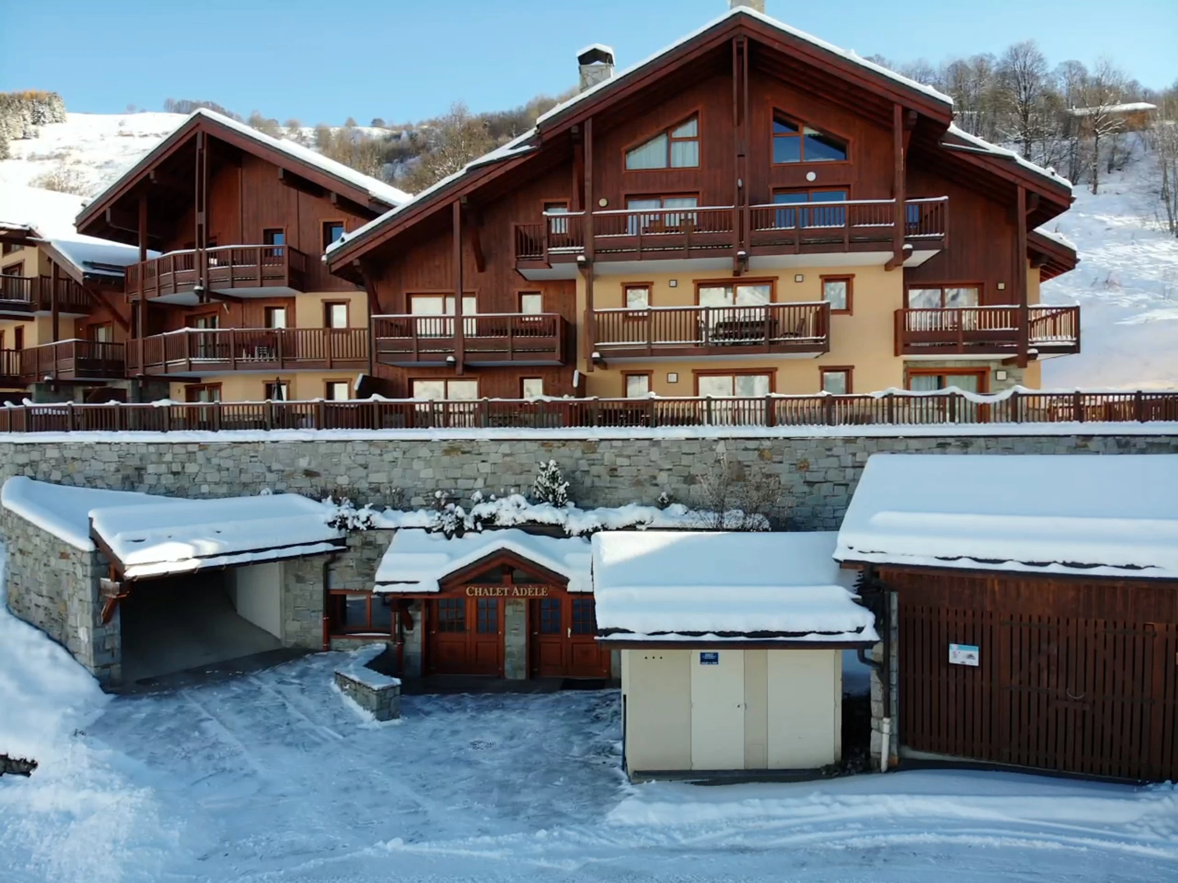 The Chalet Adèle is a chalet residence in stone and wood ski at the foot. It leads directly to the top of the ski lift in the village of St Martin de Belleville. It is also possible to go directly to the gondola "St Martin 1" which drives you in the heart of the 3 Valleys.