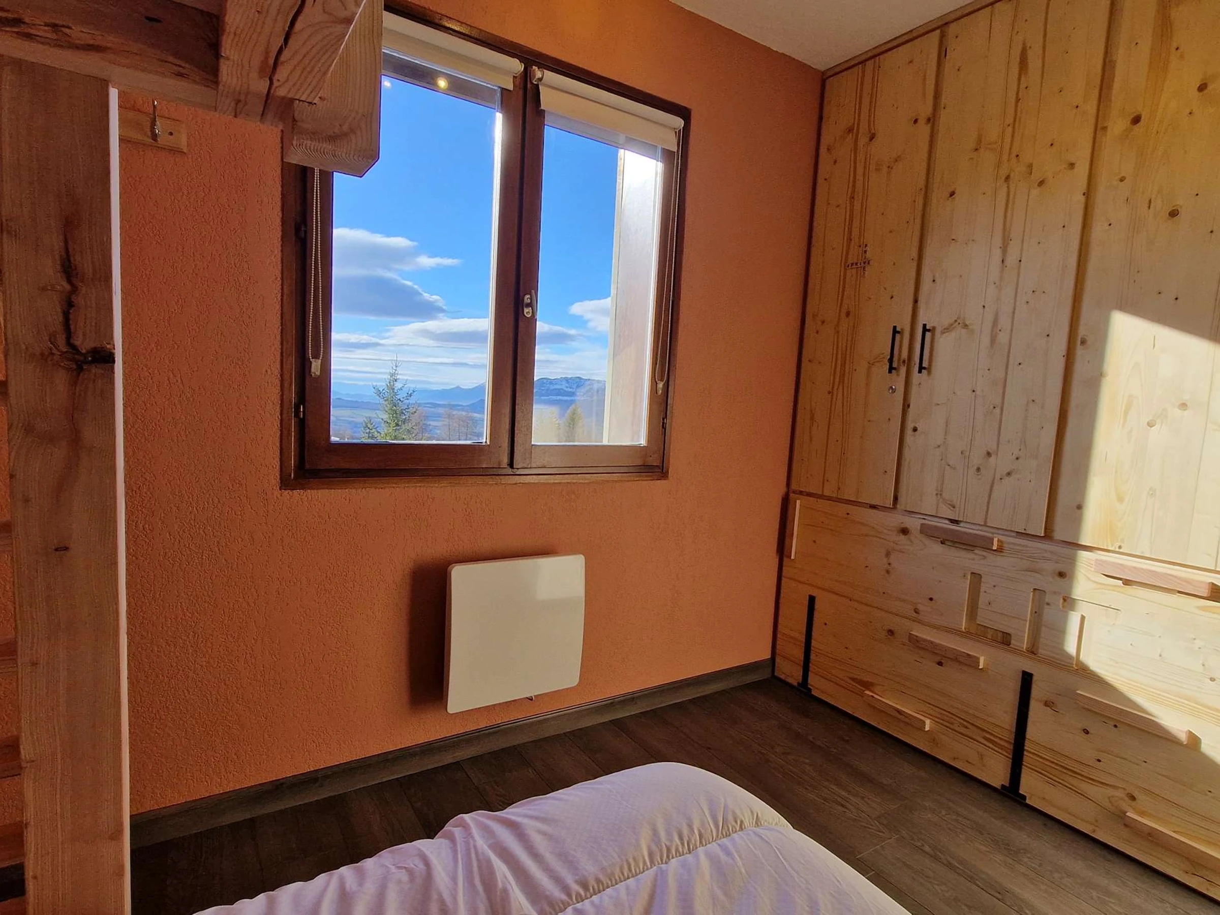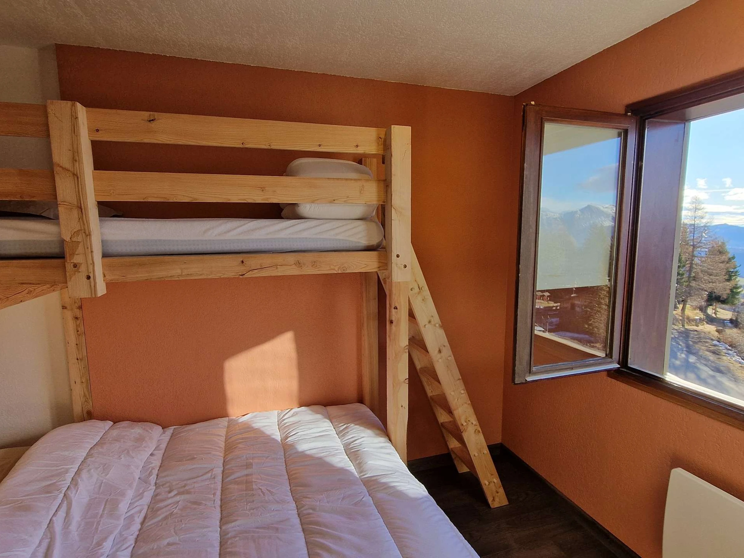 - One bedroom with a double bed, a bunk bed, and a pull-out bed - south-facing.
