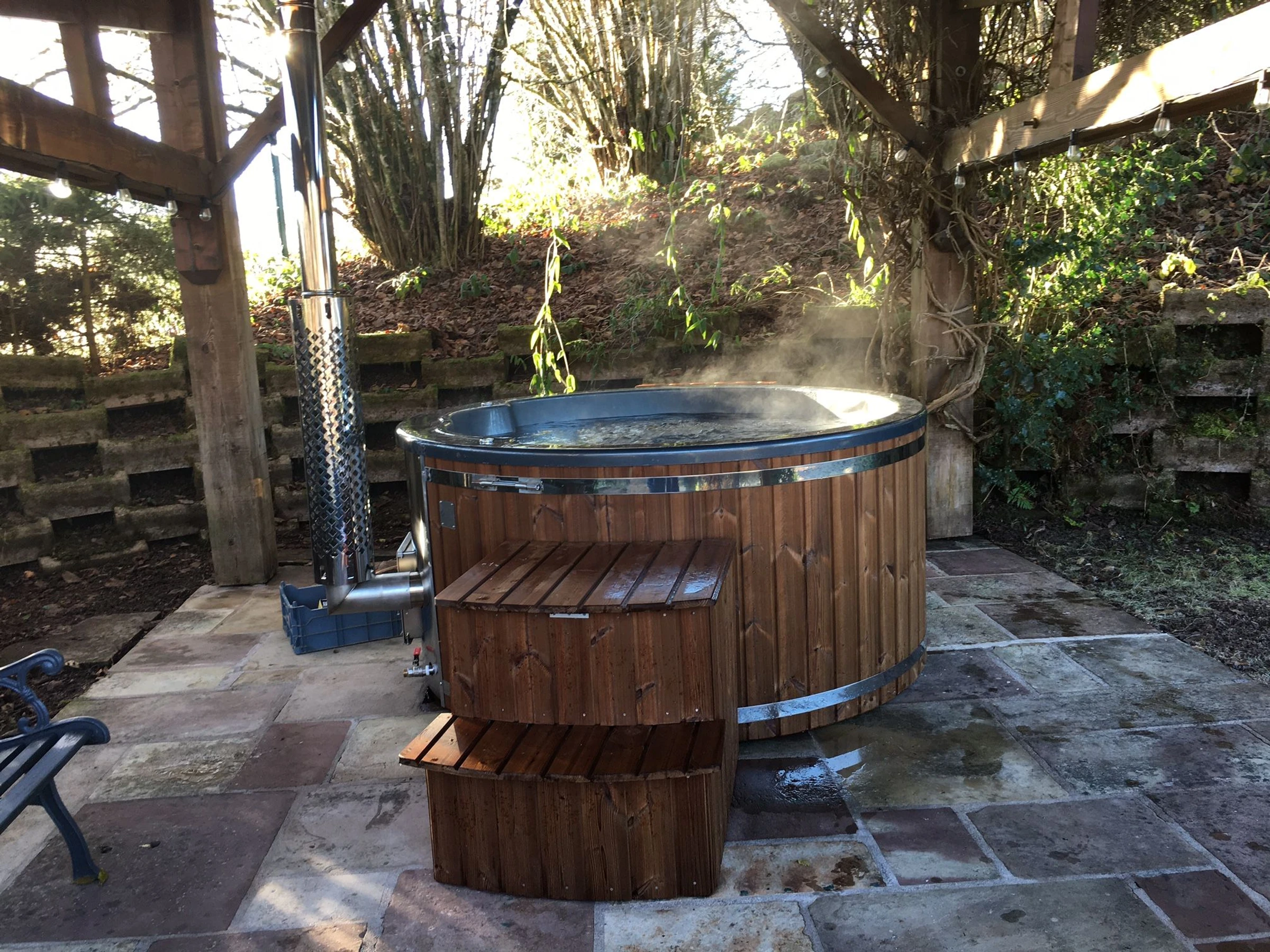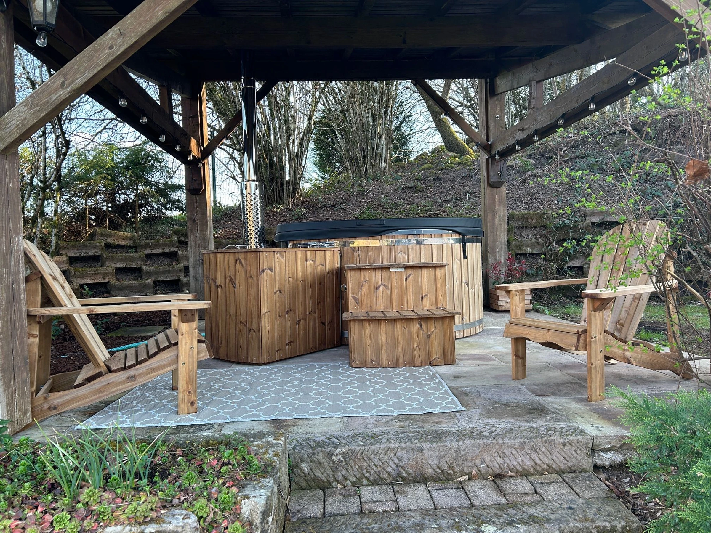 2 covered terraces, one with a Nordic bath; . Land. Ping pong. Pétanque.
