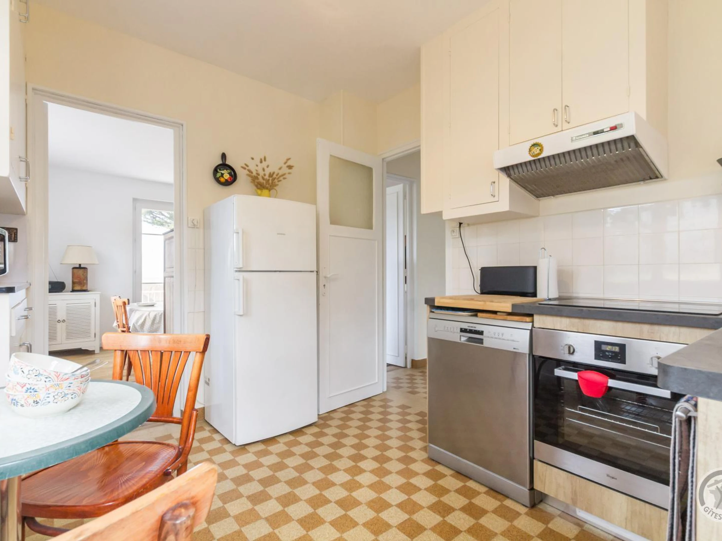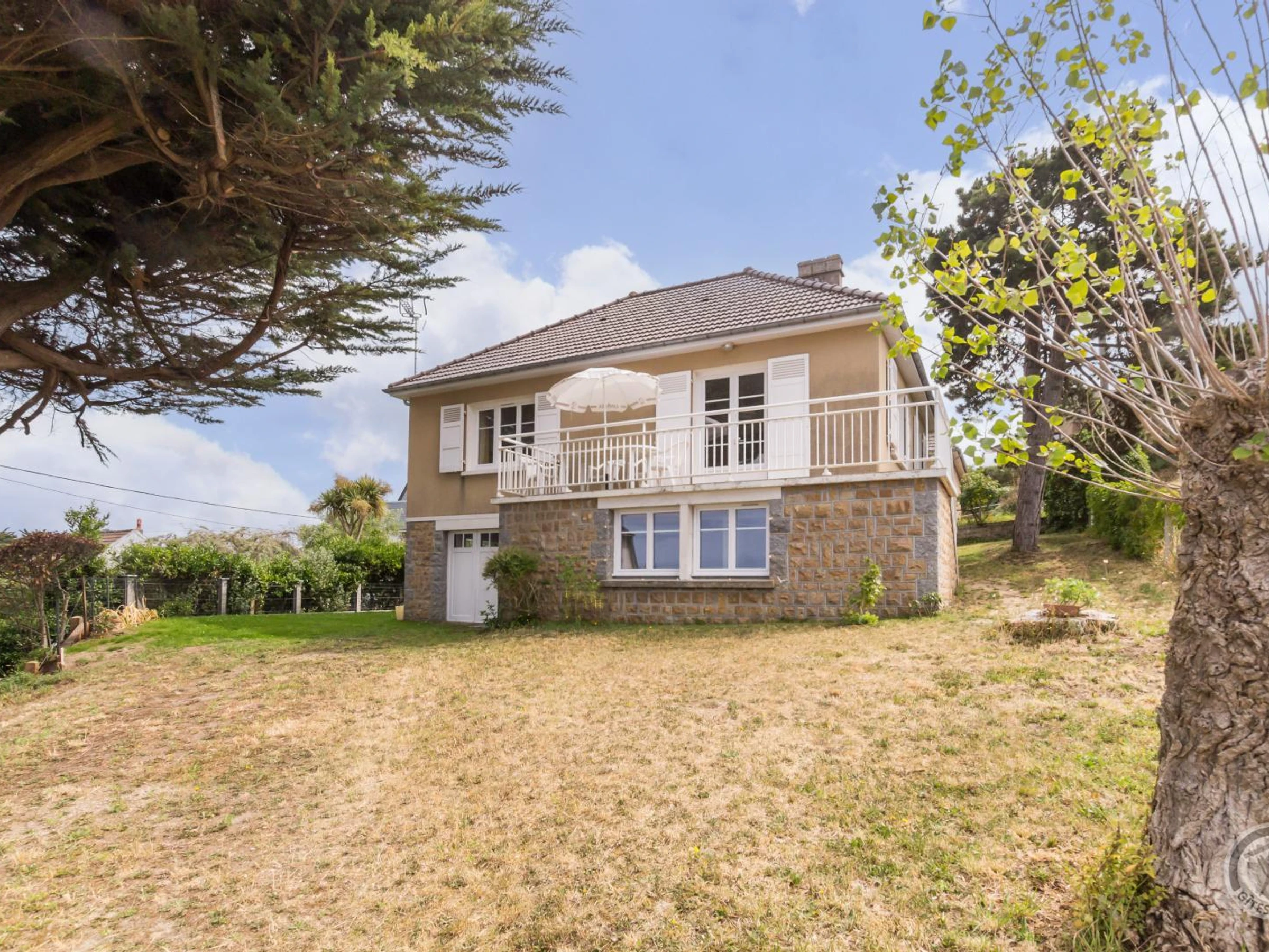 Detached, single-story house with several steps at the entrance. Kitchen (induction hob, oven, refrigerator with freezer compartment, dishwasher, microwave, espresso machine). Living room with lounge area (TV, DVD player, stereo system, books). Balcony/terrace with sea view. Shower room. Separate WC. Bedroom 1 (two single beds 90x190cm). Bedroom 2 (one double bed 140x190cm). Baby equipment available on request. Electric heating included. All utilities included. Bed linen for hire. Towels and household linen not provided. Cleaning service available for an extra charge. Private enclosed garden. Garden furniture. Sun loungers. Barbecue. In the basement, a large utility room with washing machine, gas stove, and separate WC. Parking. In the basement, a small studio with a double bed can be used as an extra bed. Just outside Granville, the charming seaside resort of St Pair sur Mer, with its beautiful villas, offers an ideal setting for family holidays by the sea. Jean-Yves, the owner, has renovated this lovely house with a basement, carefully preserving its 1960s character. You'll appreciate the parquet and cement tile floors, as well as the attractive custom-built kitchen cupboards! From this peaceful neighborhood, you can easily walk to the beach below. In summer, the basement makes it easy to return from the beach and enjoy time in the garden.