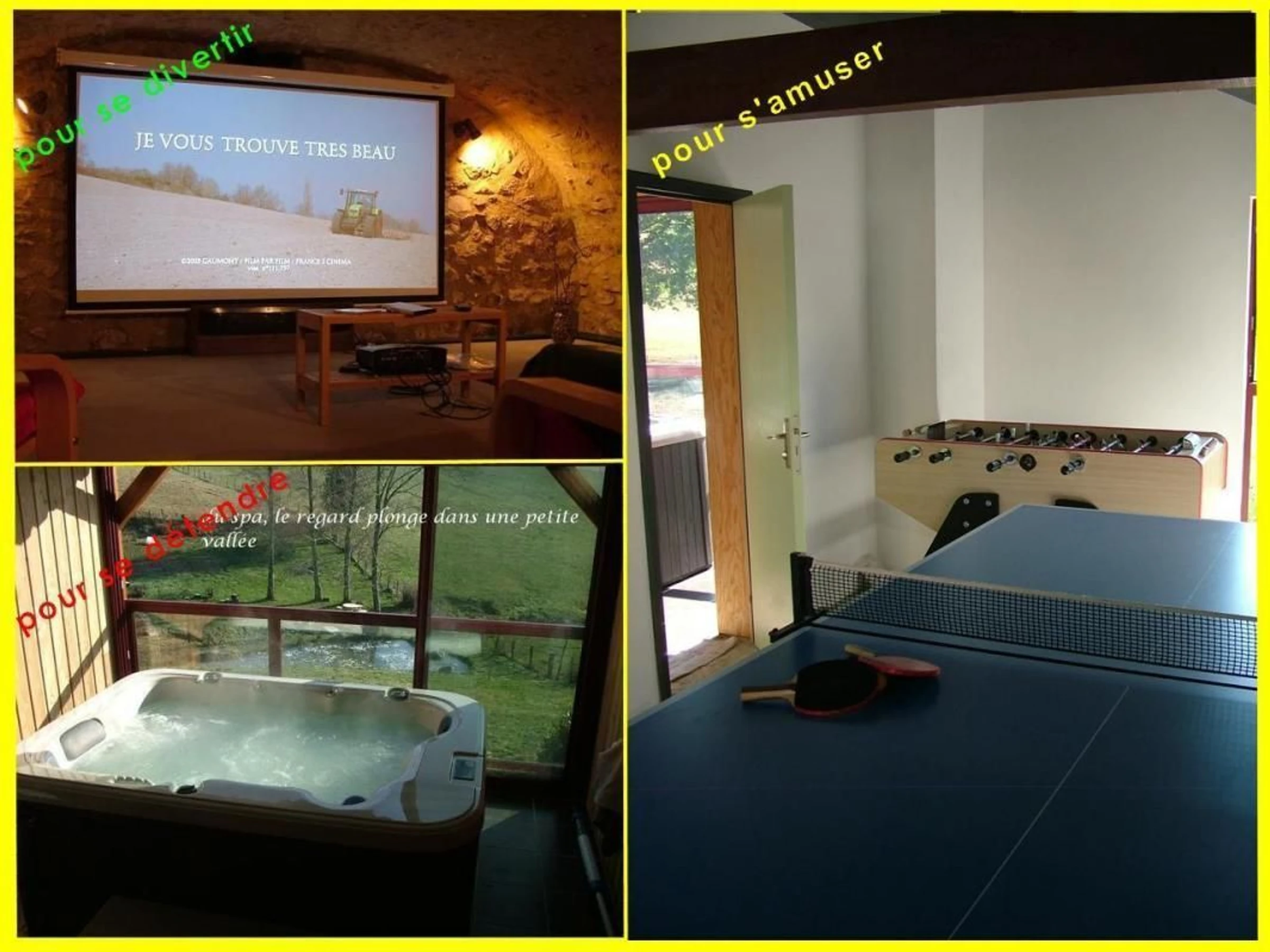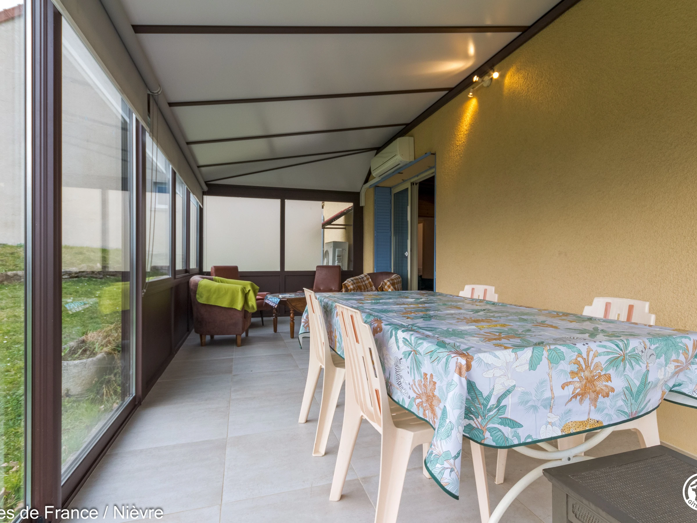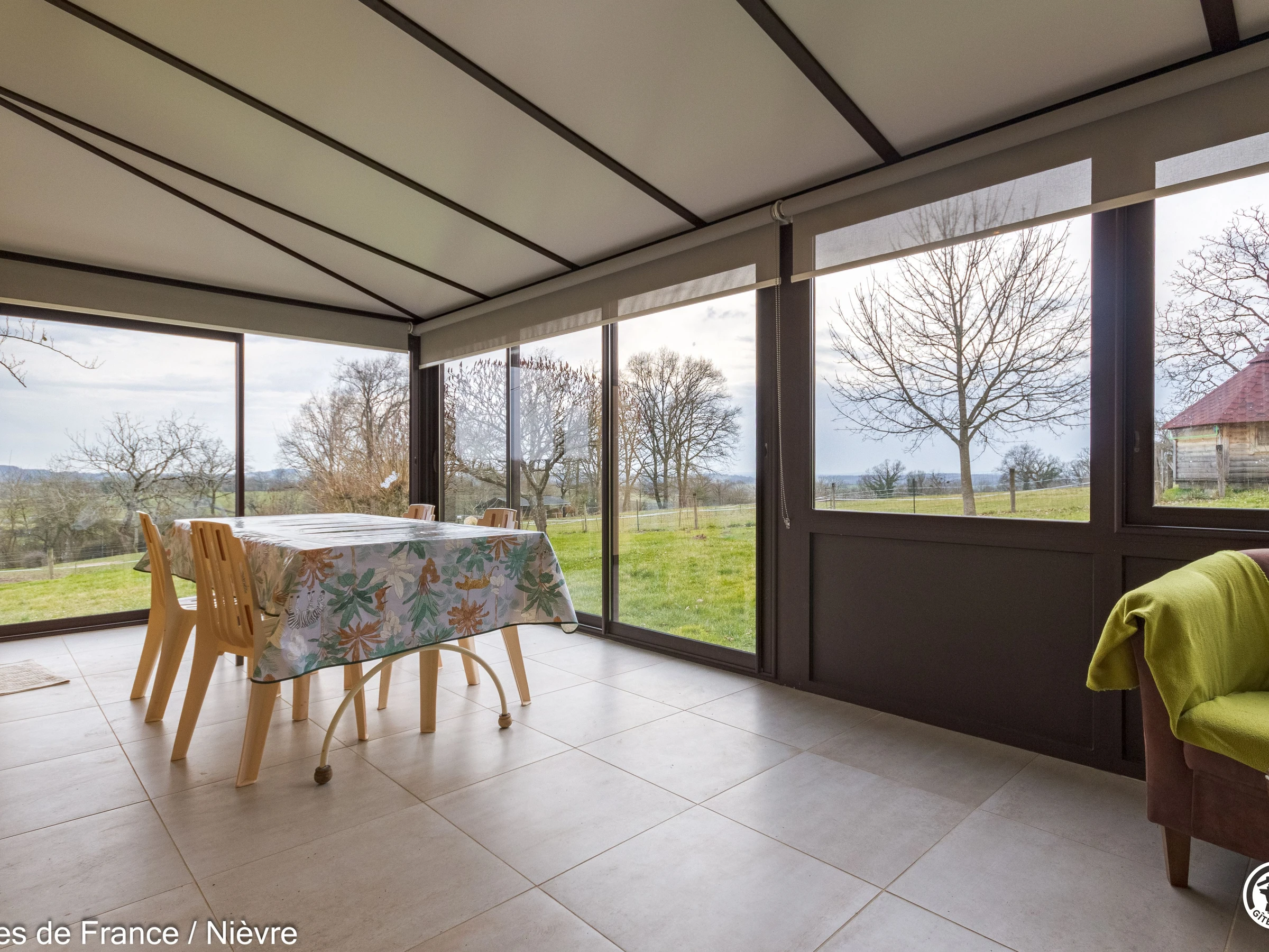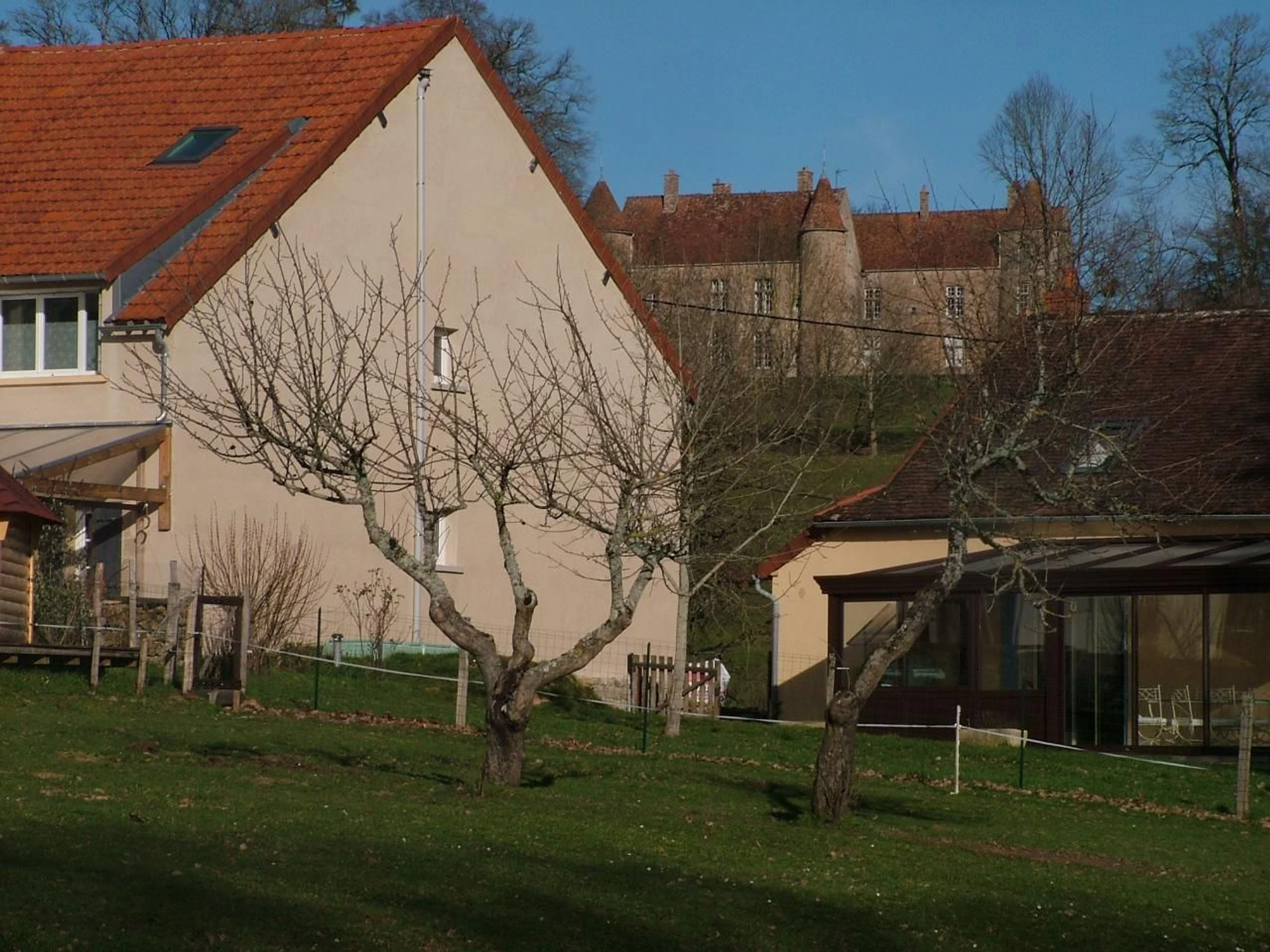 Aline is a detached gîte located at the foot of a medieval-looking castle. Ground floor: living room and kitchen, opening onto a 23m² air-conditioned veranda, shower room, toilet, 1 bedroom with 1 140cm bed. Upstairs: 1 bedroom with 1 160cm bed and 1 bedroom with 1 140cm bed and 1 90cm bed. Air conditioning upstairs. On site to relax: relaxation room with infrared sauna and spa, opening onto a panoramic view (spa wellness session + Japanese sauna): 2 people €20 per session. For entertainment: cinema room set up in the warm setting of an authentic vaulted cellar. For fun, games room with ping-pong and table football. For fun, pétanque court. And finally, conviviality par excellence with the Finnish grill. These amenities are common to our two cottages, so they are not exclusive (alternating or shared use). Oil-fired central heating. 800 m² enclosed and wooded garden (for your 4-legged friends, litter bags are required). Maximum 2 pets allowed. Free high-speed internet connection. End-of-stay cleaning available at an additional cost. Sheet rental available. On site, the fountain path will lead you to the springs, a shared shaded area, lulled by the lapping of the stream and the croaking of frogs in the lake. 55 km from Nevers and Autun, Cities of Art and History, between Bazois and Morvan. Discover the Bazois with its Canal du Nivernais and its greenway cycle route along the towpath, the Morvan Natural Park, spearhead of ecotourism, with its lakes and forests that will allow you to practice diverse sports and outdoor activities. History buffs can visit the Mont-Beuvray site, which houses an archaeological center dedicated to the Celtic world. Bikers are welcome.
