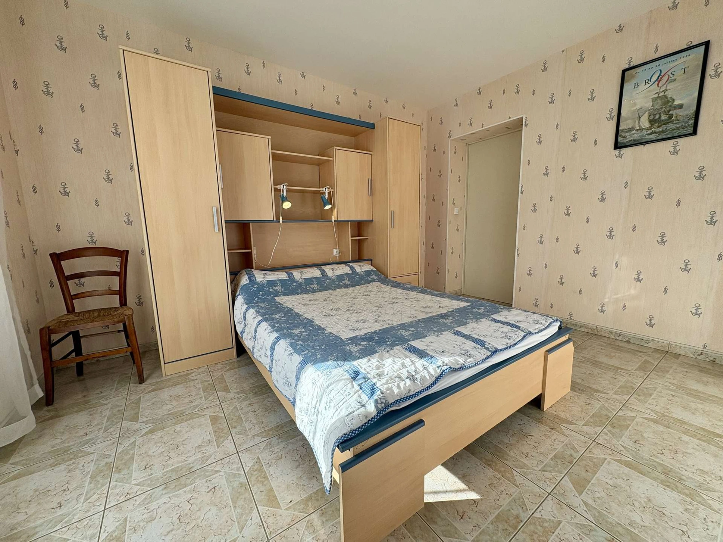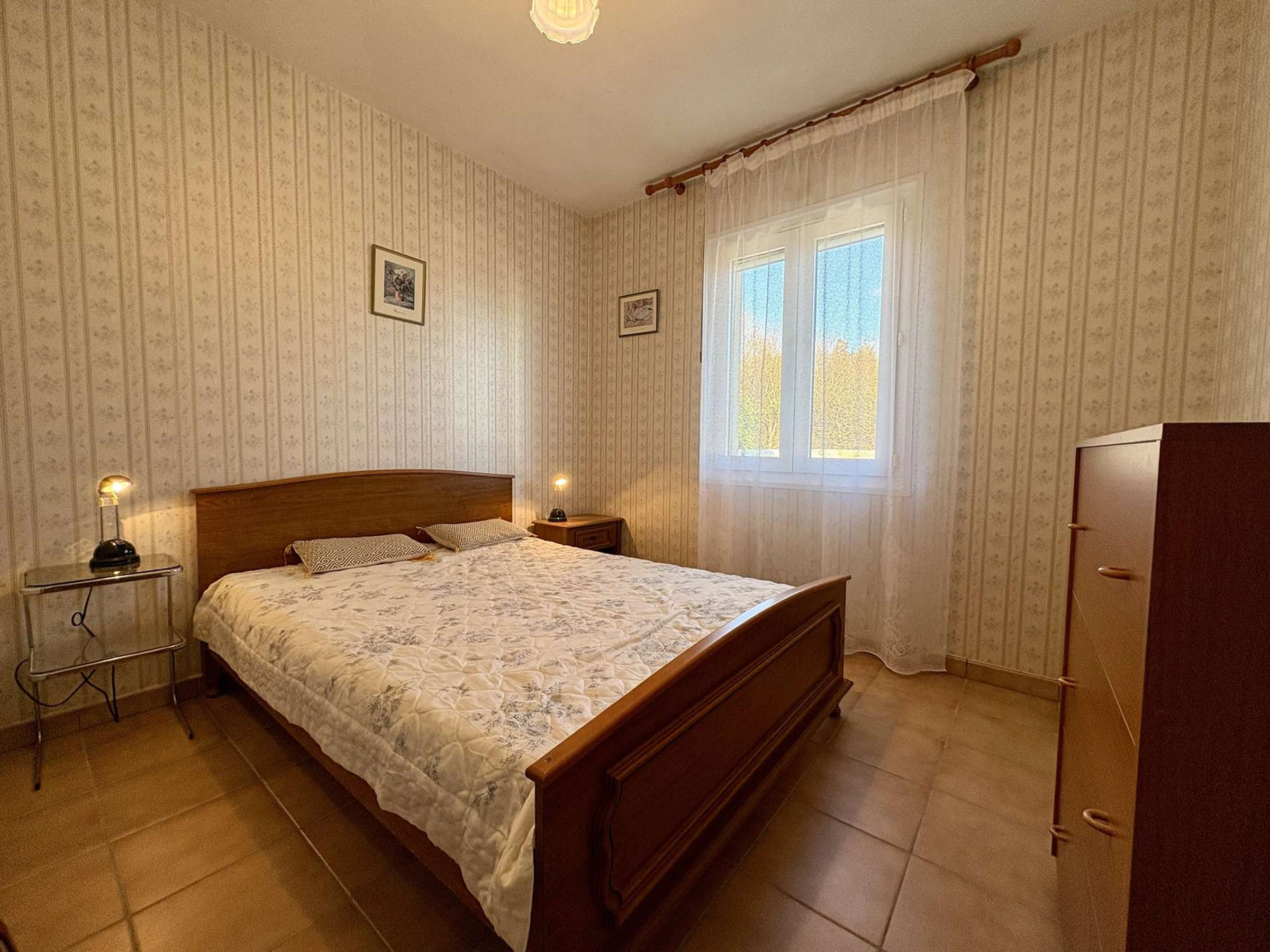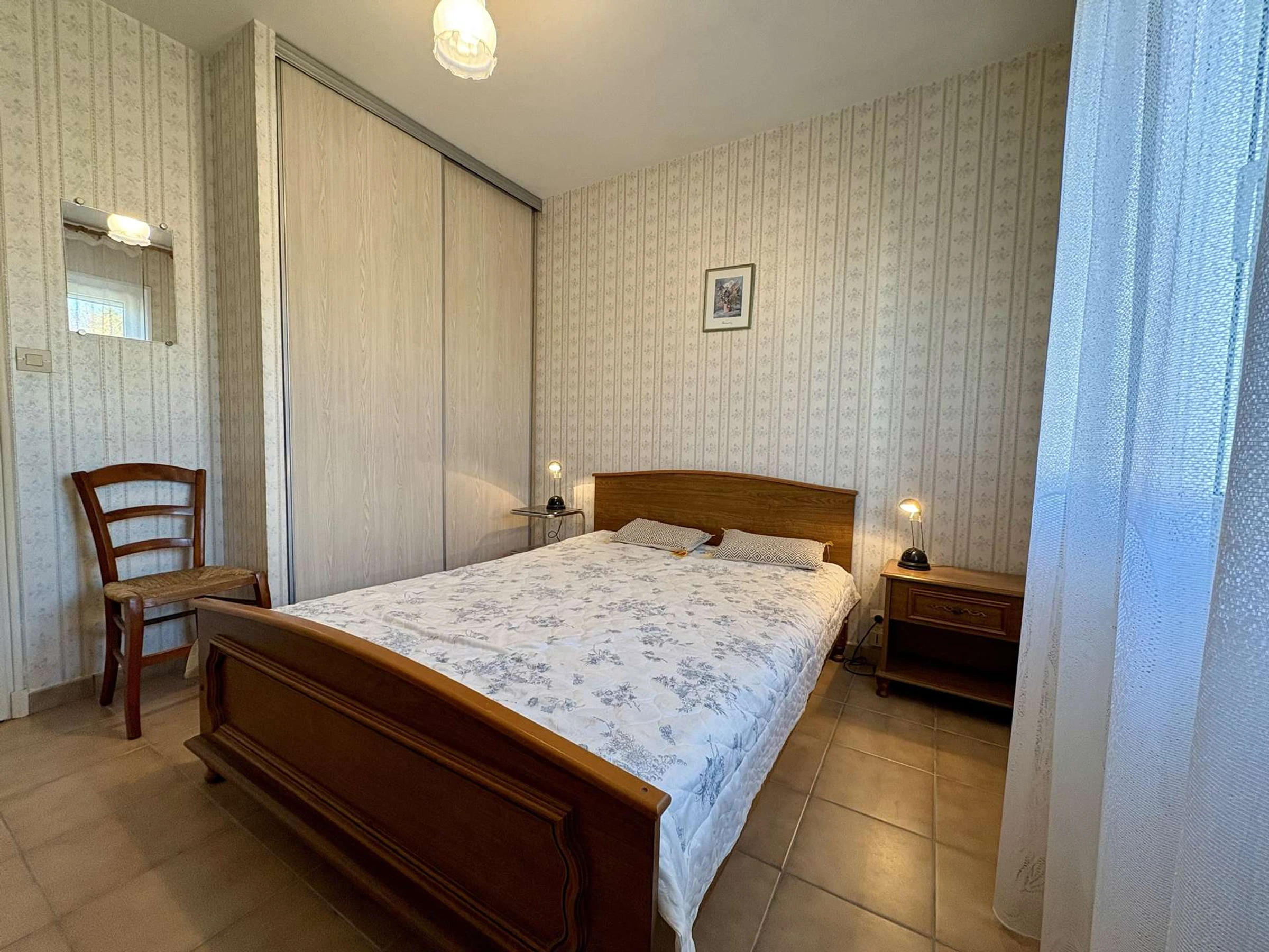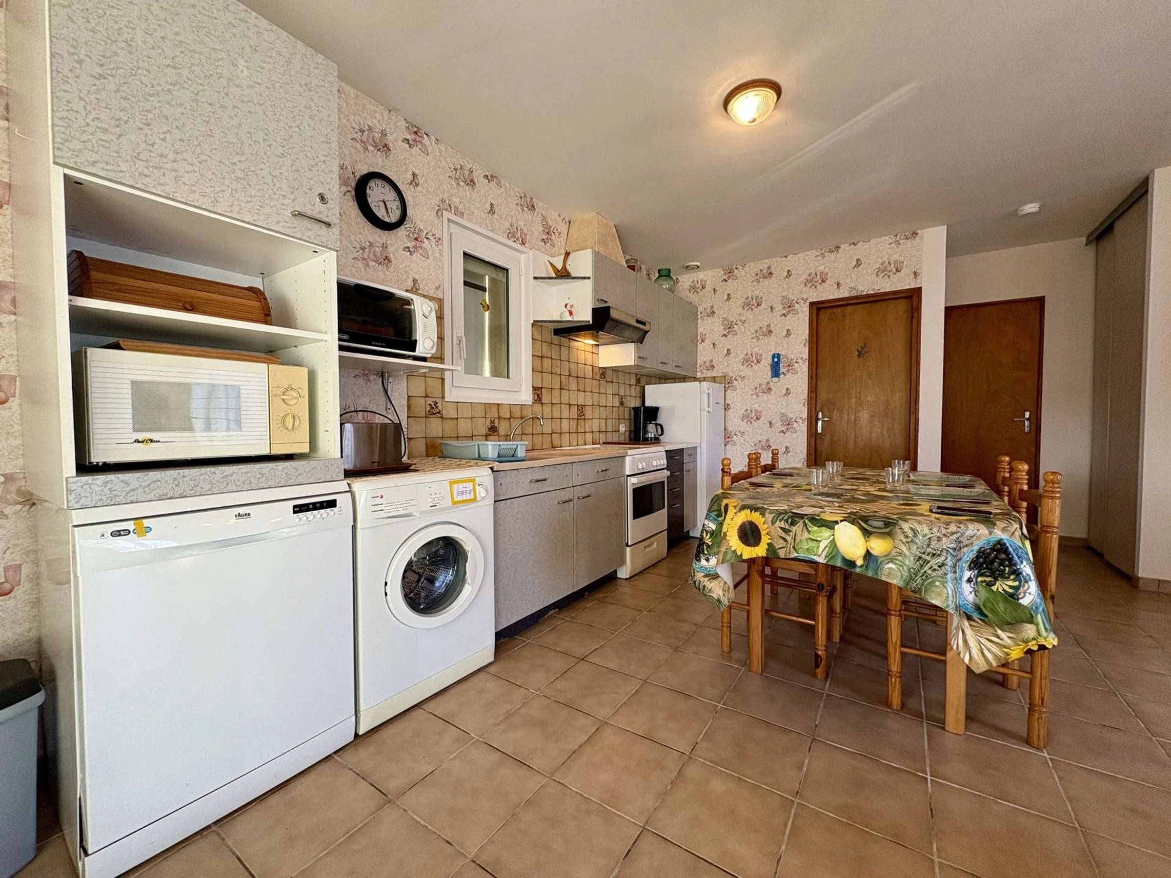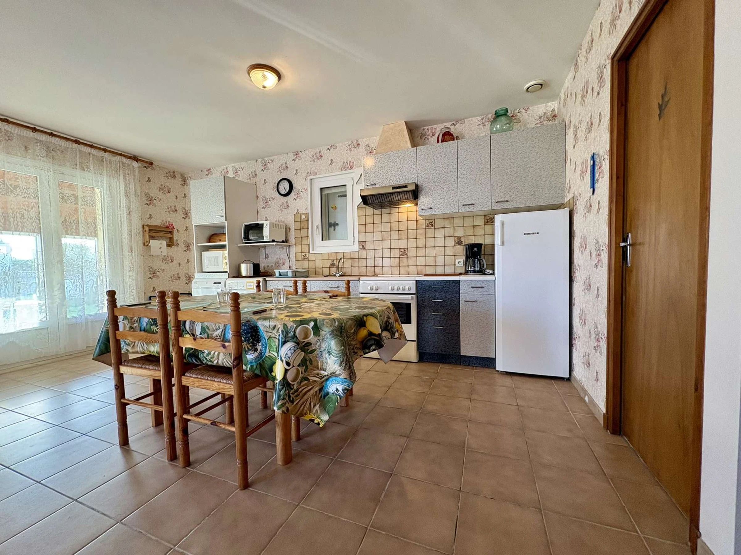Elle se compose d'une pièce de vie avec cuisine ouverte et équipé (lave-vaisselle, réfrigérateur, plaques de cuisson à gaz, hotte, micro-ondes, mini-four, bouilloire, lave-linge, grille-pain),séjour avec BZ 2 couchage, une salle d'eau, une première chambre avec un lit double (140) et rangements, d'une seconde chambre avec un lit double (140) et un lit simple dépliant (90) et WC séparés. En extérieur véranda avec un petit jardin. Parking sur la propriété.