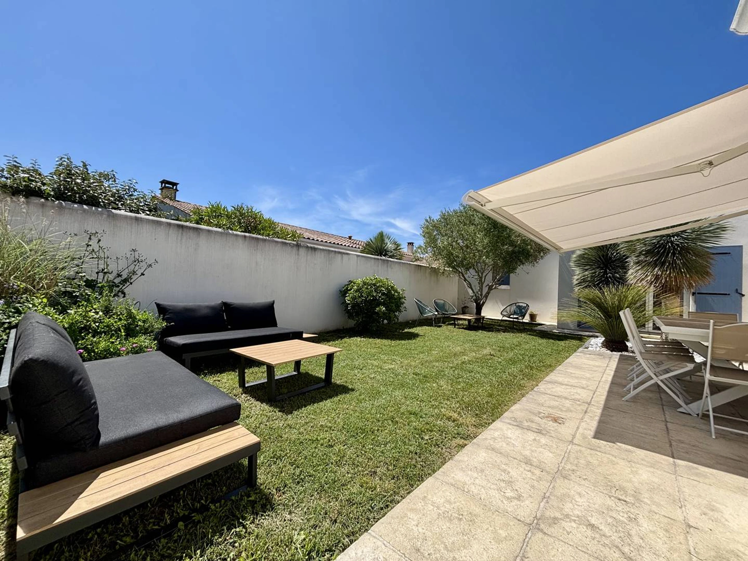 Les avantages de cette location à la mer : Belle maison avec une décoration moderne, WIFI gratuit, terrasse agréable avec tonnelle, ménage inclus.