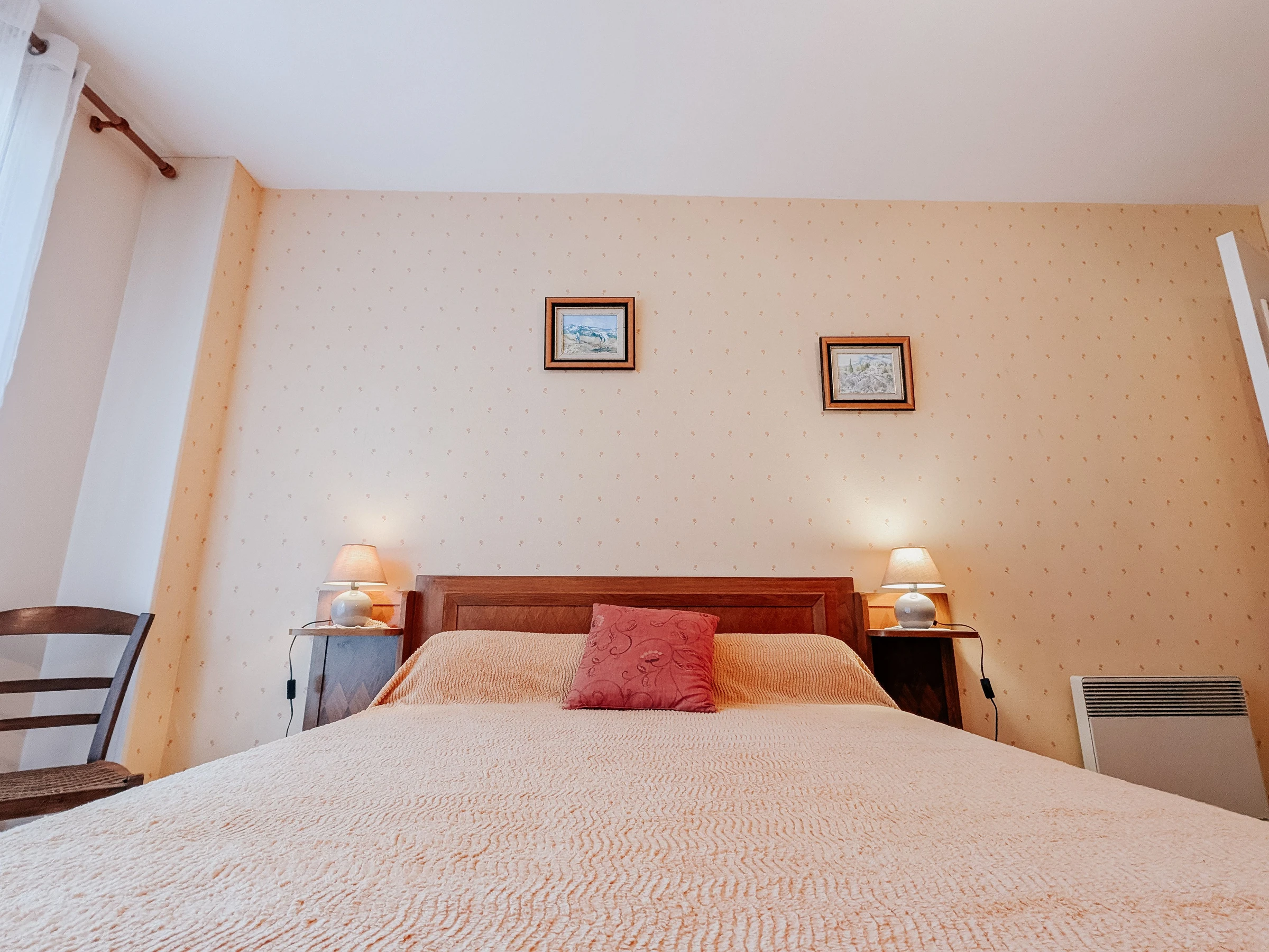 On the ground floor, you will find a kitchen open to the dining room and living room (3-burner gas stove and 1 electric stove), a bedroom with a double bed, a bathroom, and a separate toilet.