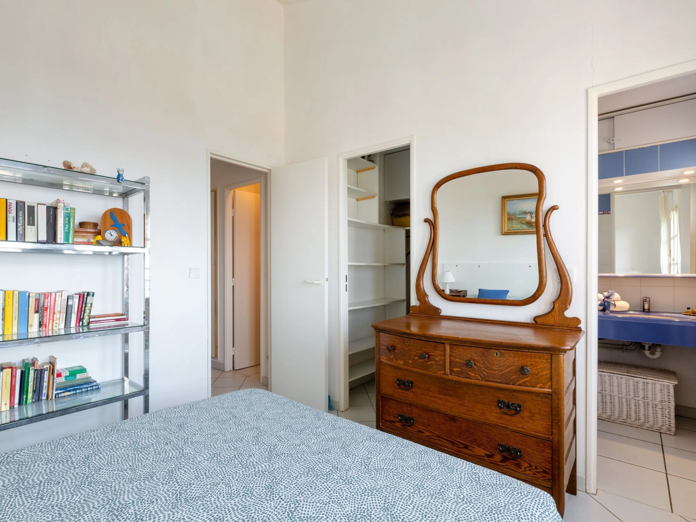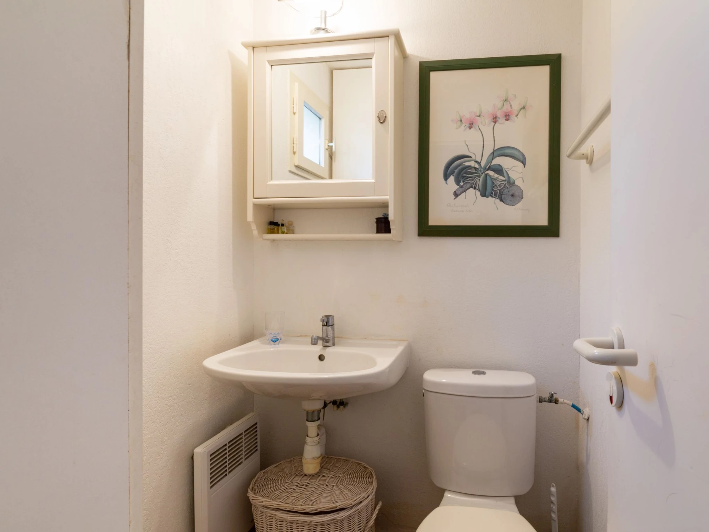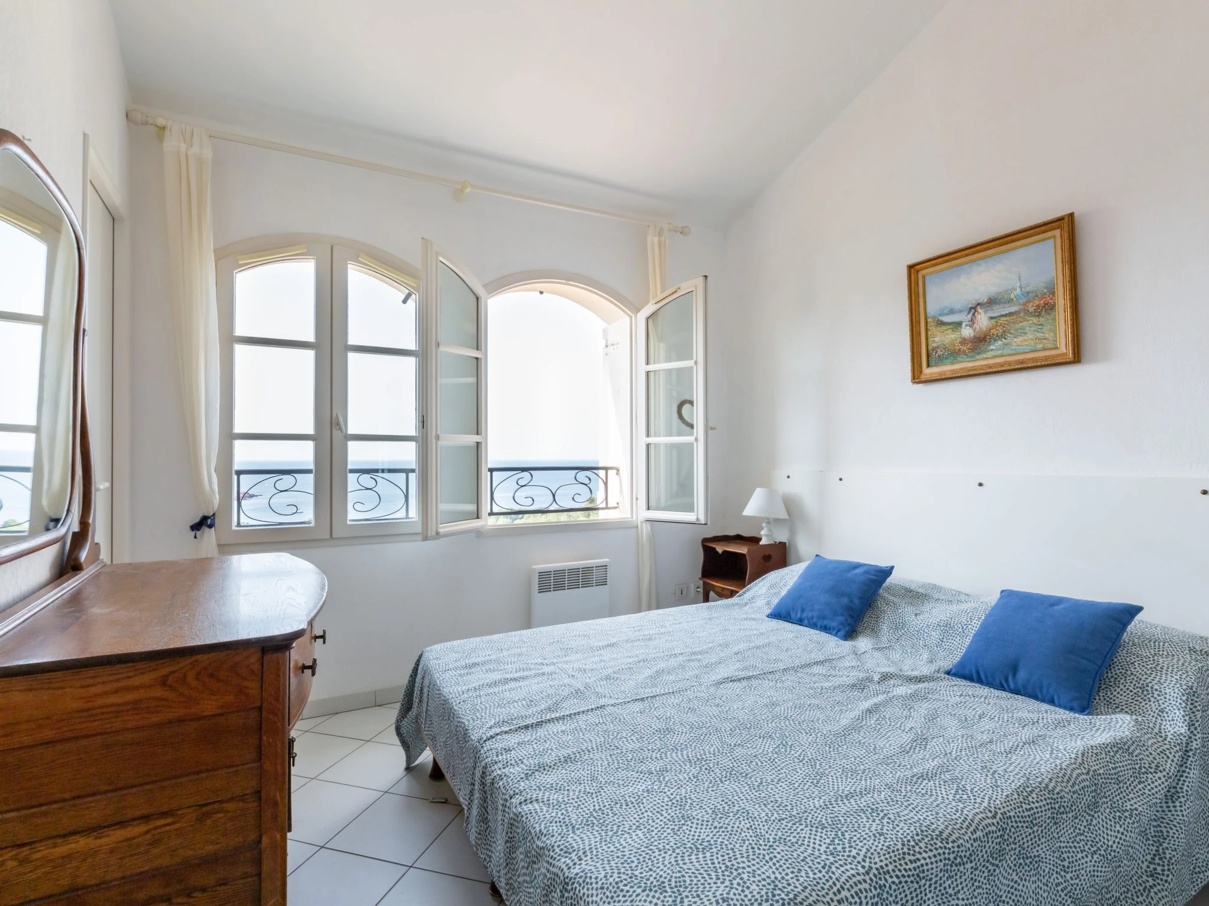 "Le Hameau (Mini Villa 37)", 3-room terraced house 50 m2. Beautiful and cosy furnishings: living/dining room with 1 sofabed (140 cm, length 190 cm), TV (flat screen). Exit to the terrace, to the patio. Open kitchen (4 hot plates, oven, dishwasher, toaster, kettle, microwave, freezer, electric coffee machine). Sep. WC. Upper floor: 1 room with 2 beds (90 cm, length 190 cm). 1 room with 1 french bed (160 cm, length 200 cm), bathroom. Shower/WC. Electric heating. Terrace 15 m2, small patio 20 m2. Terrace furniture, electric barbecue, deck chairs (4). Very beautiful view of the sea. Facilities: washing machine. Internet (WiFi, extra). Reserved parking at the house. Please note: suitable for families. Non-smokers only. Smoke alarm. Offer by a private individual according to Art. 155, IV of CGI.