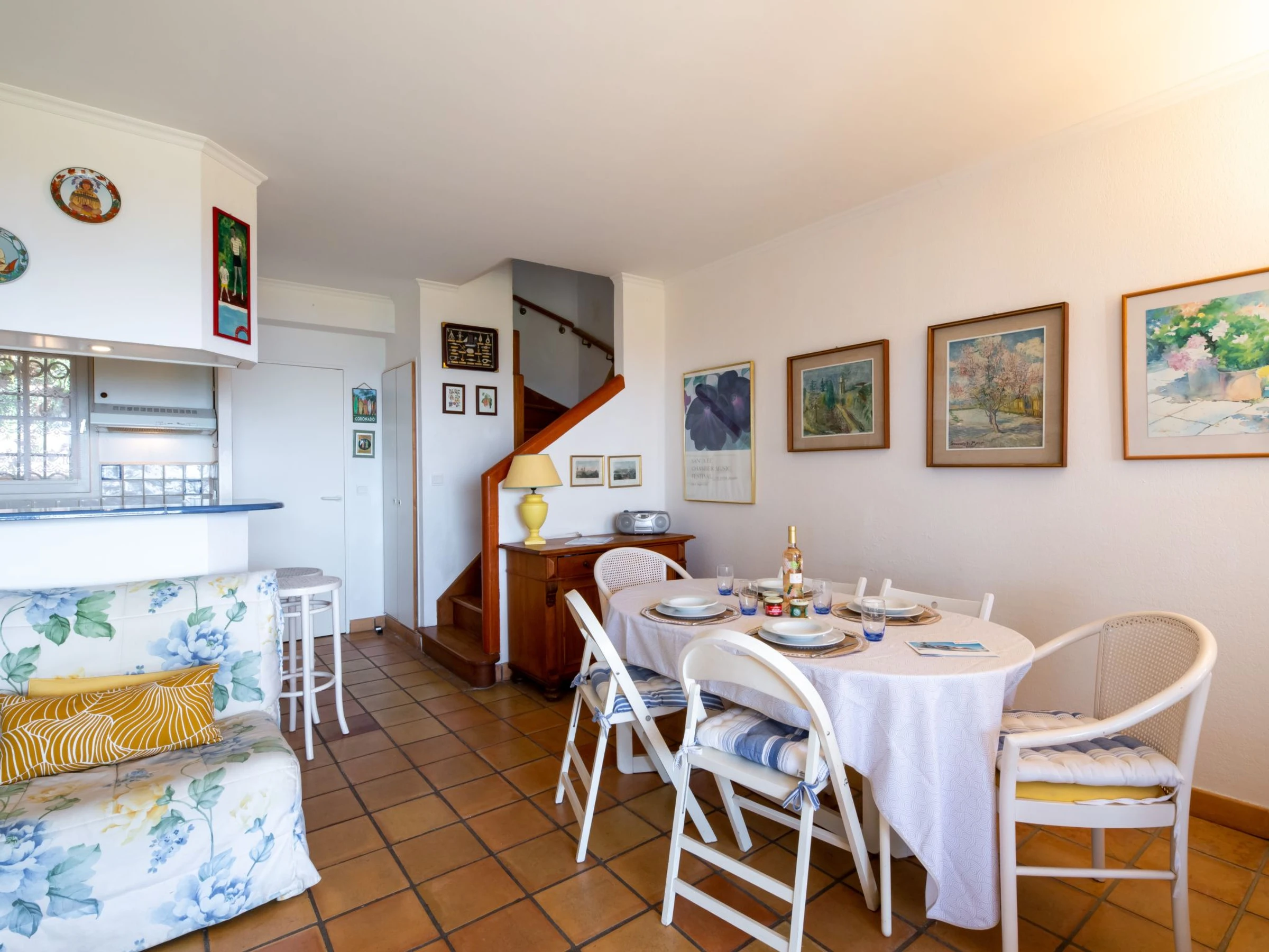 Large resort "Village Cap Estérel - Le Hameau". On the outskirts, 2 km from the centre of Agay, on a slope, in the residential district, 1.2 km from the sea, 1.2 km from the beach, road to cross, on the golf course, in a pedestrian area. For shared use: park 210 ha, 5 swimming pools (seasonal availability: [hidden] - [hidden] Children's pool, tennis (extra), basketball, boccia, children's playground (slide, swing). In the complex: spa area (extra), shopping facilities, laundry (extra). Shop, grocery 500 m, supermarket 6 km, restaurant, bakery 500 m, railway station "Saint-Raphaël-Valescure TGV" 9 km, sandy beach "Tiki Plage" 1.2 km. Marina 1 km, golf course (9 hole), tennis 500 m. Nearby attractions: Anthéor 8 km, Saint-Raphaël 9 km, Fréjus 13 km, Cannes 33 km, Saint-Tropez 50 km, Nice 76 km. Well-known lakes can easily be reached: Lac Saint-Cassien. Hiking paths: Massif de l'Estérel. Please note: car-free holiday complex, no lift. Entertainment in the season. Suitable for families, childminding in the season (extra). Guarded residence. Additional accommodations can be booked.