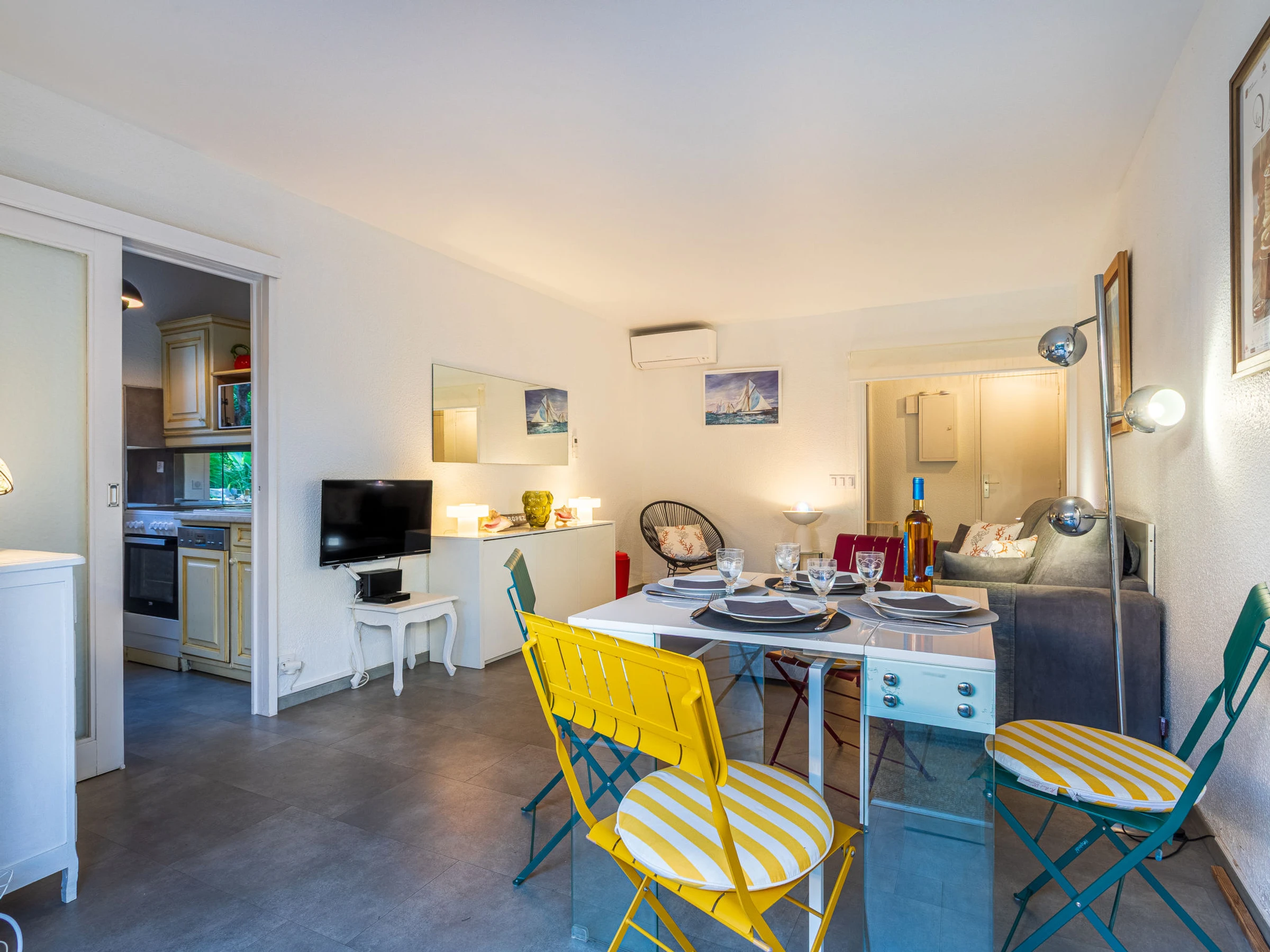 "Le Bailli 3", 2-room apartment 43 m2, on the ground floor. Cosy furnishings: living/dining room with 1 double sofabed (140 cm, length 190 cm), TV (flat screen). Exit to the terrace. 1 room with 1 french bed (160 cm, length 200 cm), shower. Exit to the terrace. Kitchen (oven, dishwasher, 4 ceramic glass hob hotplates, toaster, kettle, freezer, electric coffee machine, Capsules for coffee machine (Nespresso) extra). Sep. WC. Electric heating, air-conditioning. Large terrace 100 m2, south facing position terrace 20 m2, east facing position. Terrace furniture. Facilities: washing machine, iron. Internet (WiFi, free). Garage space n 173, height 190 cm, width 220 cm. Please note: non-smokers only. 1 small pet/ dog allowed. Smoke alarm. Offer by a private individual according to Art. 155, IV of CGI. [hidden]