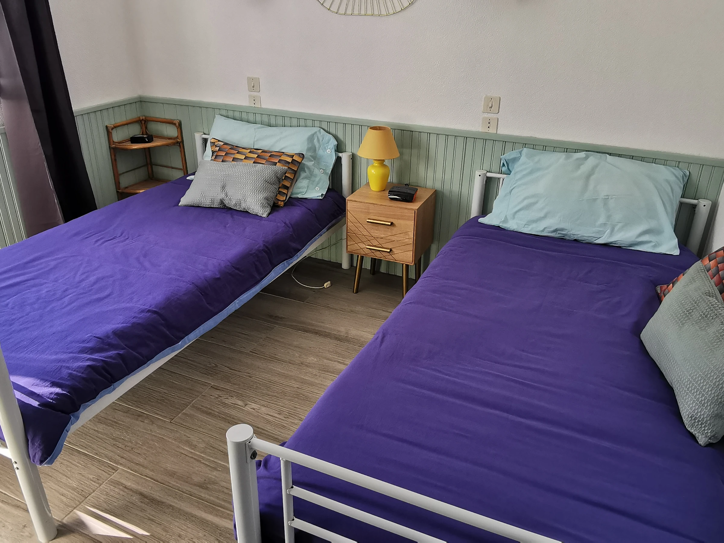 A bedroom with two 90cm beds.