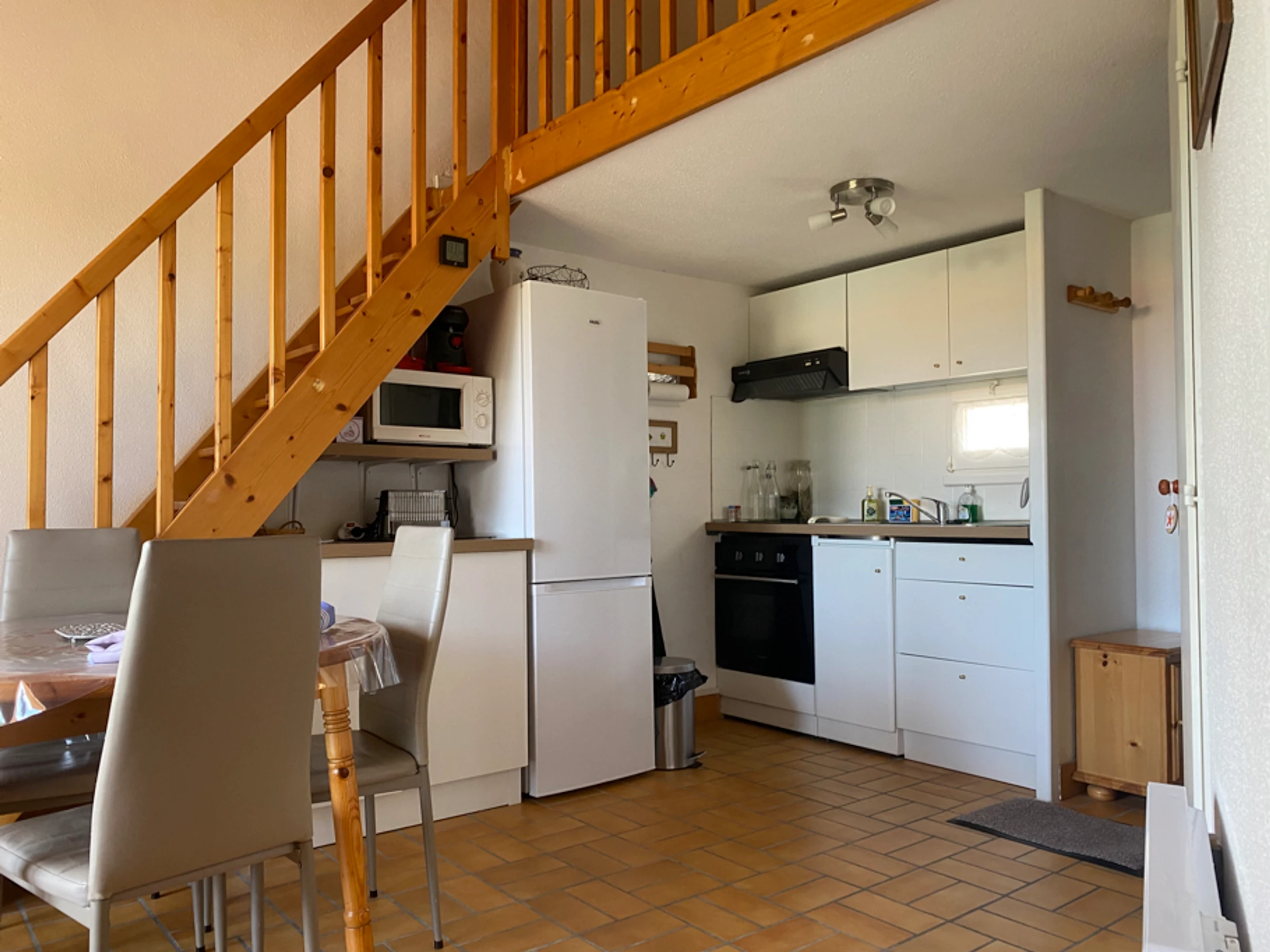 In the heart of a private and secure residence, the Résidence de la Brunelle, this semi-detached house with a private, enclosed garden offers an ideal setting for a stay with family or friends. Upon entering, you enter a bright and functional living space comprising: