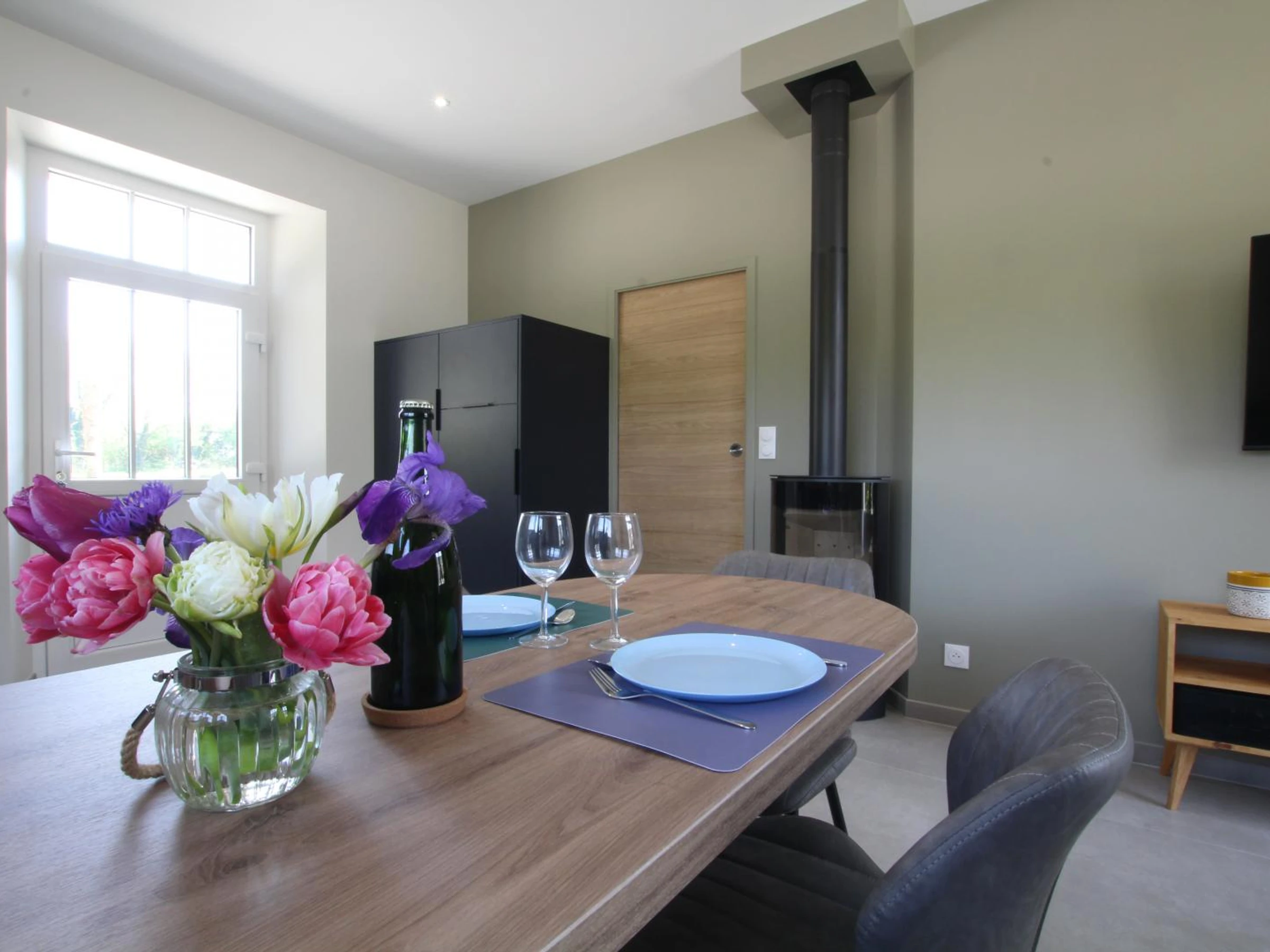 Detached, single-story house. Close to the owner's residence. Living room with wood-burning stove (TV, internet). Fully equipped kitchenette (induction hob, oven, microwave, dishwasher, freezer compartment, espresso machine, filter coffee maker). Bedroom (1 king-size bed). Shower room with toilet (walk-in shower, hairdryer). Washing machine. Electric heating. Firewood provided on request. All utilities included except electric vehicle charging. Unfenced grounds. Gravel terrace in front of the house entrance. Garden furniture. Sun loungers. Barbecue. Parking. Bed linen and towels provided. Optional cleaning service. You will be staying on this magnificent Cotentin farm (a working dairy farm). The local white stone gives these buildings a certain charm. The location is peaceful and perfectly situated near the beaches and the famous D-Day landing sites. The stream below and the cows grazing in the surrounding meadows also contribute to this idyllic rural setting. Two other cottages, one for 4 people and one for 2, are available on the property.