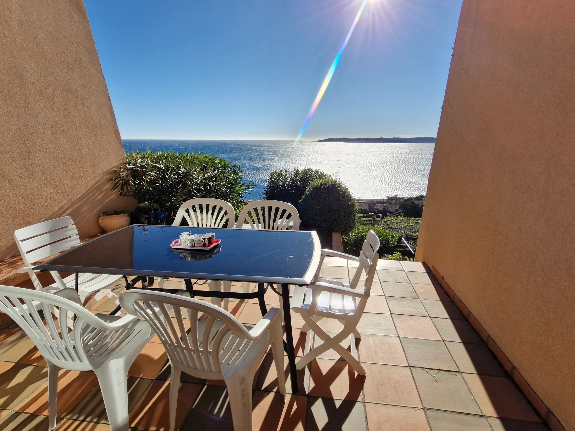 Apartment with superb sea and Gulf of Saint-Tropez views - Sunshade – Private garage no.[hidden] m wide x 6.00 m long). One small pet under 10 kg accepted. Swimming pool open from April 15th to October 15th, from 8:30 am to 9 pm, and private paddling pool – Public tennis courts in the immediate vicinity.