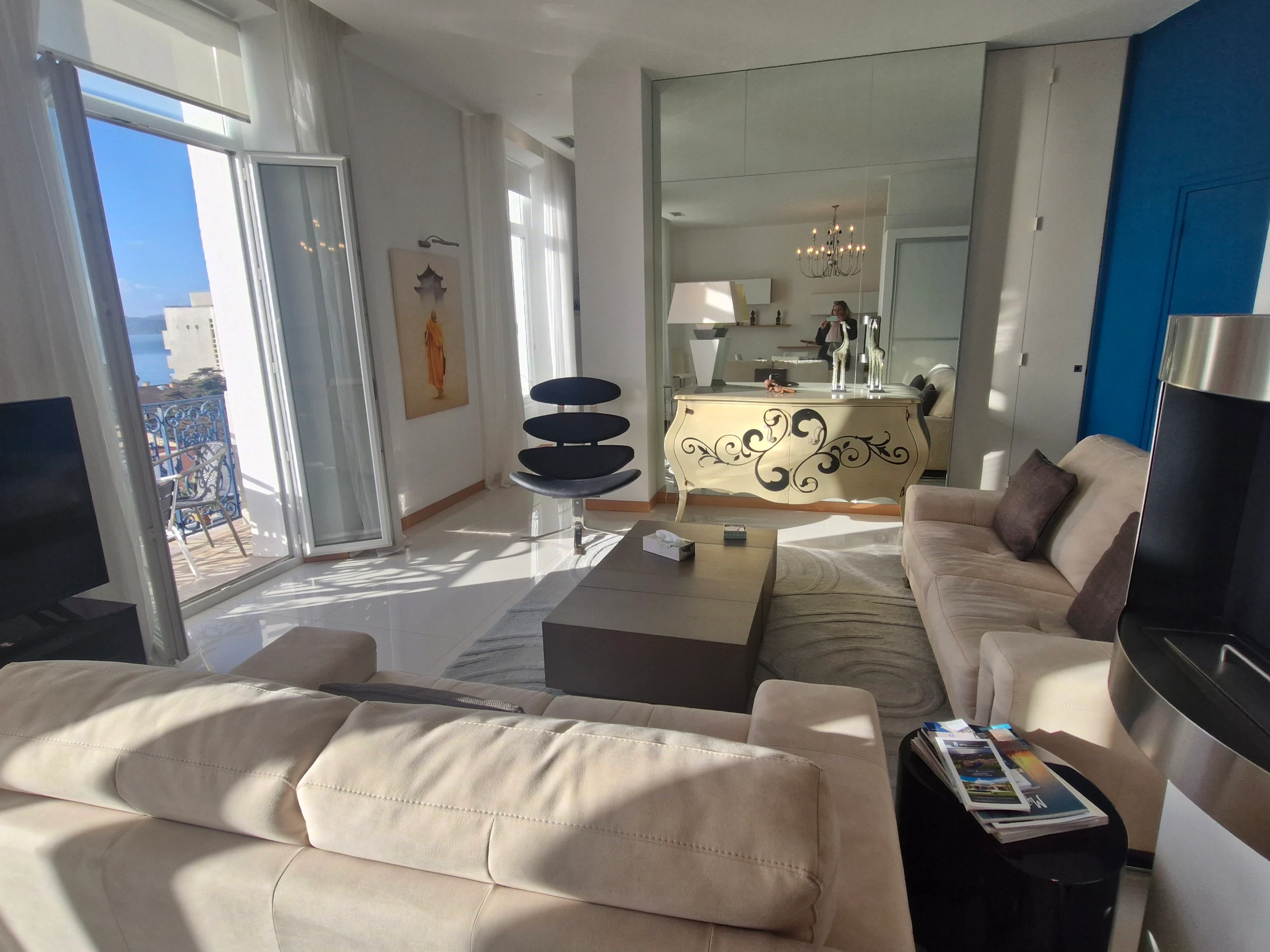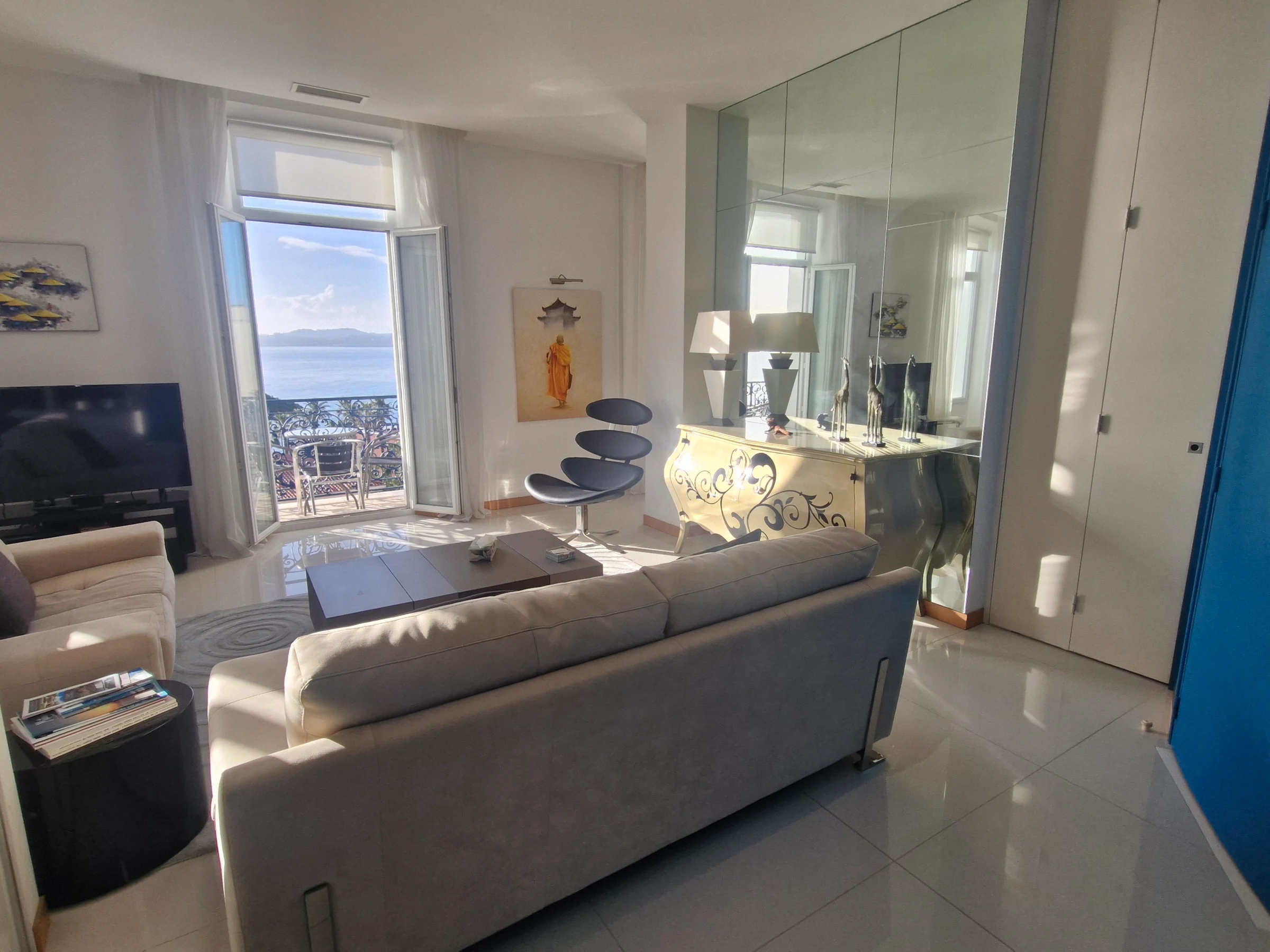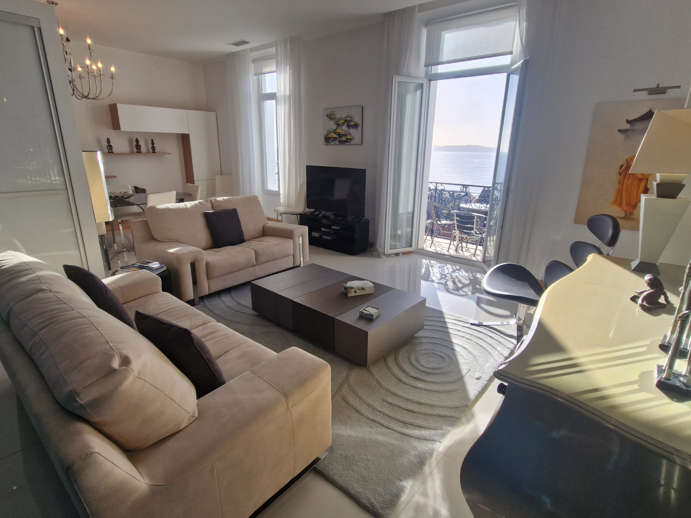 - Living room with sofas opening onto a balcony with sea view – Television - Air conditioning.