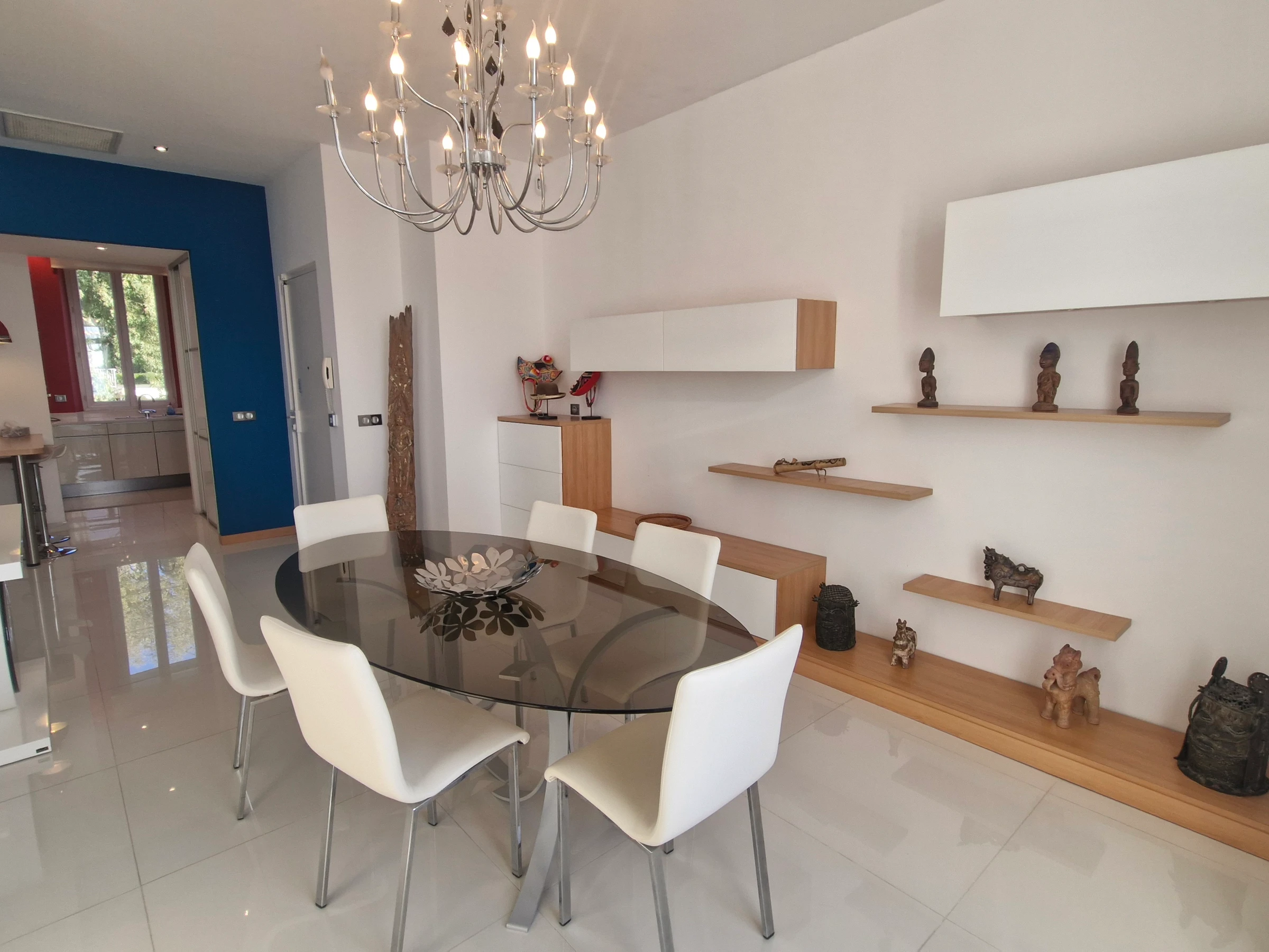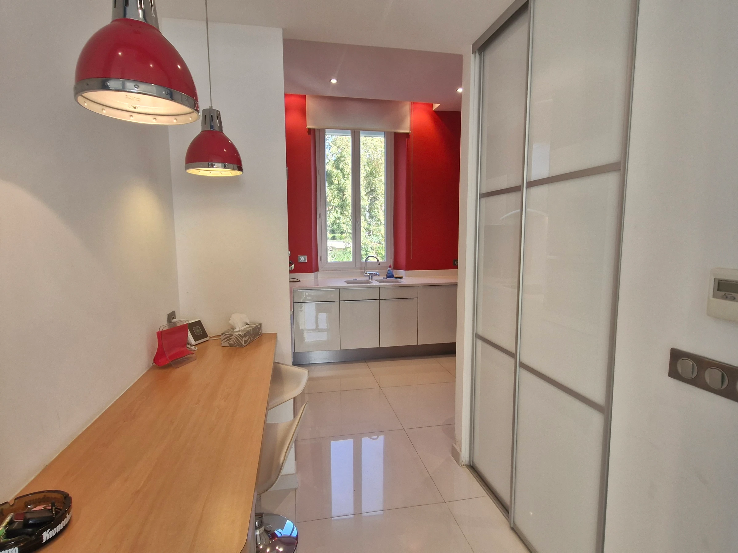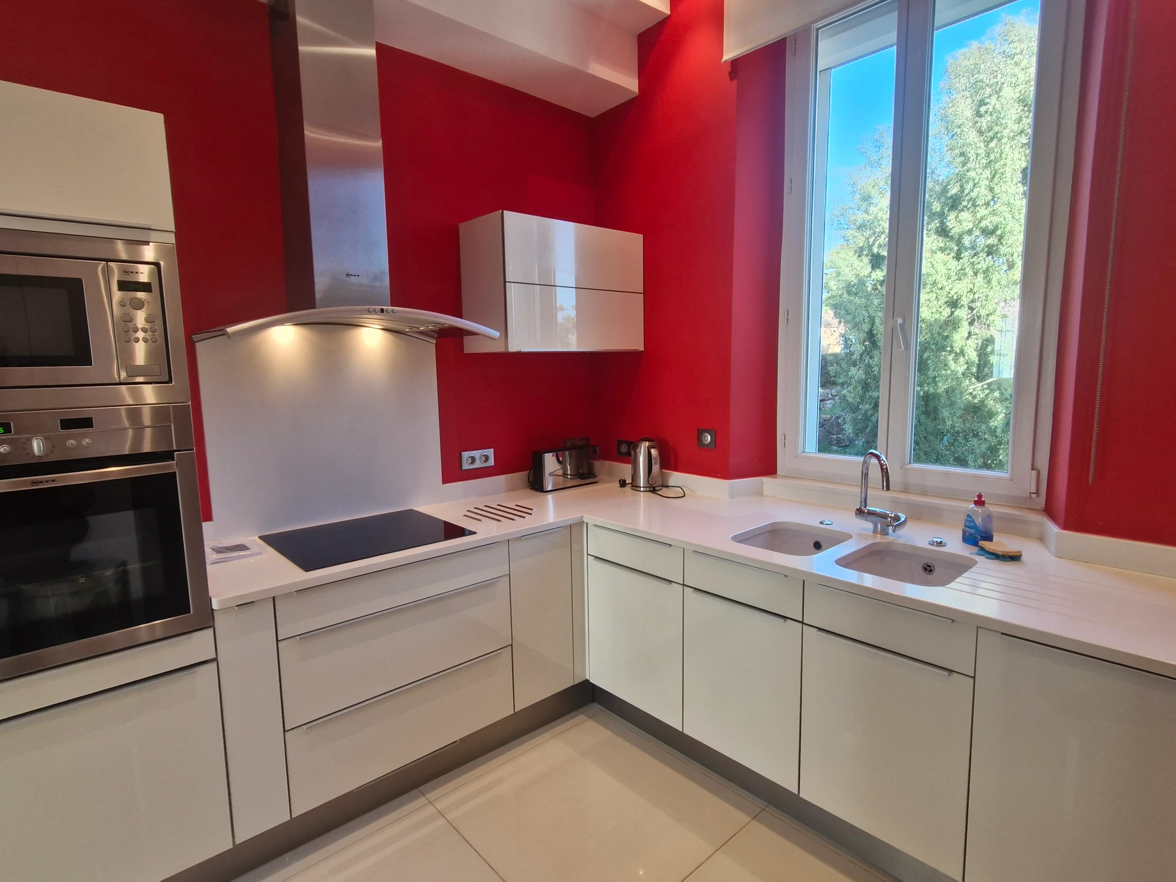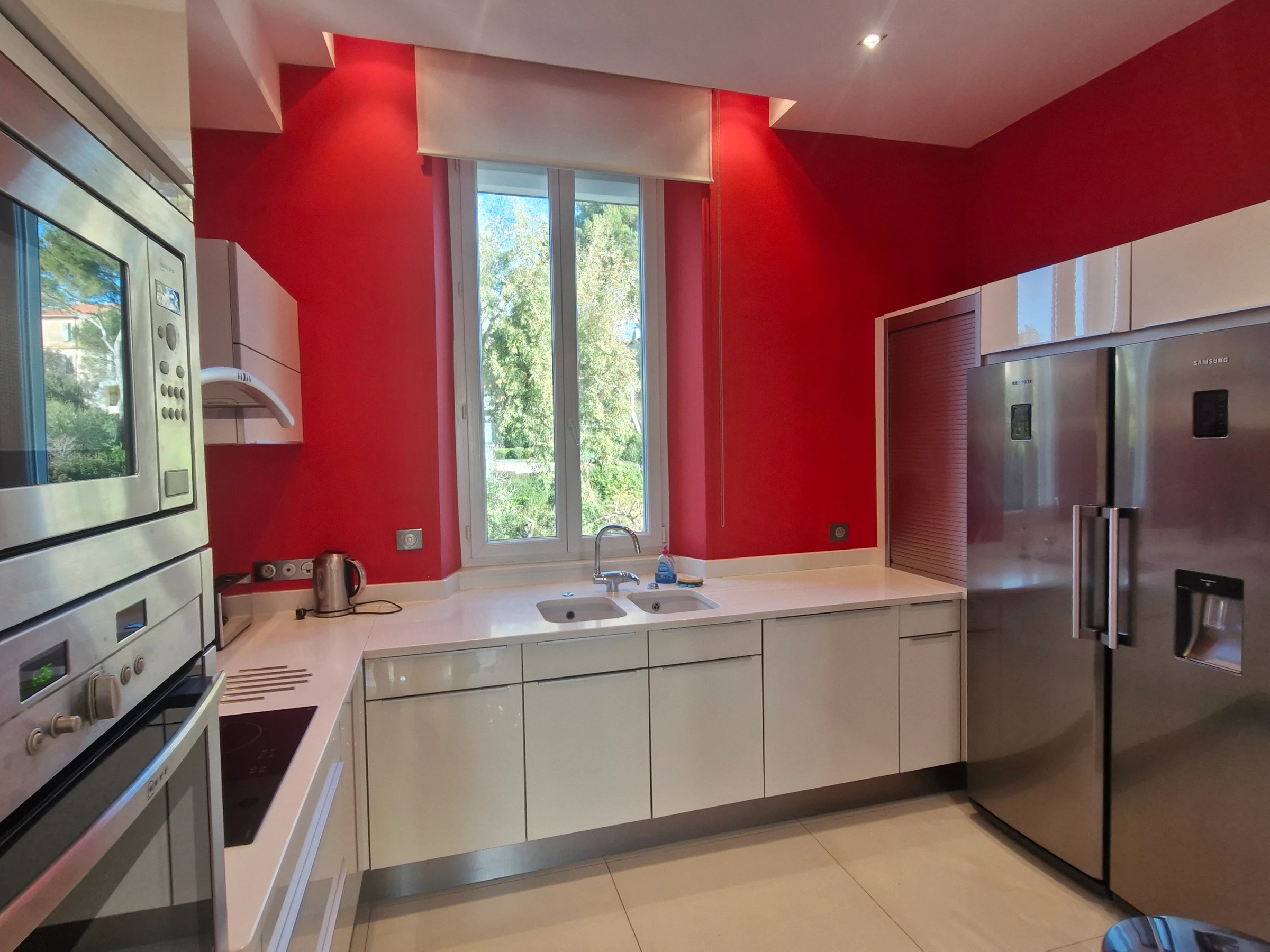 - Separate kitchen (4-ring induction hob, oven, 1 refrigerator, freezer, dishwasher, microwave, washing machine, tumble dryer, towel dryer, Krups Nespresso coffee machine, filter coffee machine, extractor hood and storage units).