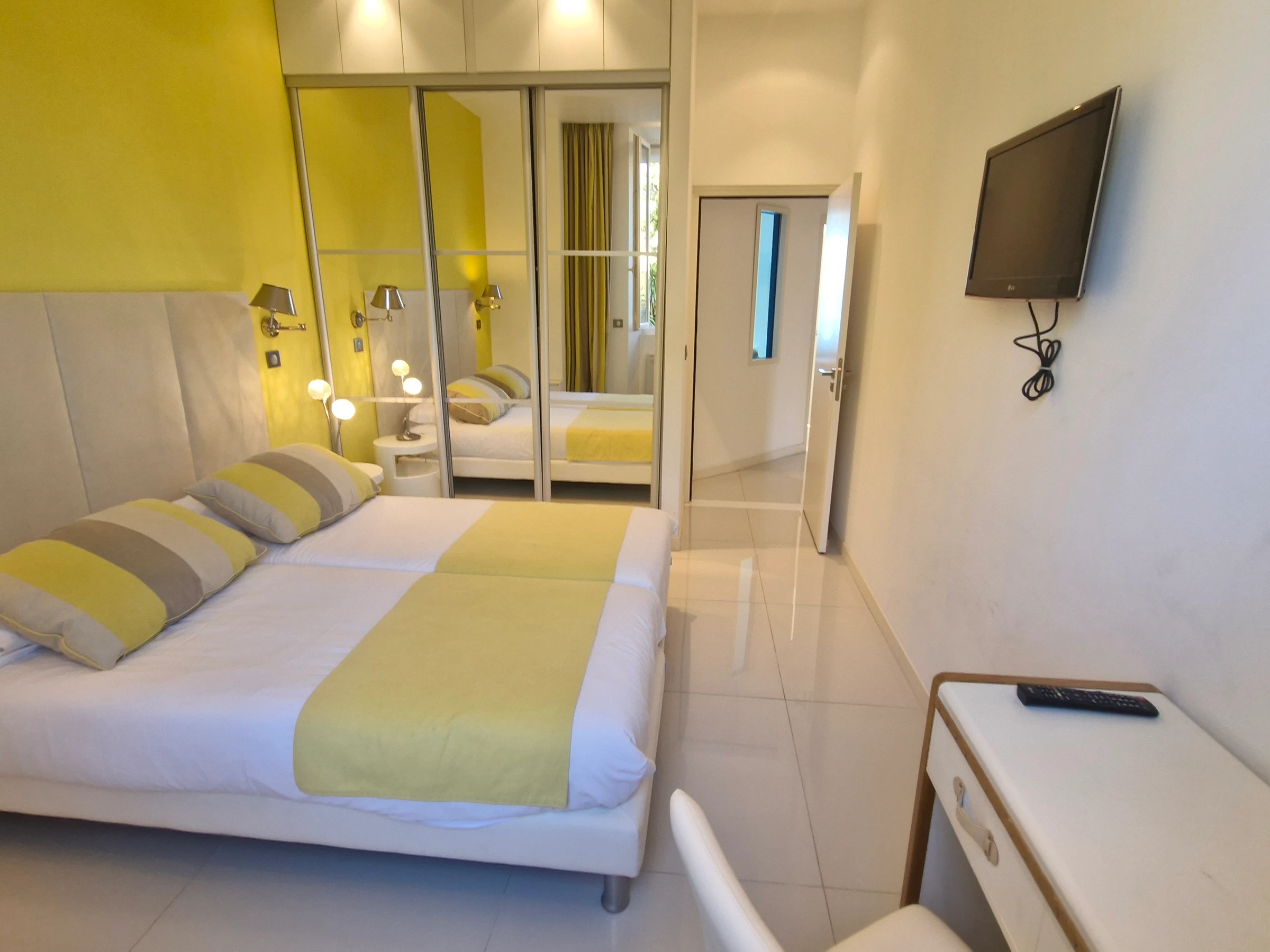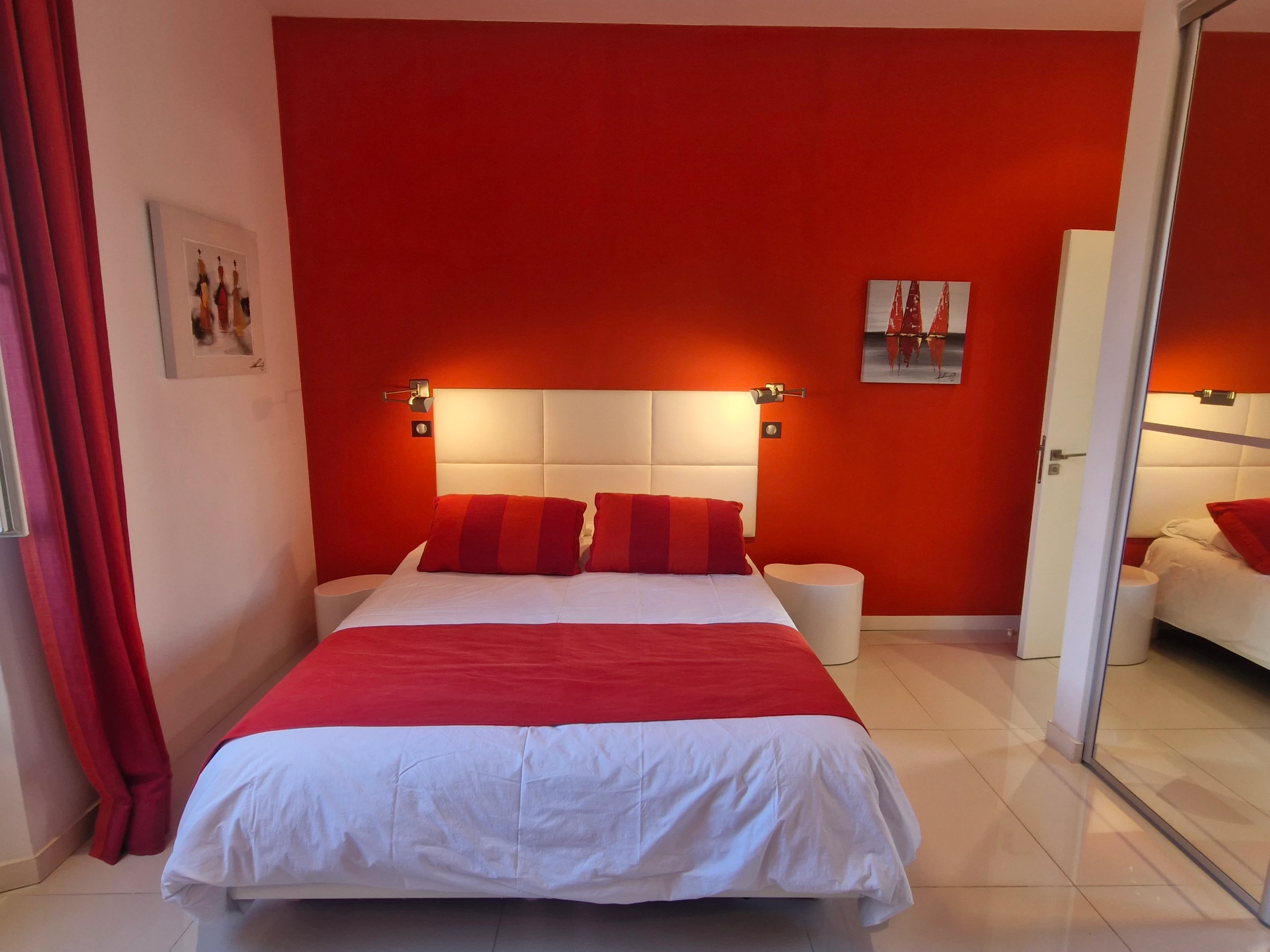 - Bedroom with 180 cm bed, cupboards - Television.